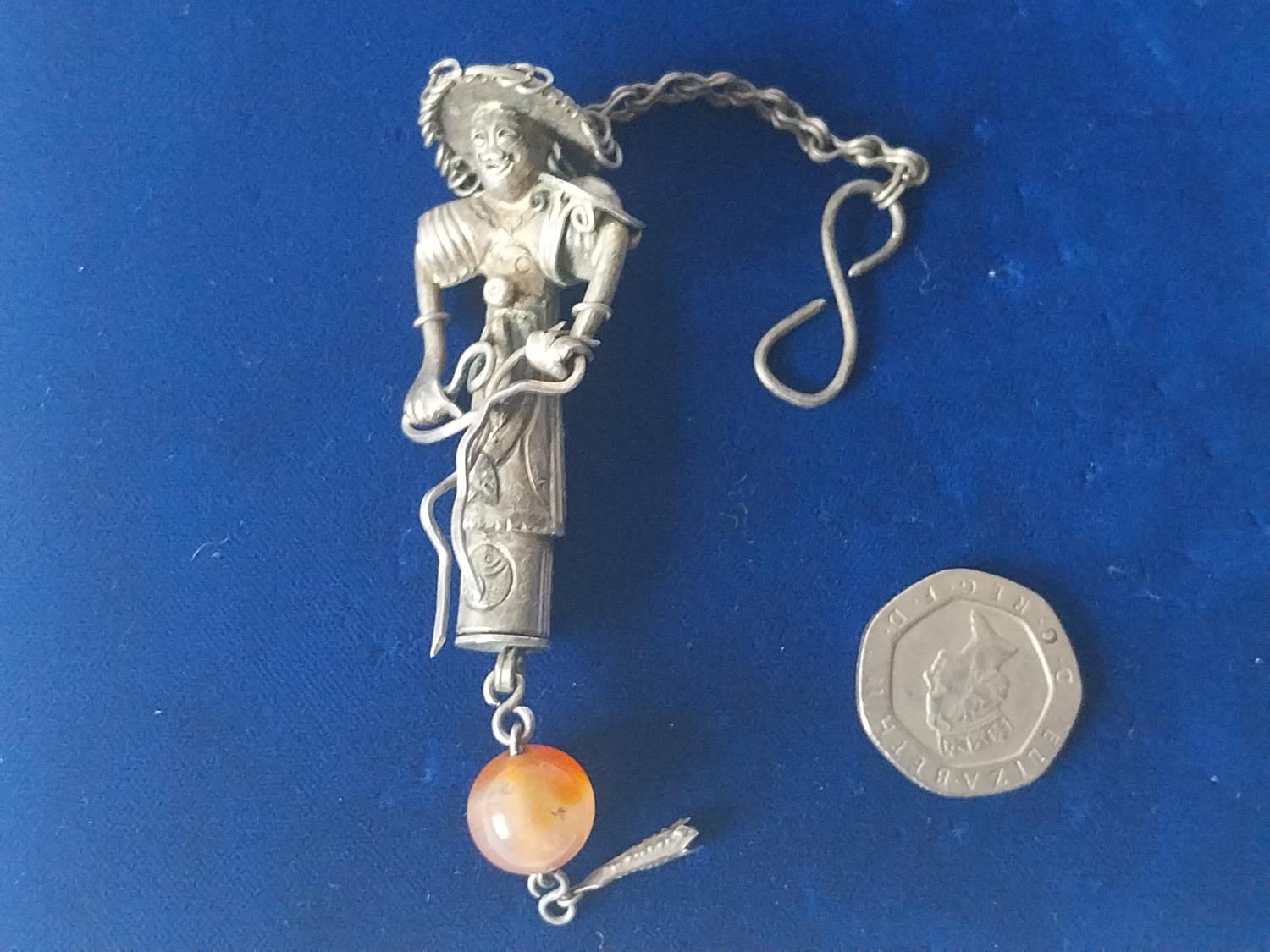 antique Silver Chinese repousse chatelaine figure ornament