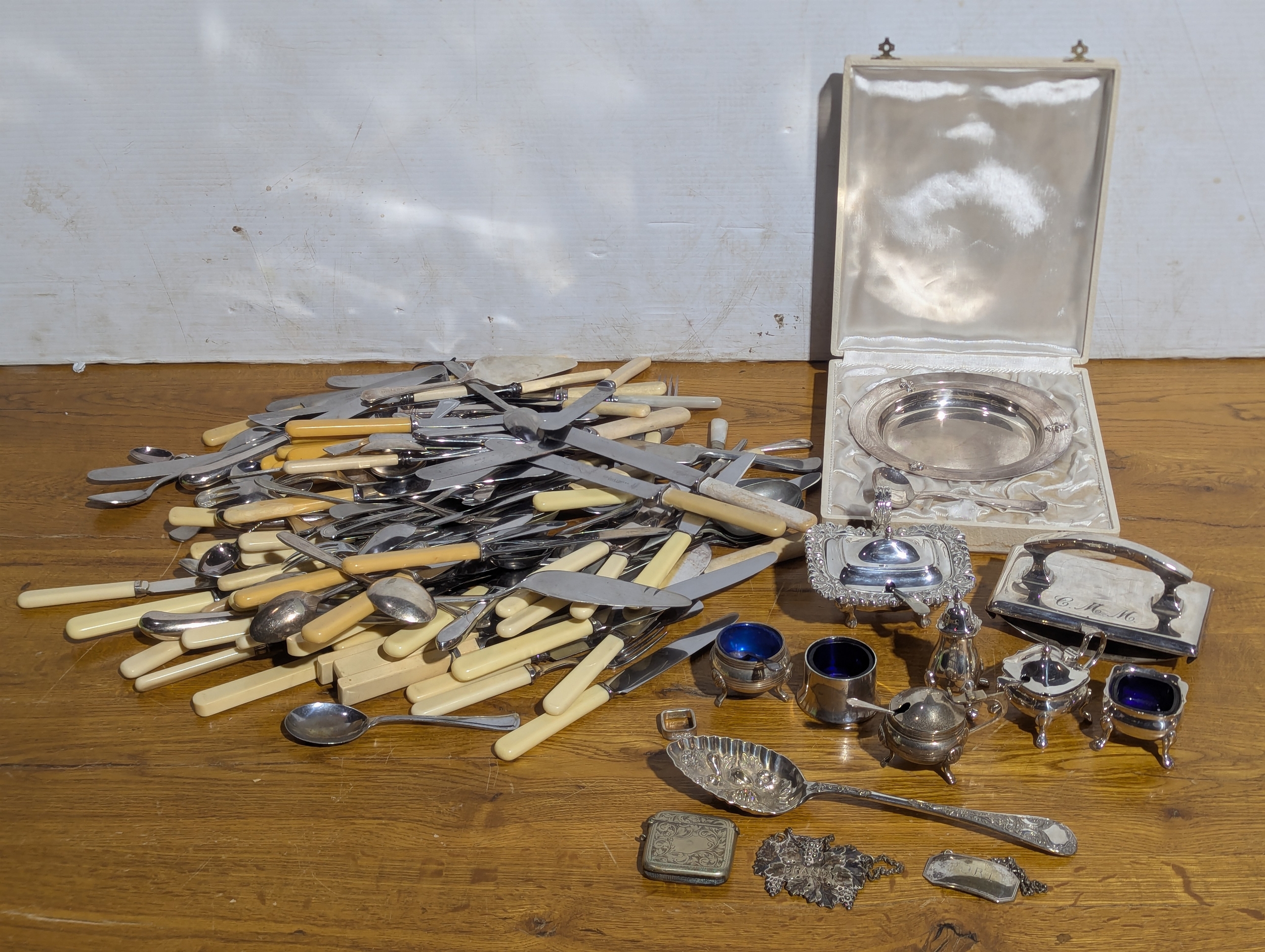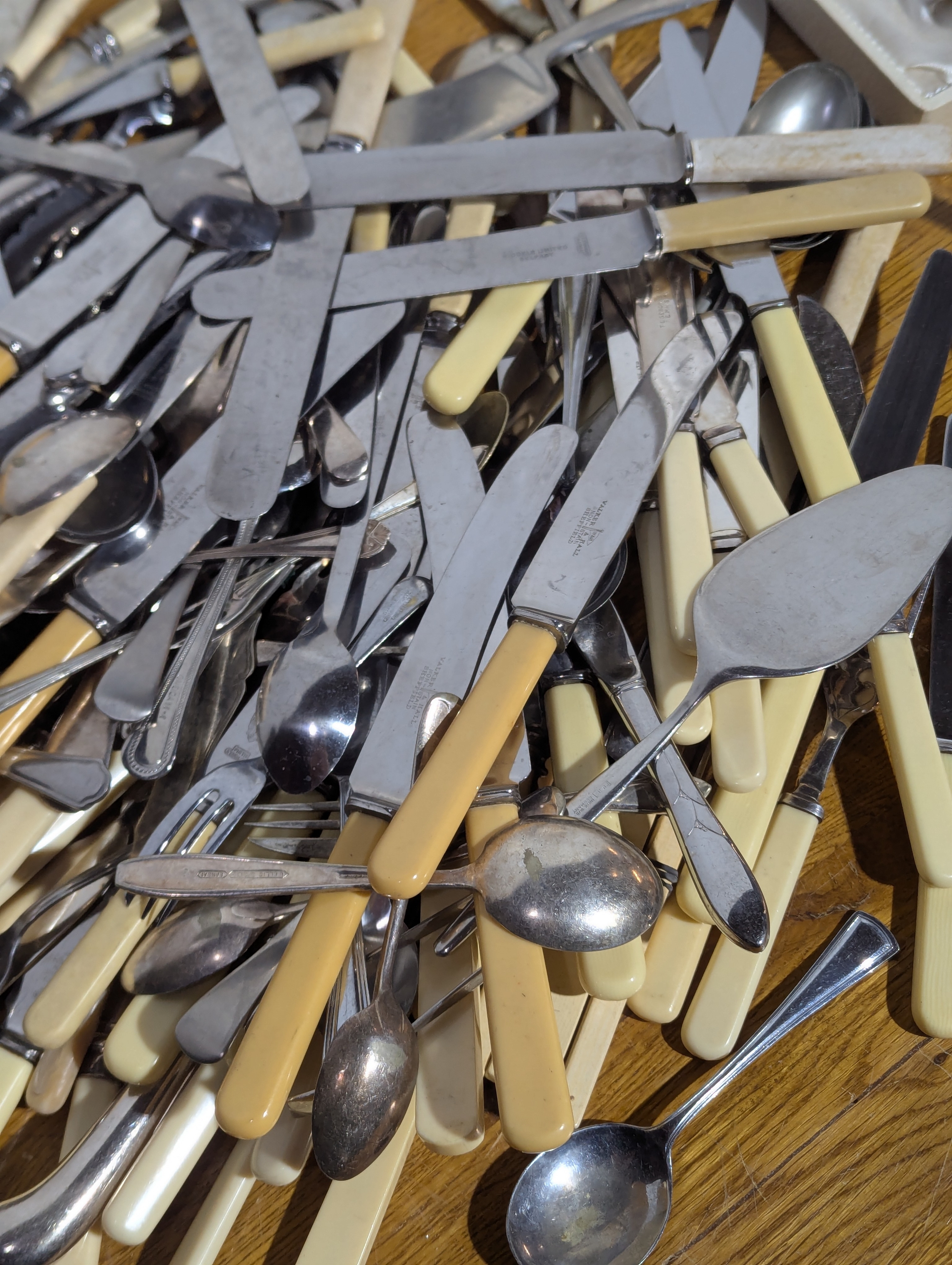 Quantity of vintage EPNS cutlery, cruet sets etc