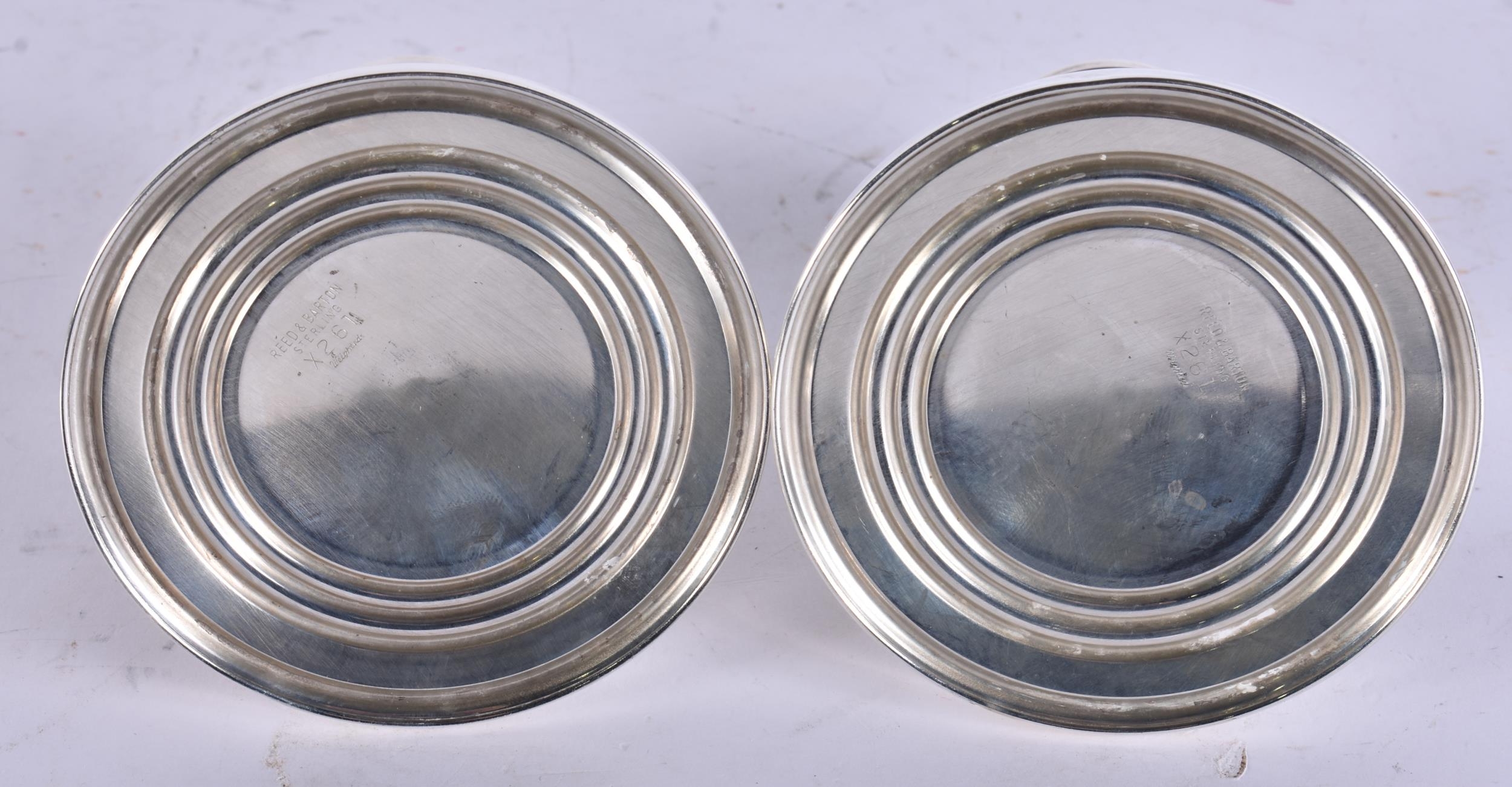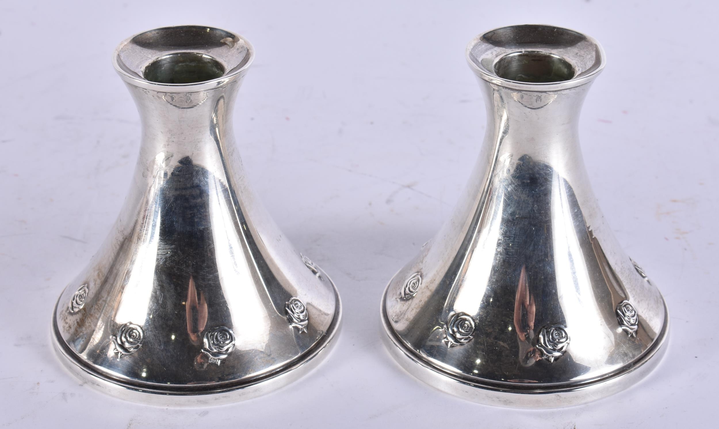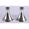 A PAIR OF SILVER CANDLESTICKS. 642 grams overall. 9 cm high.