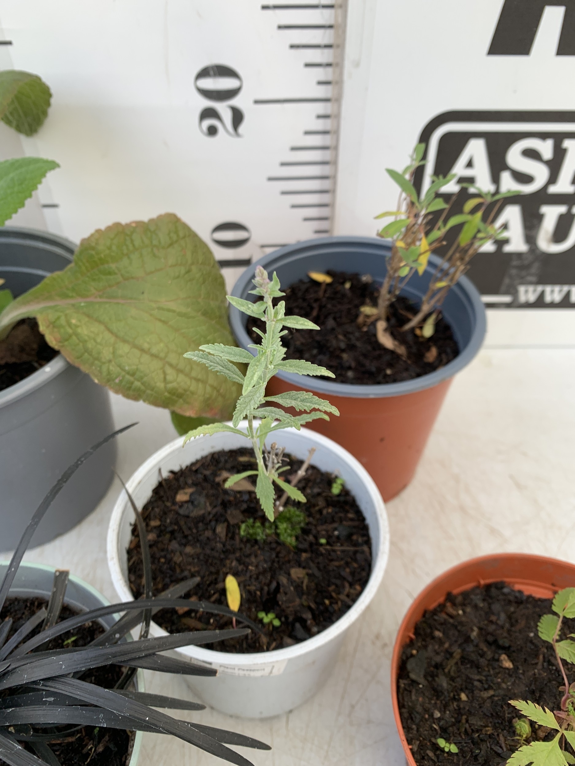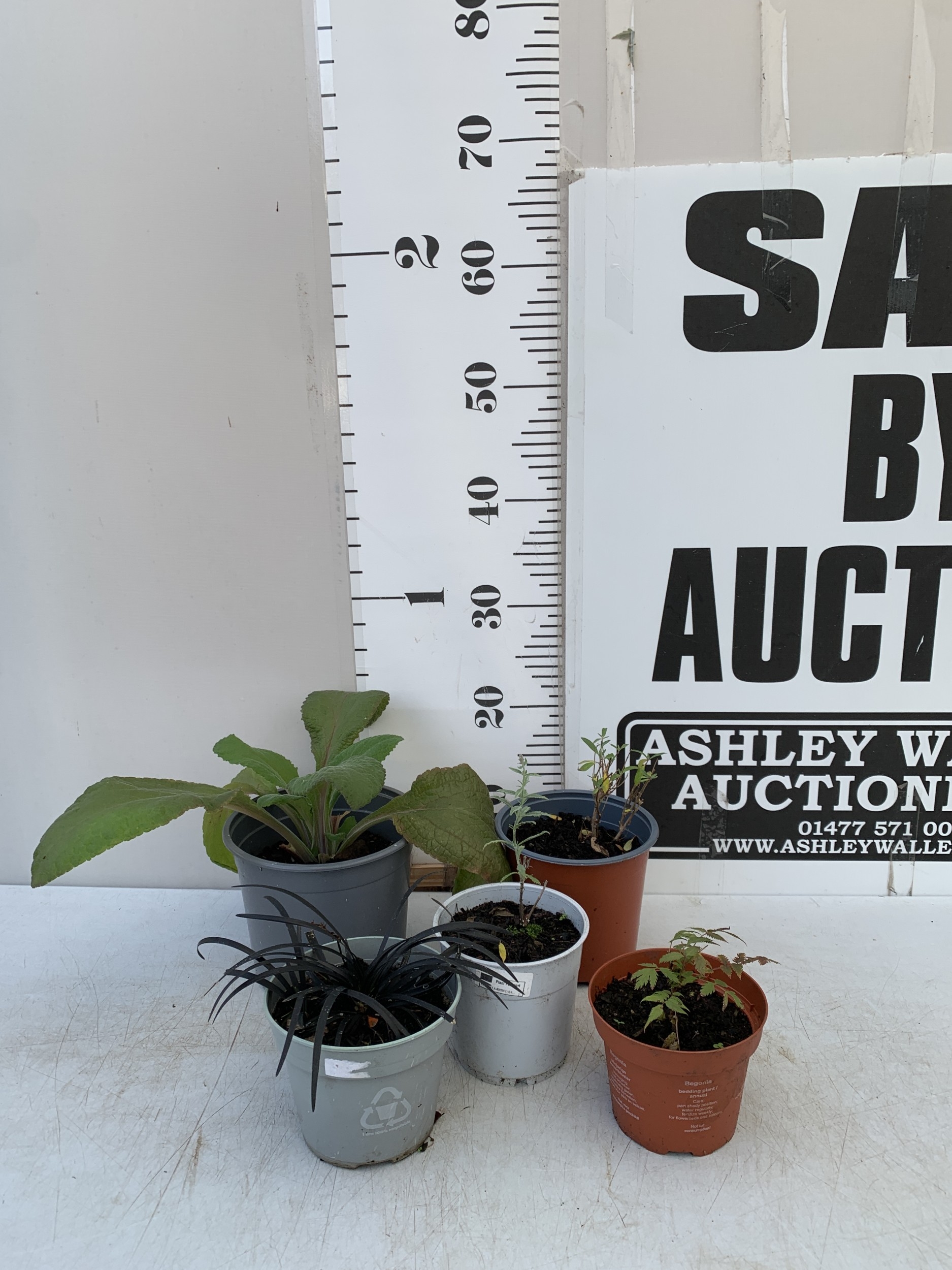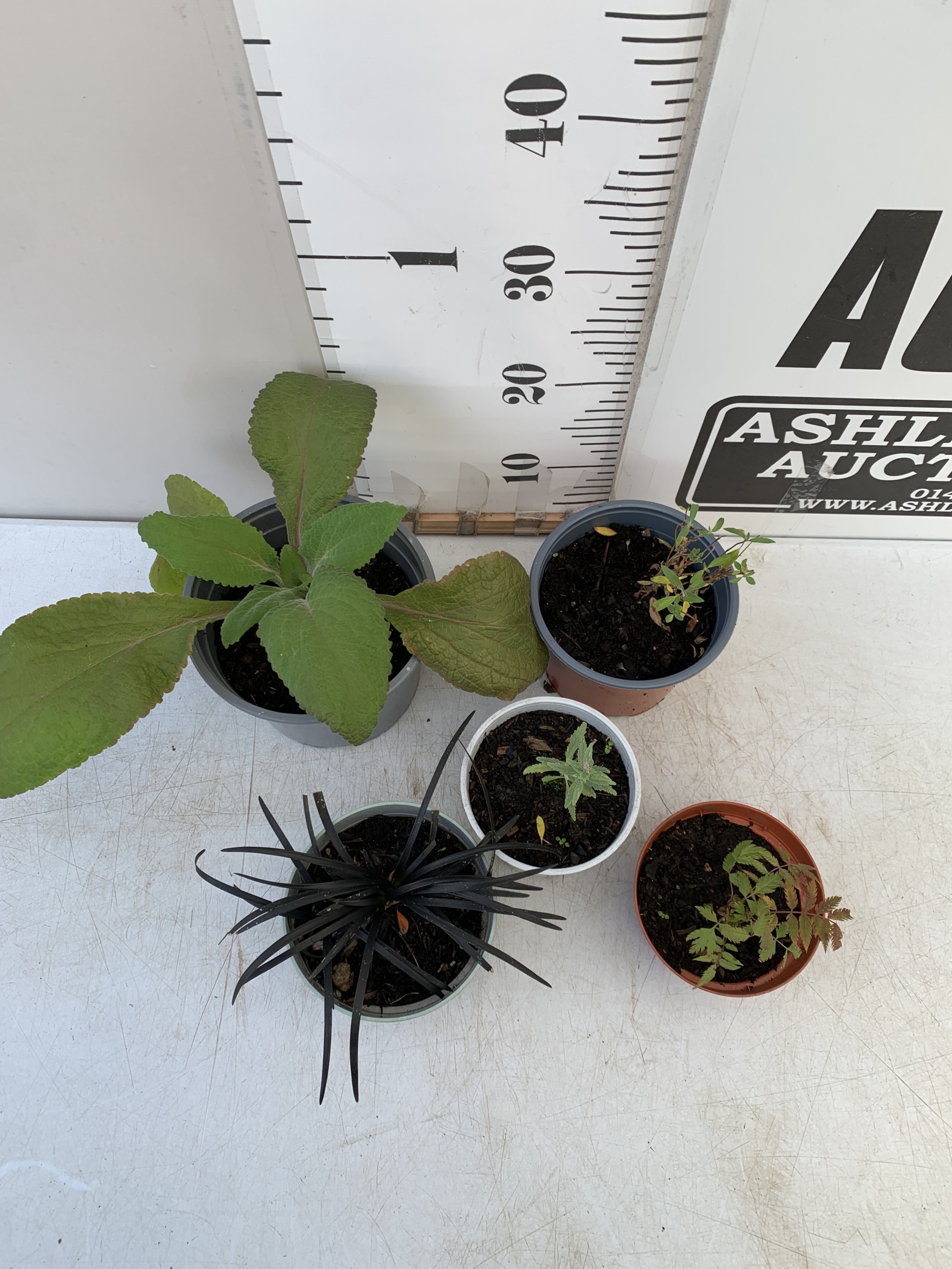 MIXED LOT OF 5 PLANTS - ONE FOXGLOVE, ONE CARYOPTERIS CLANDONENSIS BLUE BEARD 'HEAVENLY BLUE', ONE SORBARIA SORBIFOLIA 'SEM' OR FALSE SPIREA, ONE PEROVSKIA ATRIPLICIFOLIA 'PRIME TIME RUSSIAN SAGE' AND ONE BLACK MONDO GRASS IN 0.75-2 LTR POTS. TO BE SOLD FOR THE FIVE