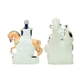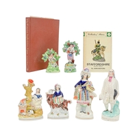 A Staffordshire 'Sir George Brown' figure. Mid 19th century, depicted on horseback, height 23cm, with a Victorian Staffordshire figure group spill vase (2).