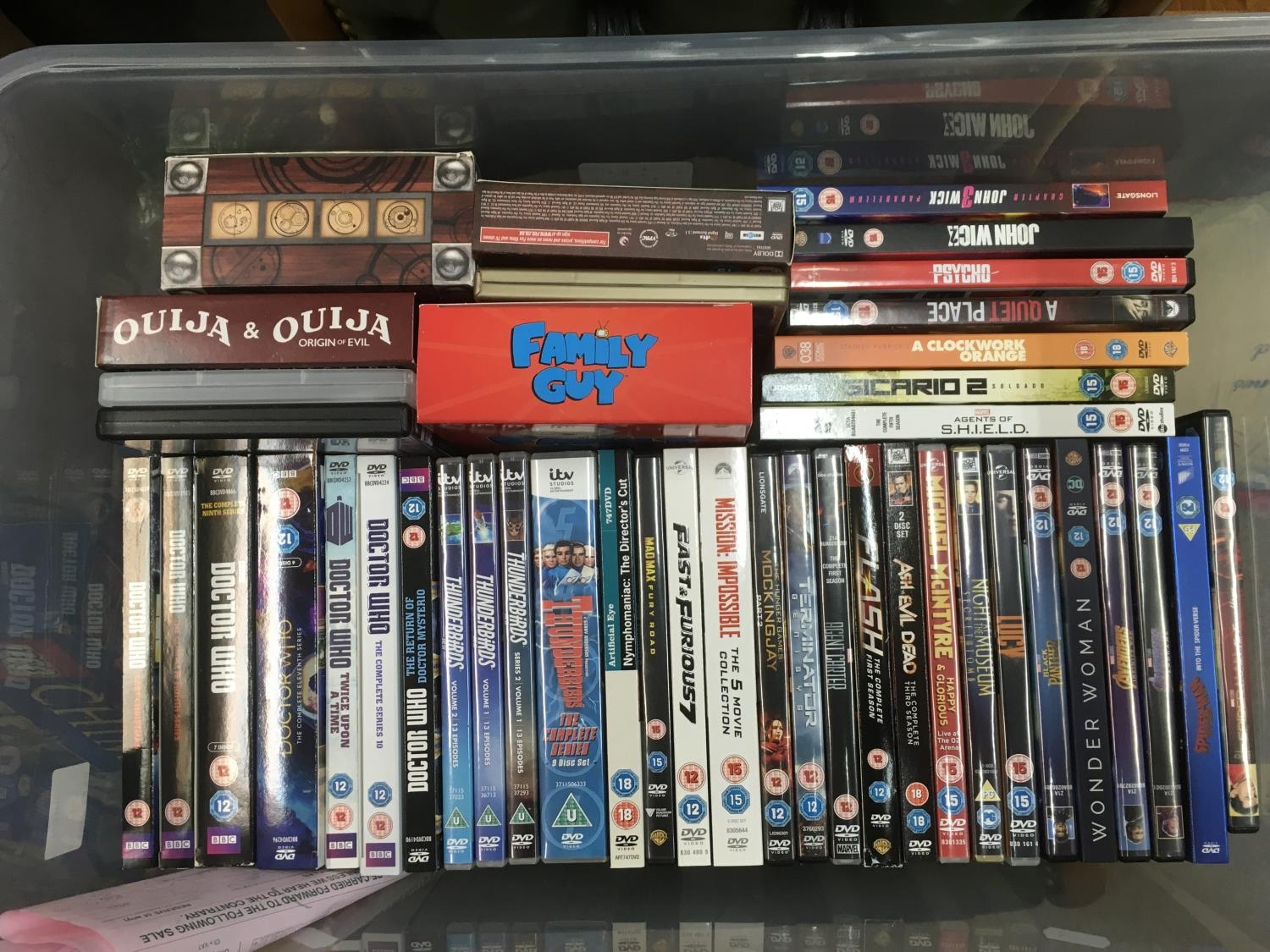 Four boxes of Blu Rays and DVDs including some box sets and 3D triple plays.