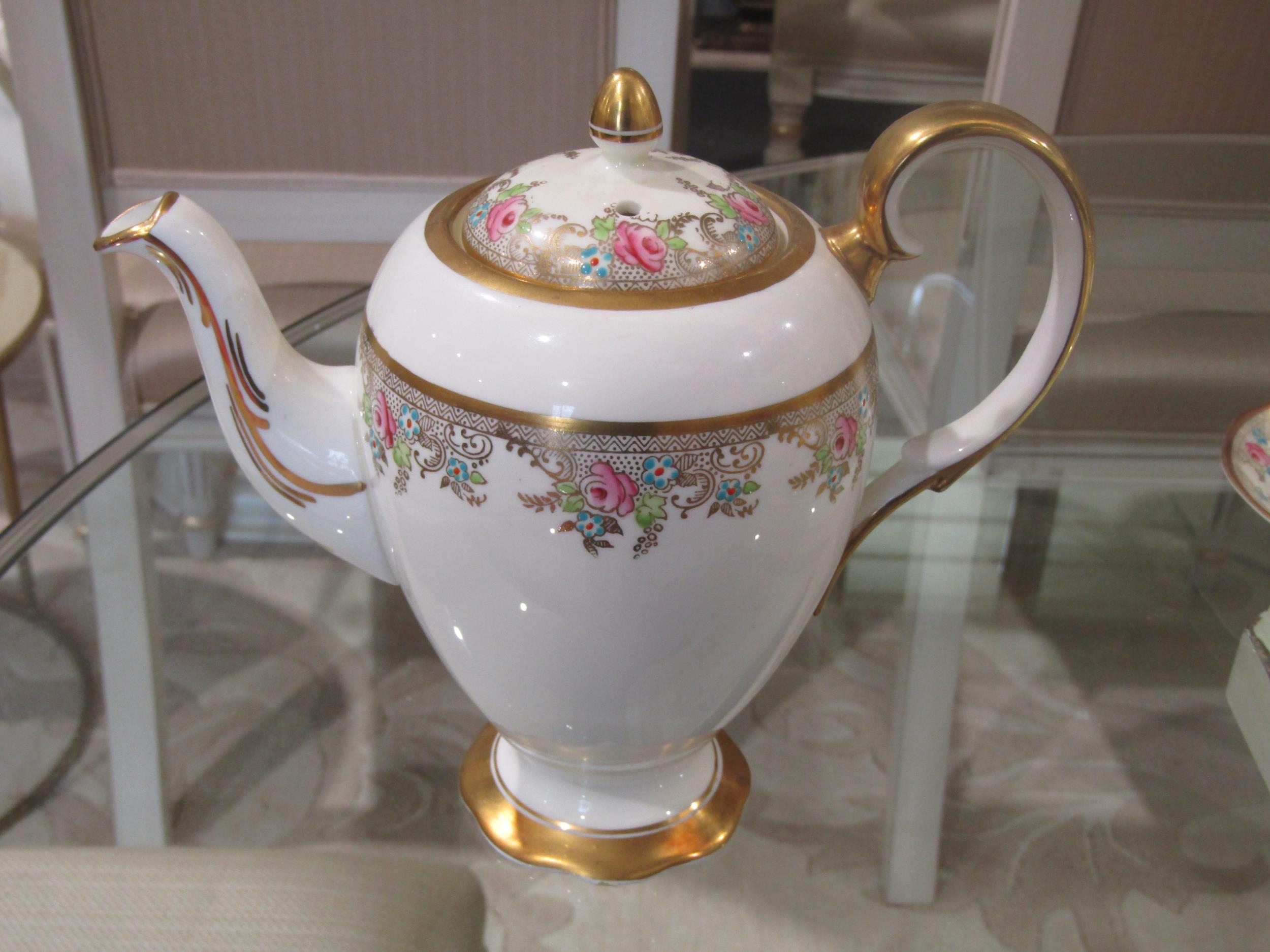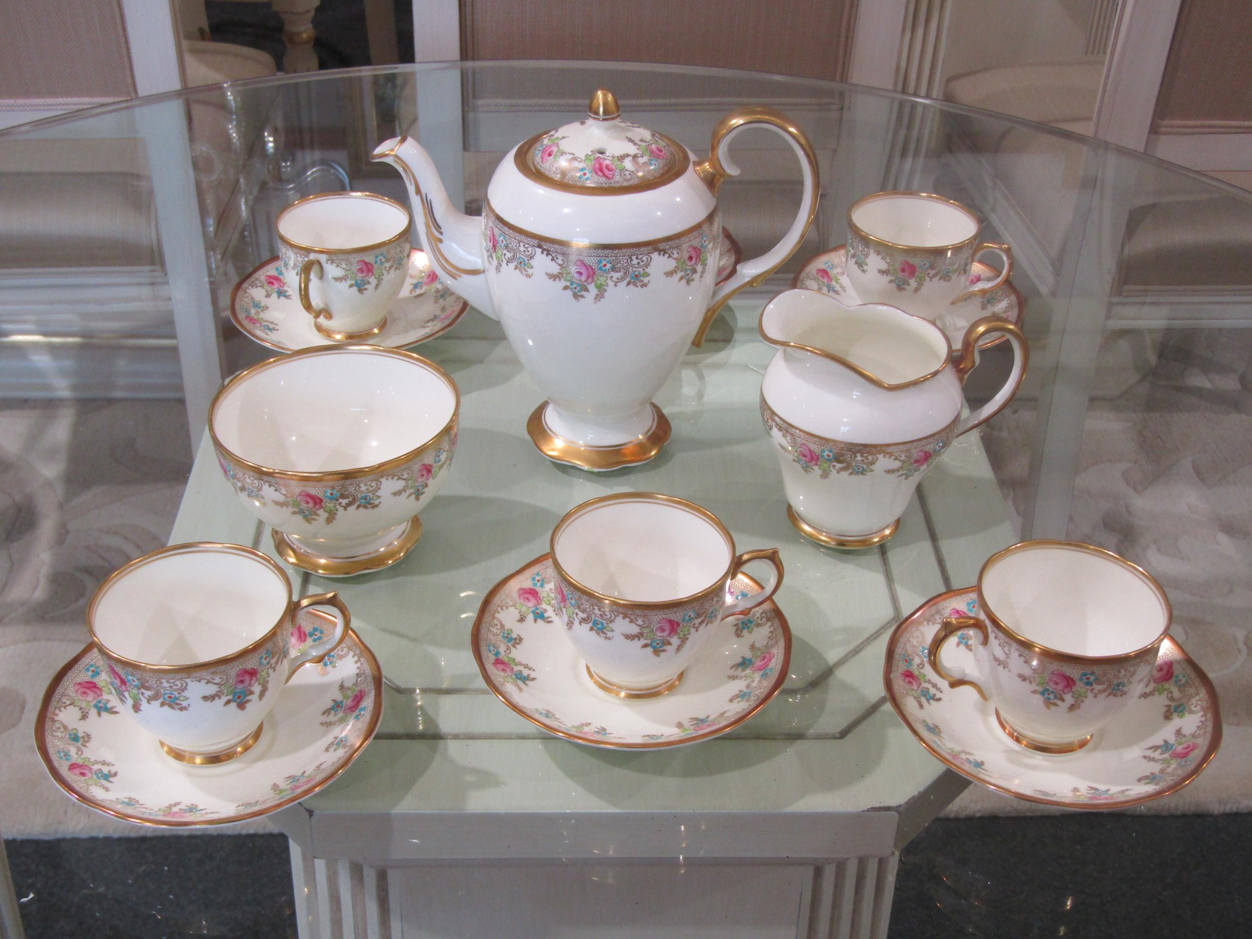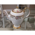 A "Salisbury" bone china coffee set, hand-painted with pink roses, gilt embellishment