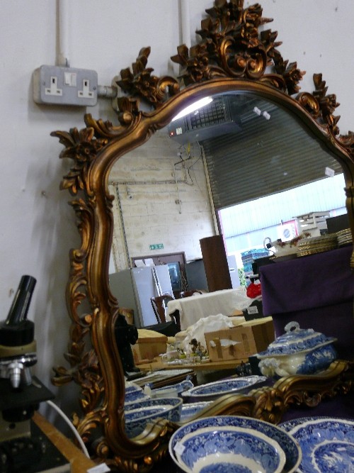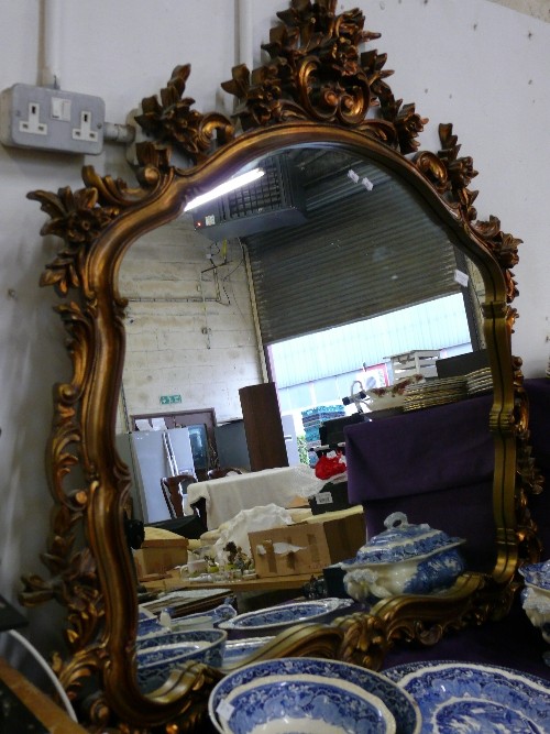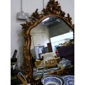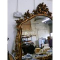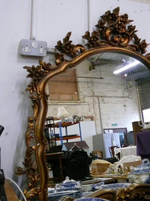 A VERY LARGE ORNATE OVER MANTLE WALL MIRROR.