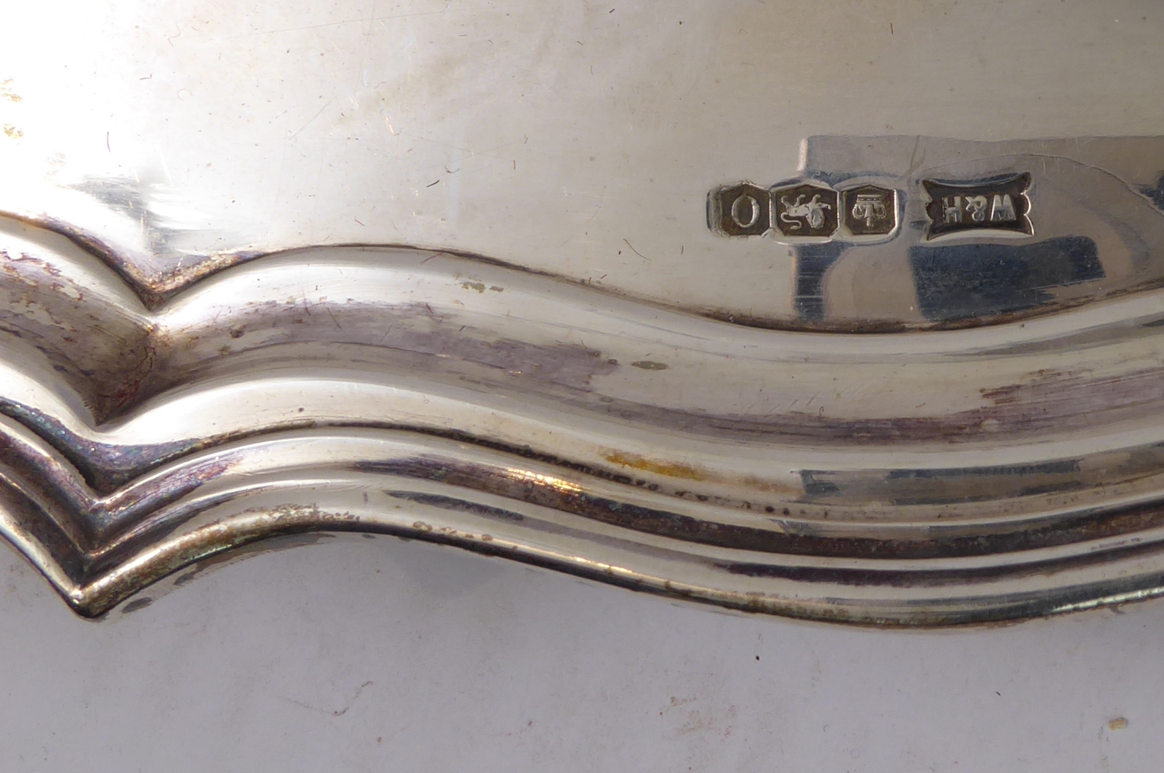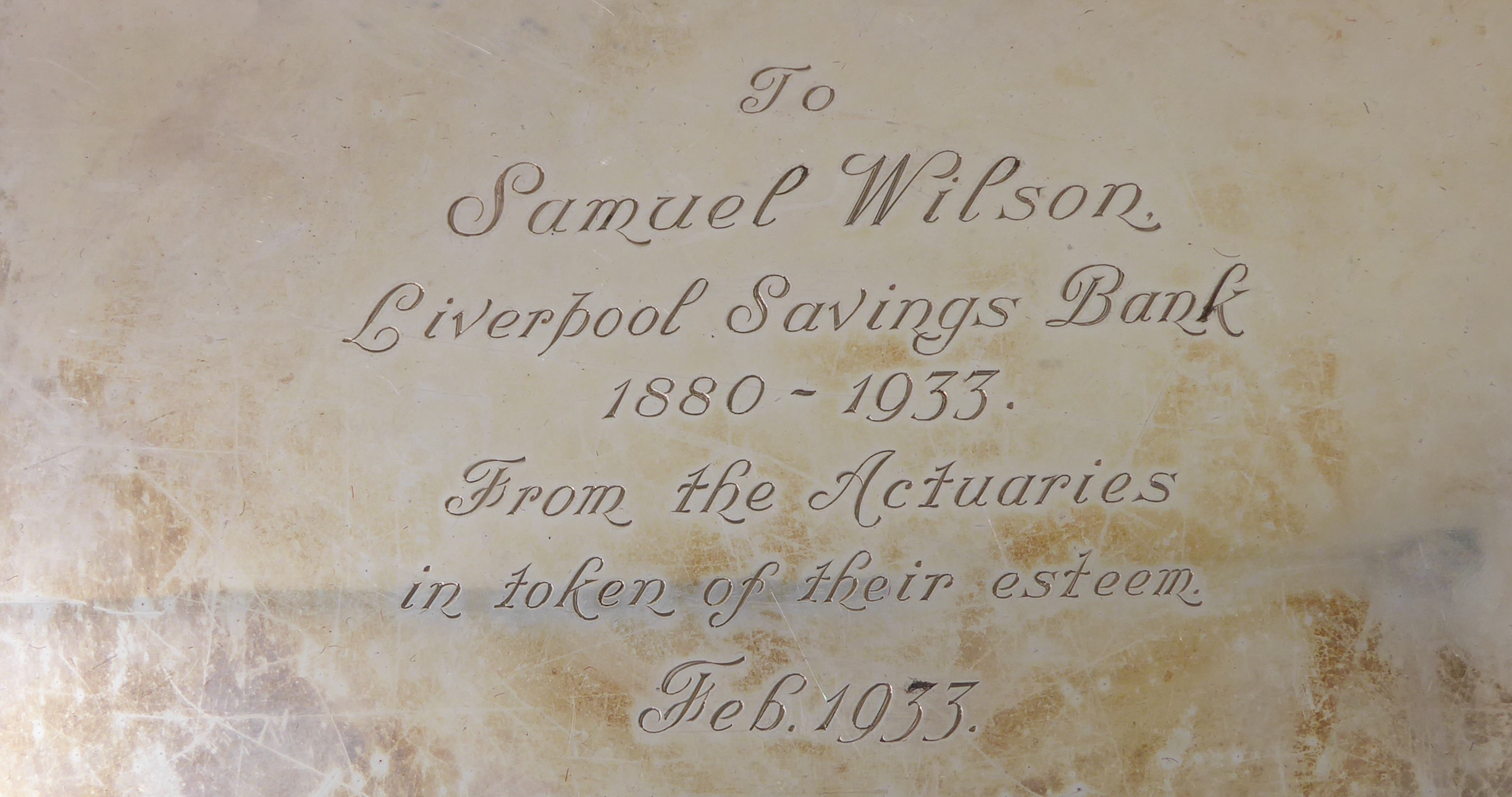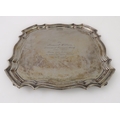 A heavy, hallmarked-silver salver in earlier style: engraved front dated 'Feb 1933', maker's mark of Walker & Hall, assayed Sheffield 1931, (26cm wide, weight approx. 732g)