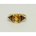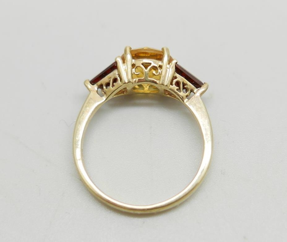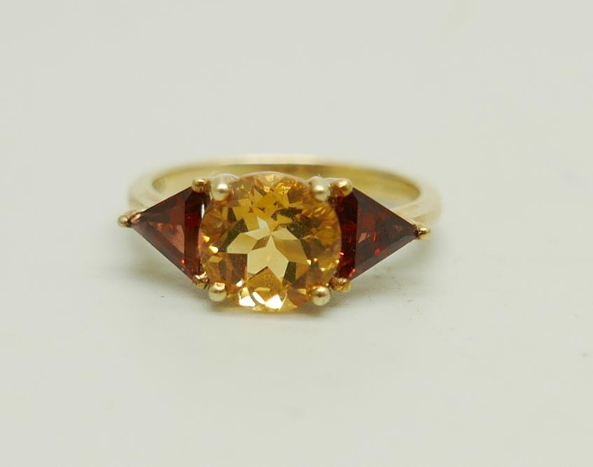 A 9ct gold, citrine and garnet ring, 2.5g, N