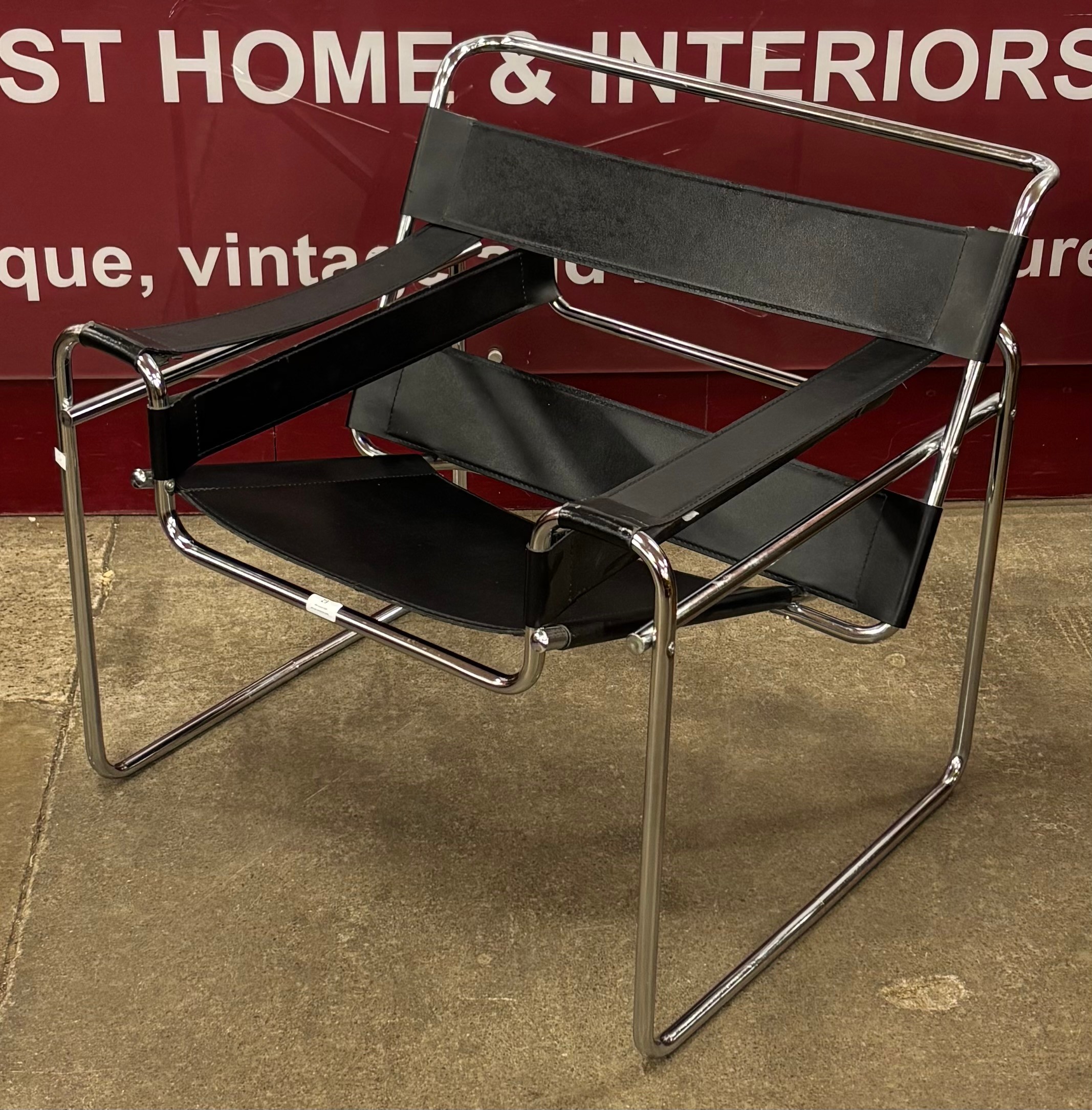A Wassily style chrome and black leather chair