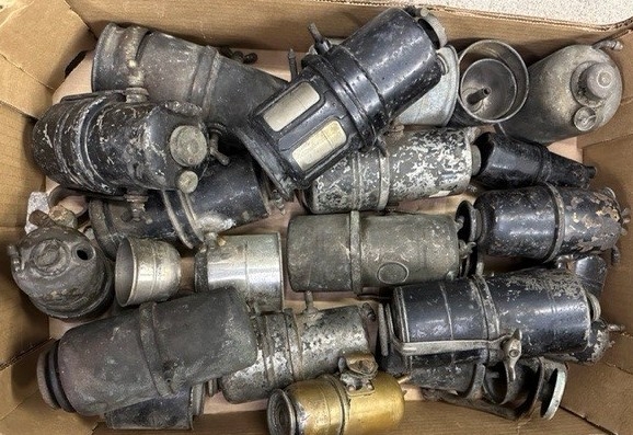 A collection of acetylene generators and parts, to include Lucas King of the Road, Lucas Kings Own and P&H.