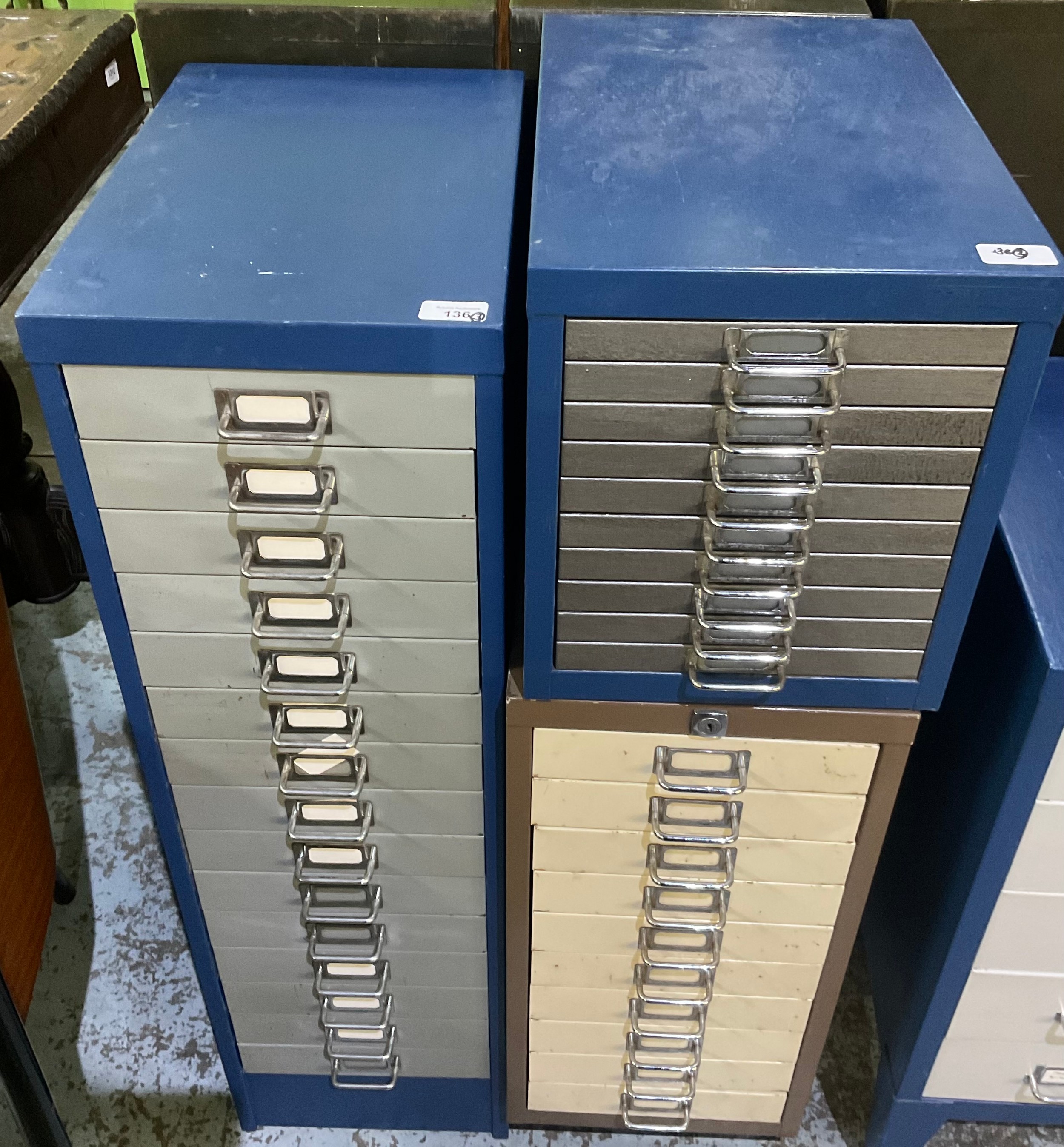 Bisley type 15 drawer stationary cabinet and two smaller (3)