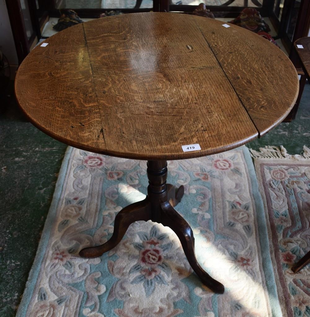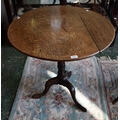 A 19th century oak near-circular occasional table, three piece tilting top, turned spreading column, pointed pad feet, 78cm wide