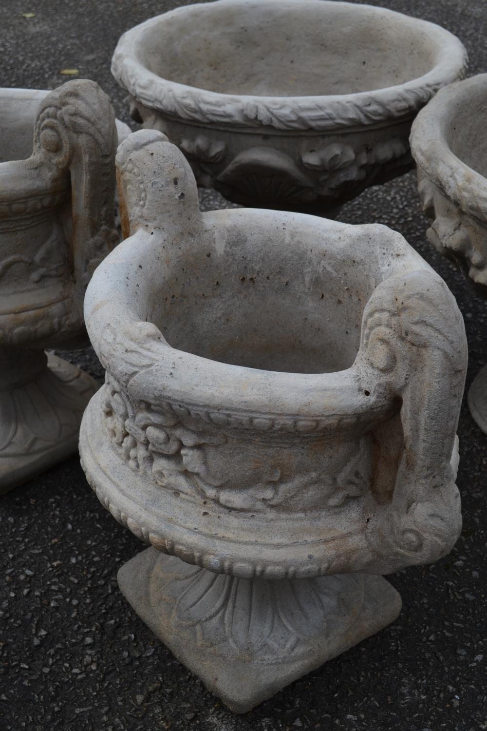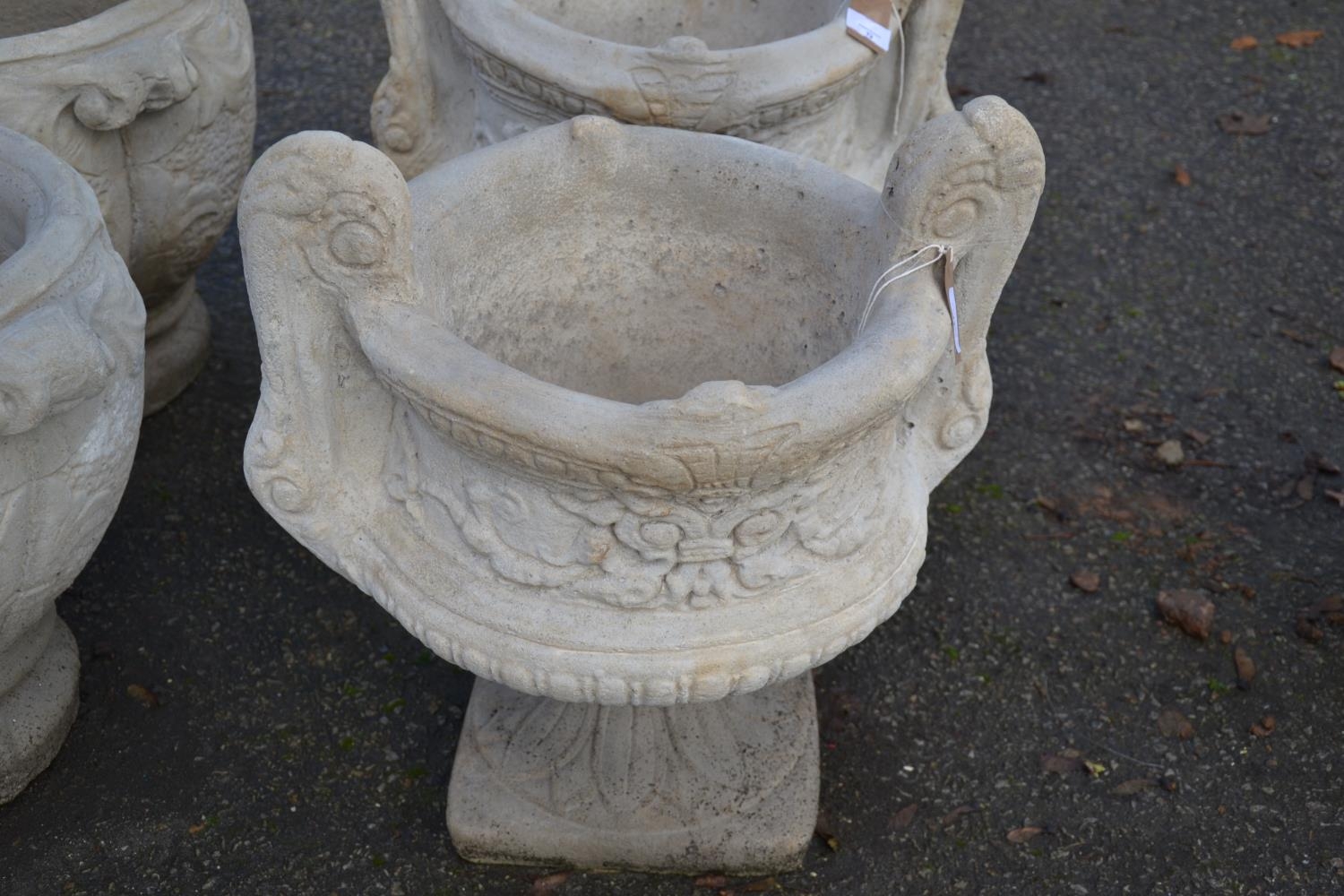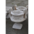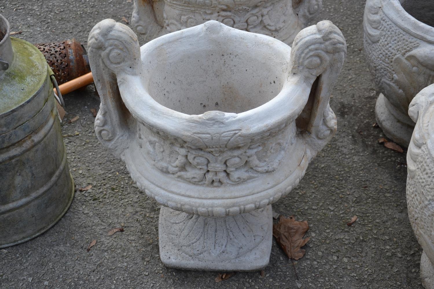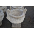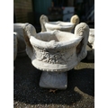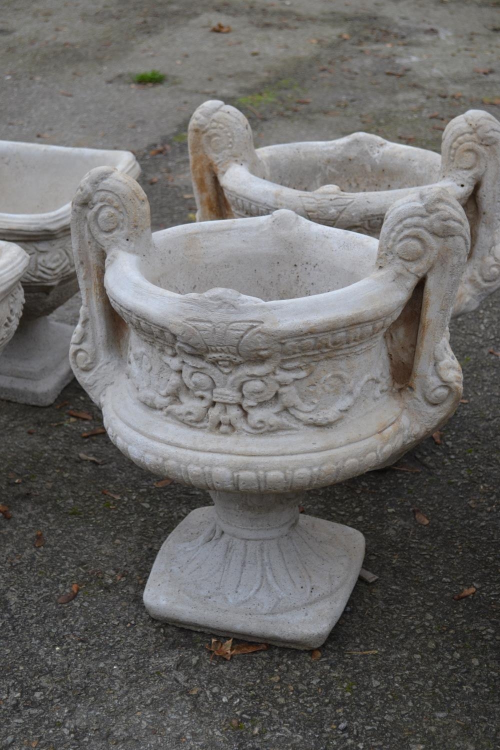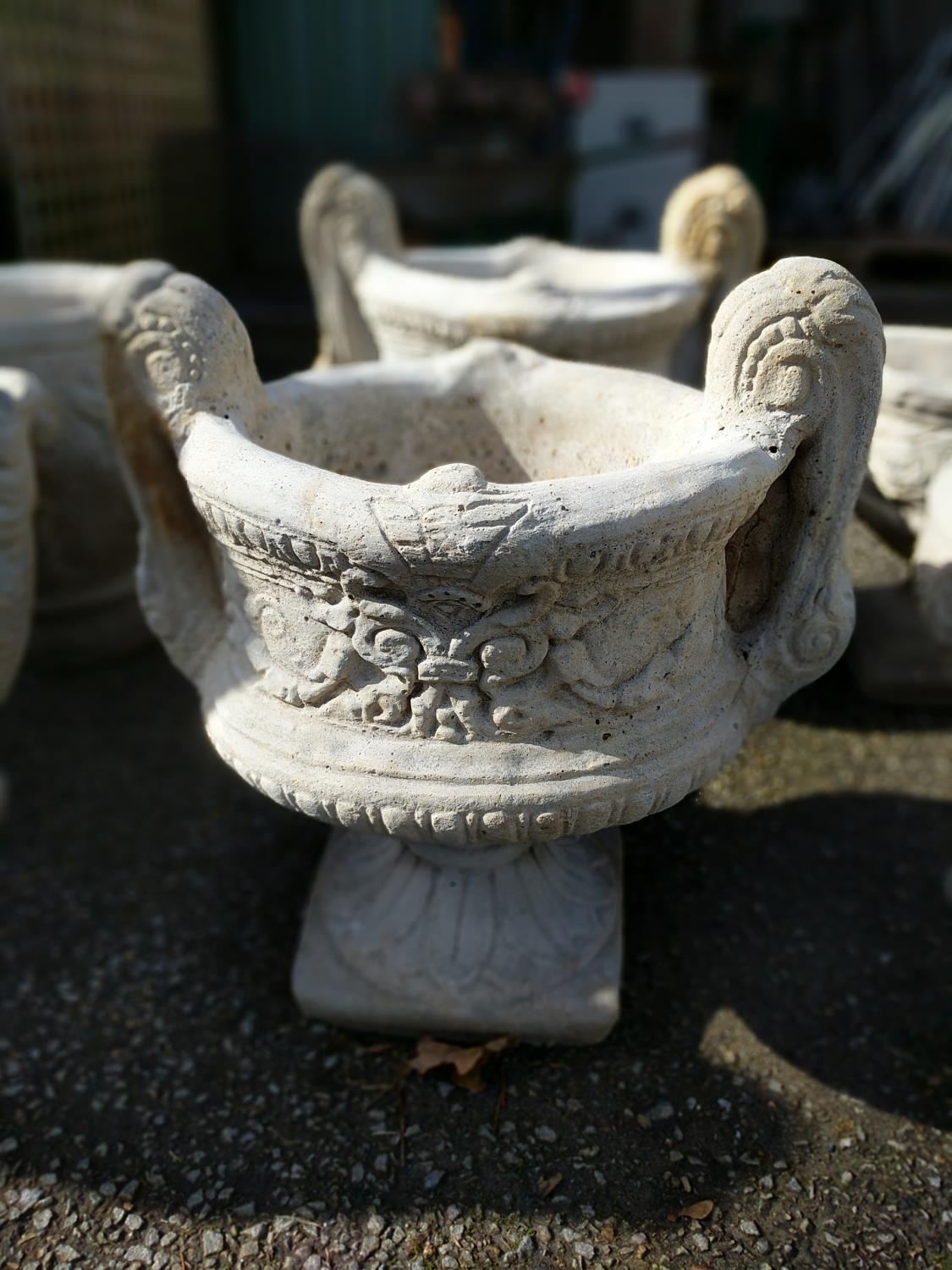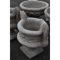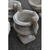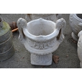 Large handled urn on fluted square base with a chasing floral relief to sides