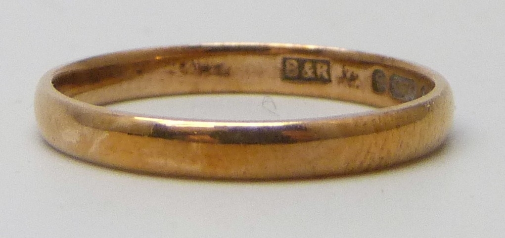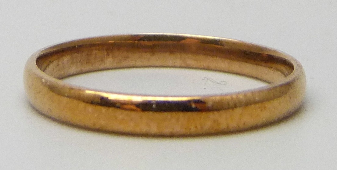 A 9ct gold wedding ring, 1.4g, M