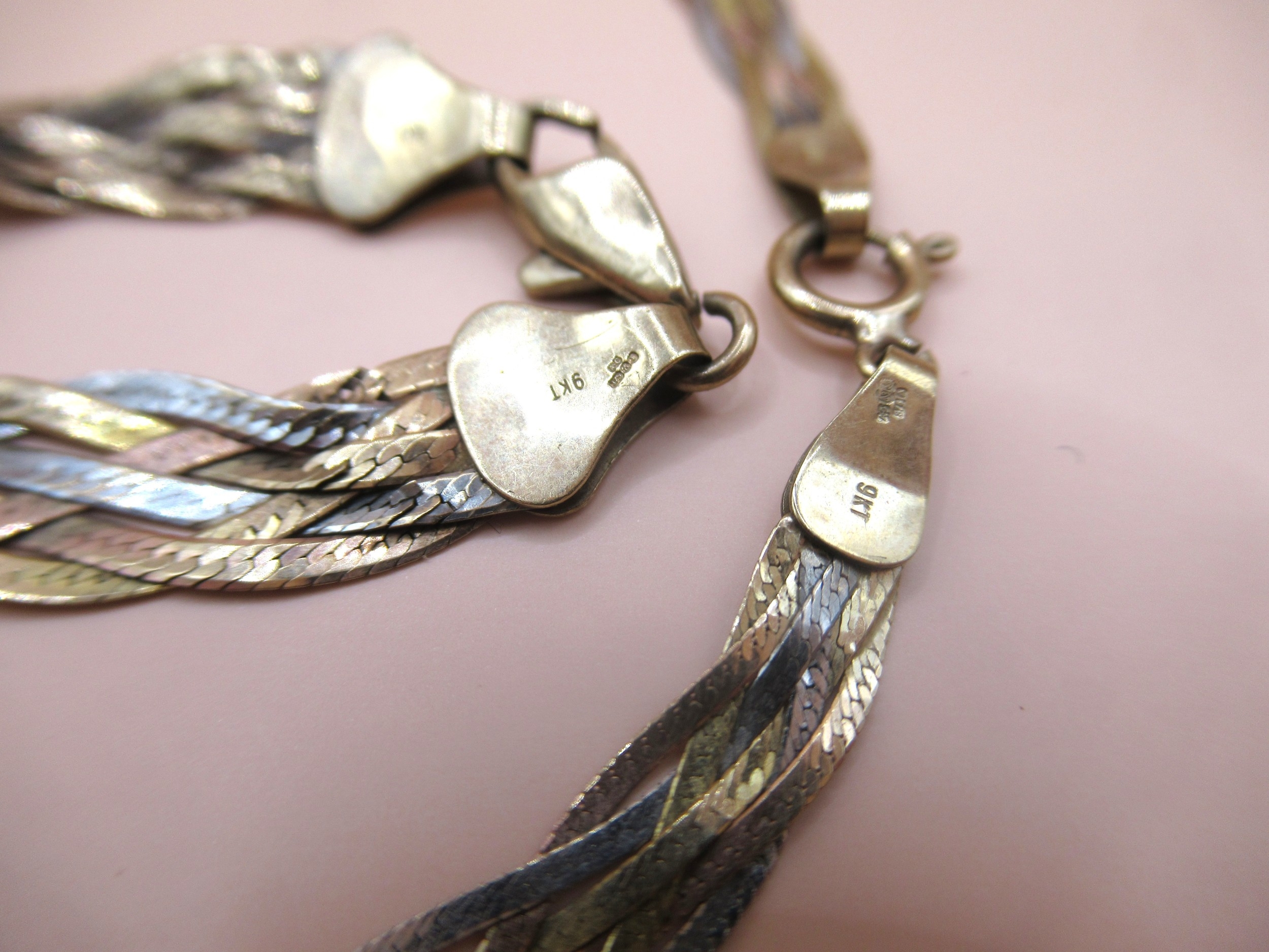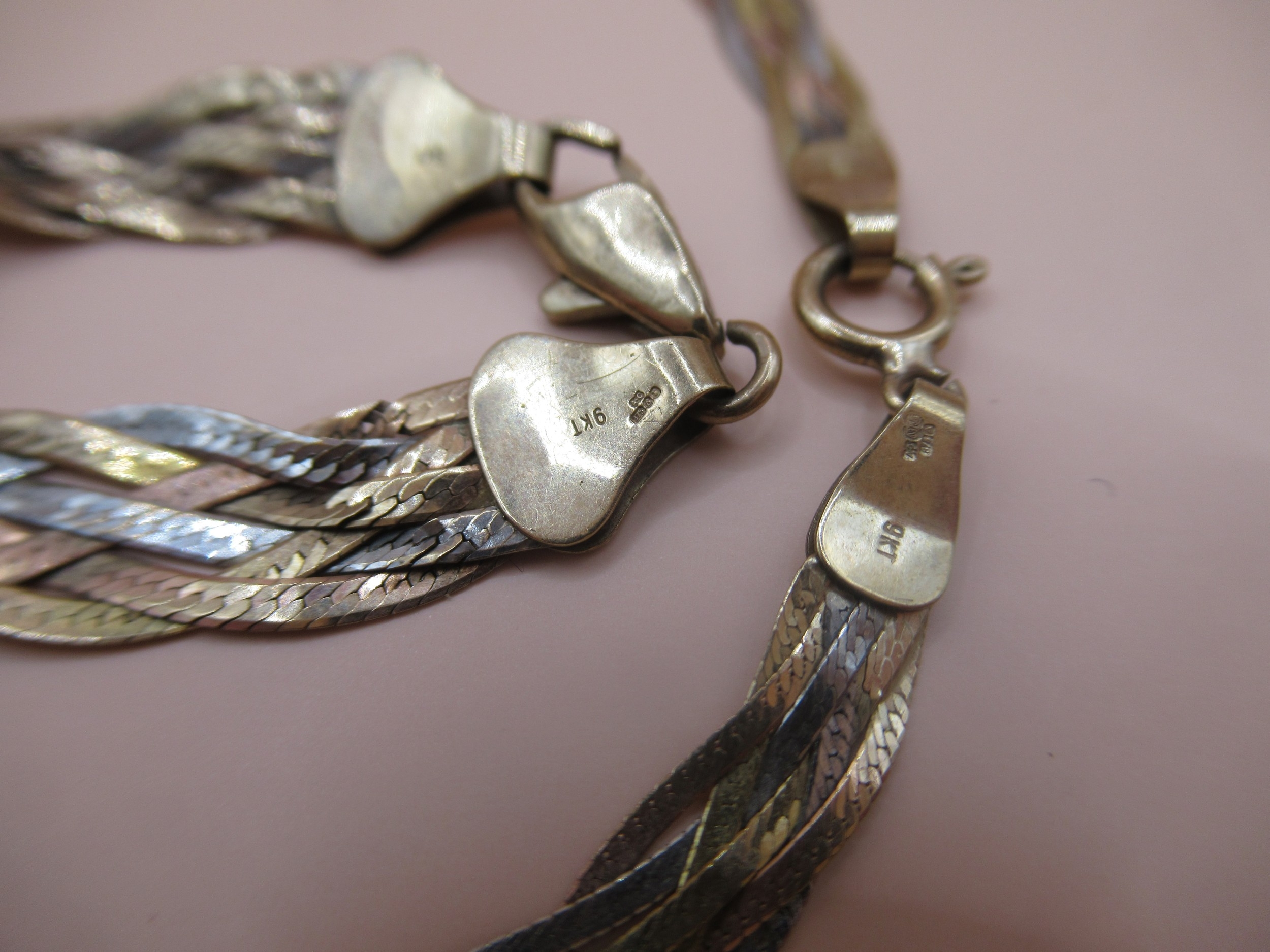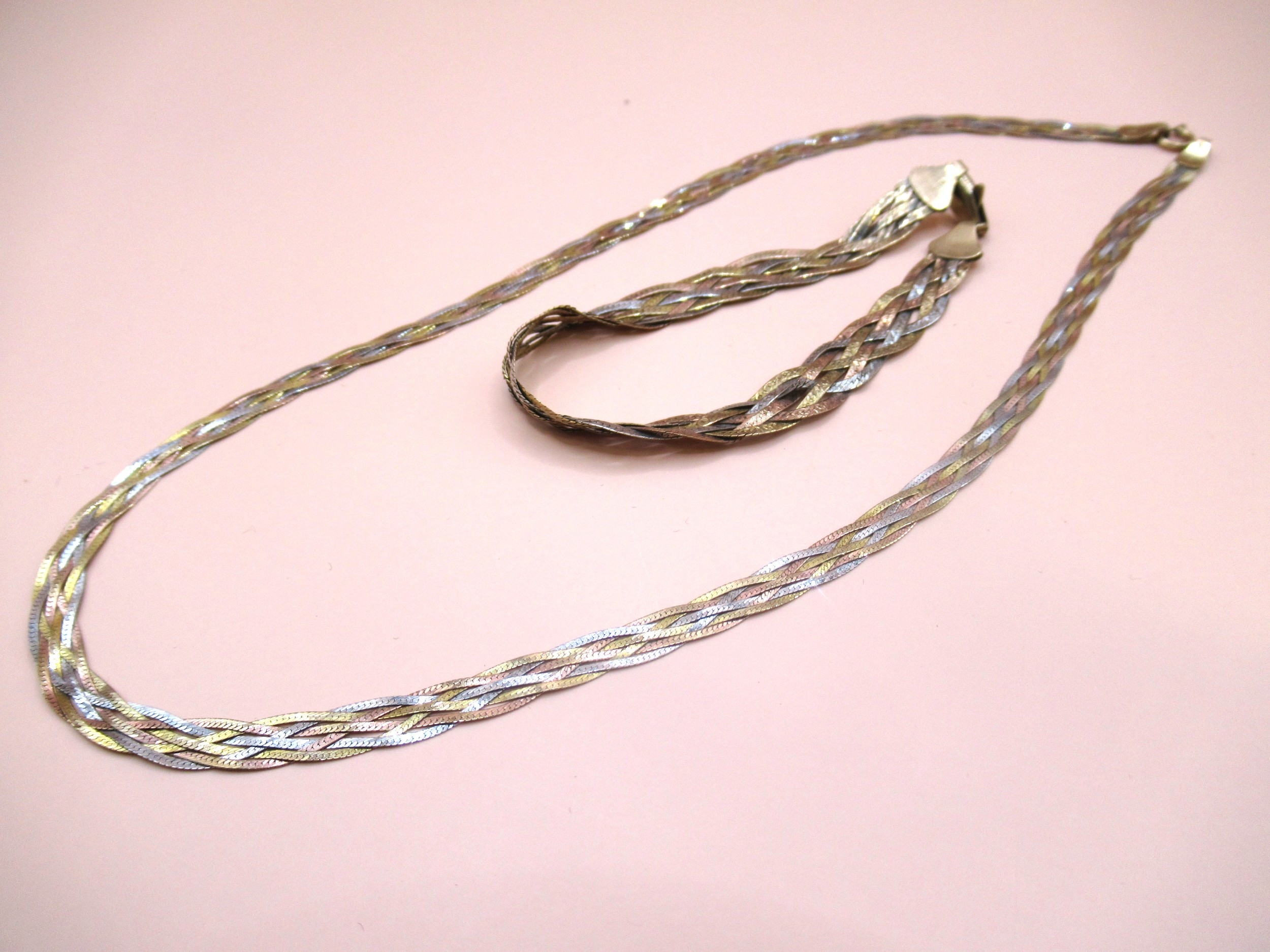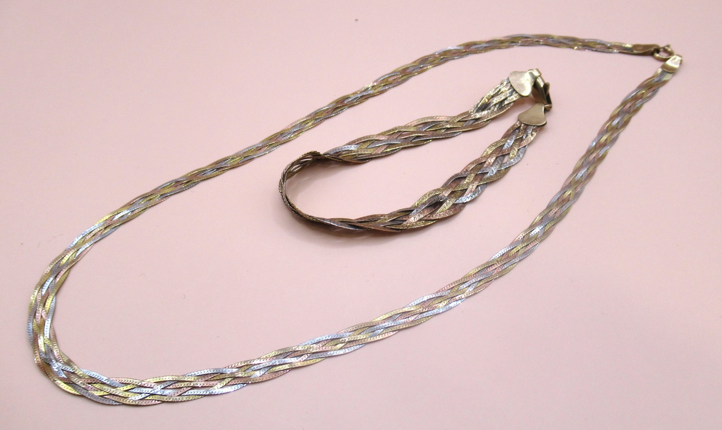 9ct Three colour gold necklace and matching bracelet, 9.5g