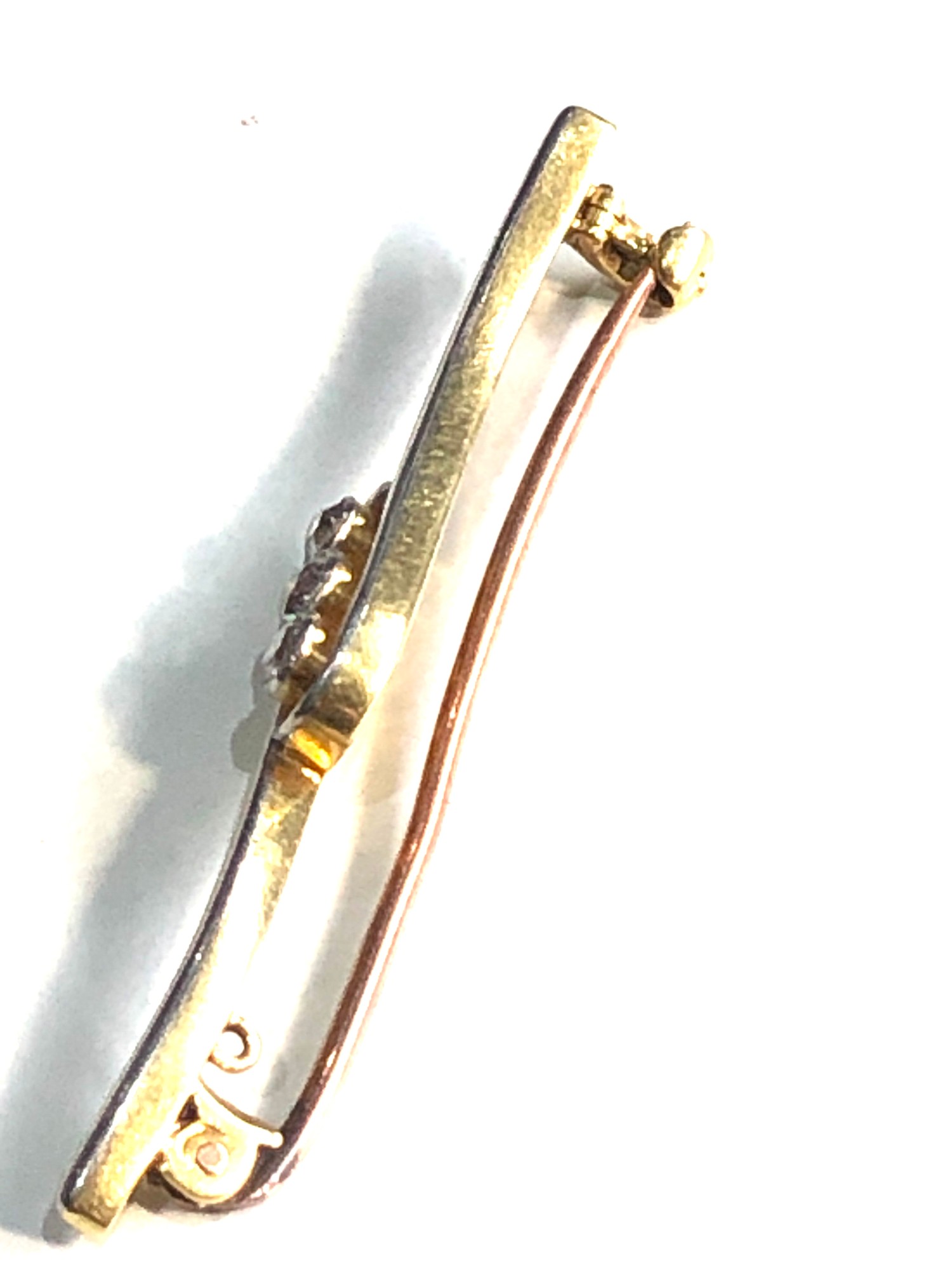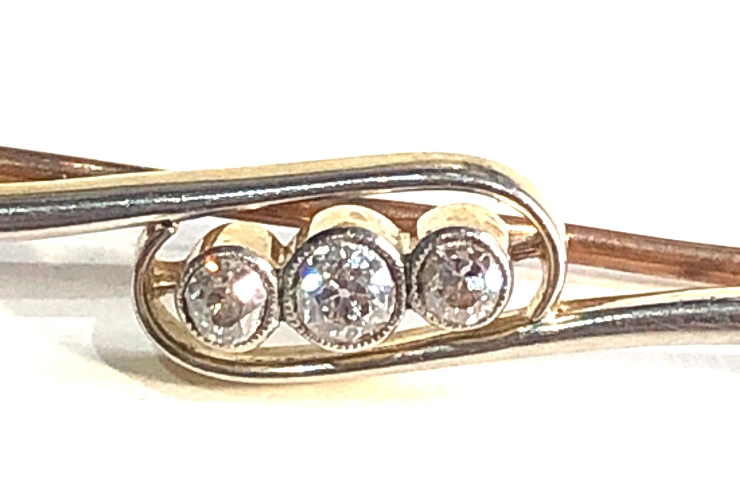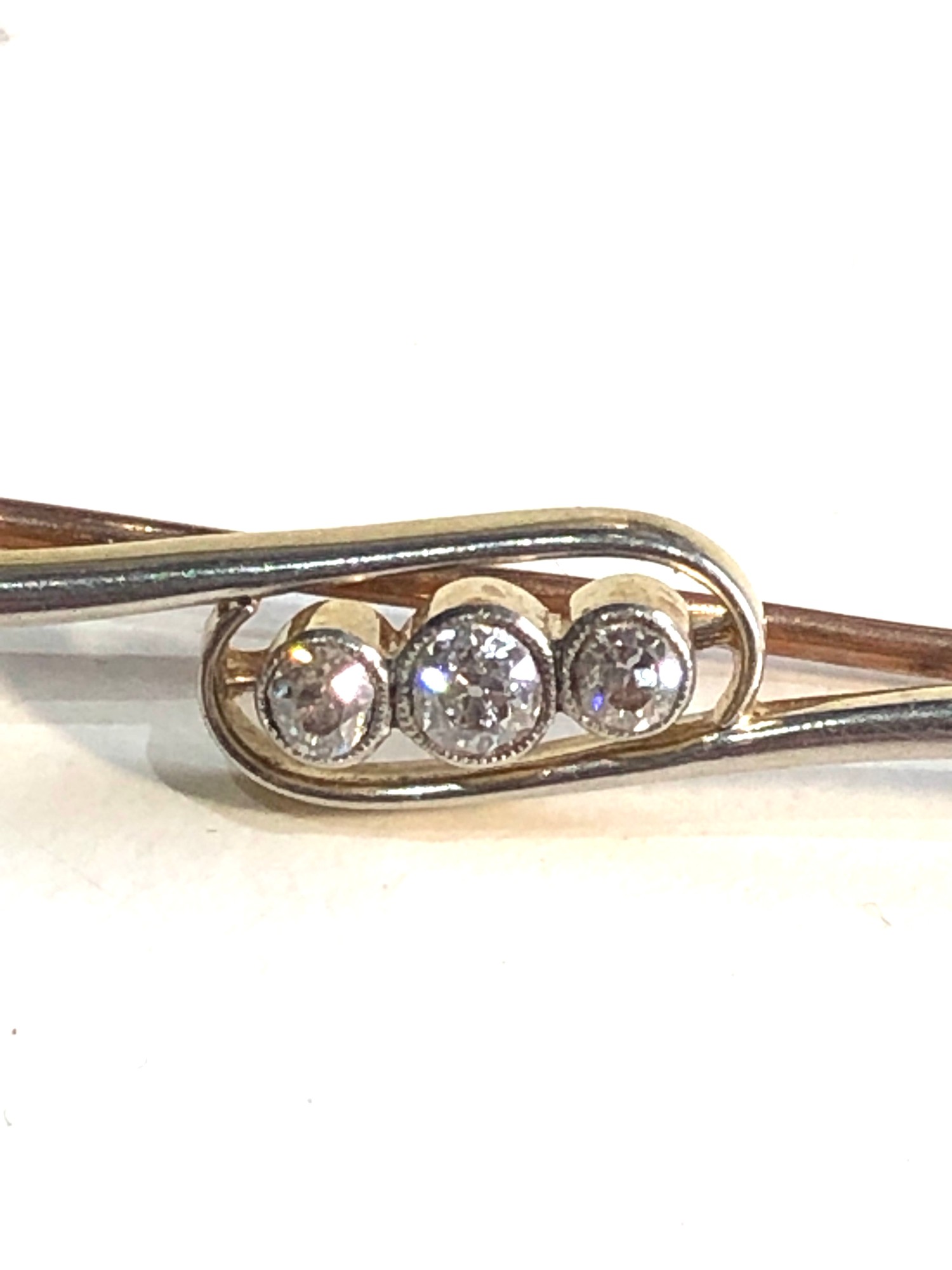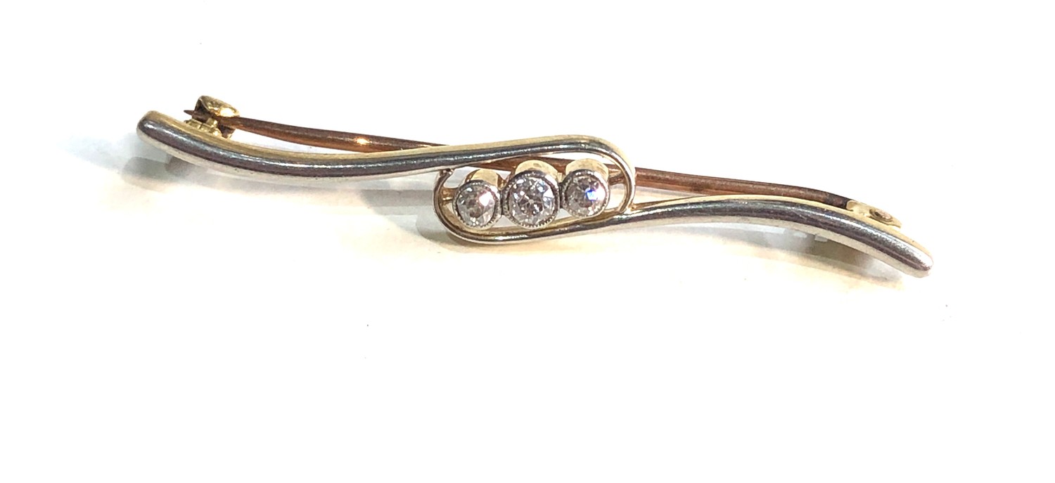Antique 18ct gold 3 stone diamond brooch measures approx 4.8cm long weight 4.1g
