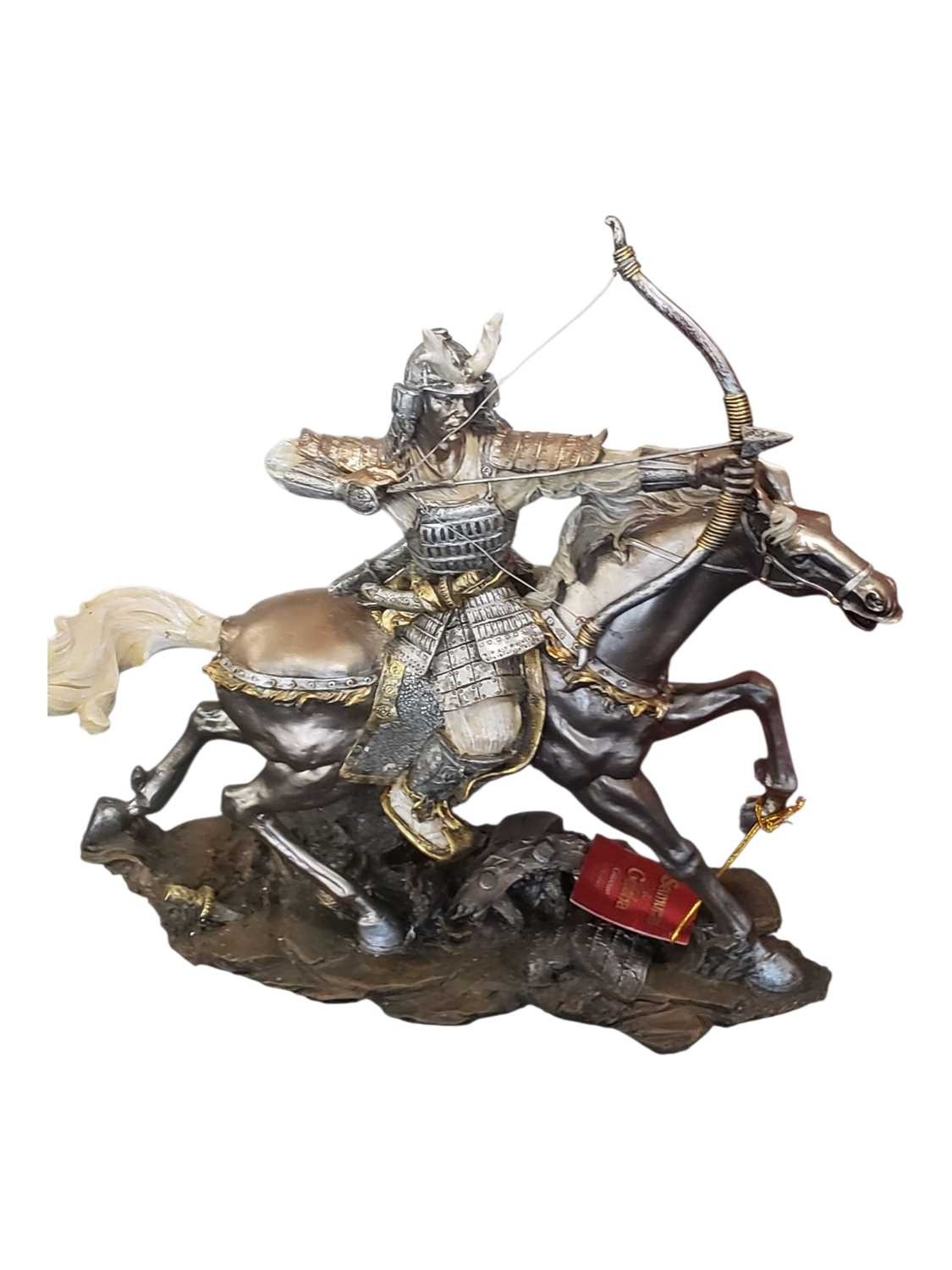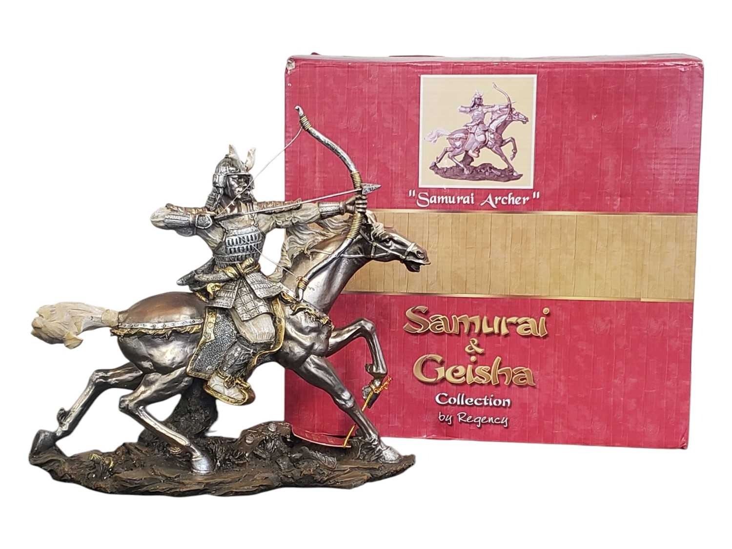 Samurai & Geisha Collection by Regeny - A boxed vintage 20th century resin statue / sculpture. Samurai archer depicting a samurai Japanese warrior on horseback on a naturalistic base.