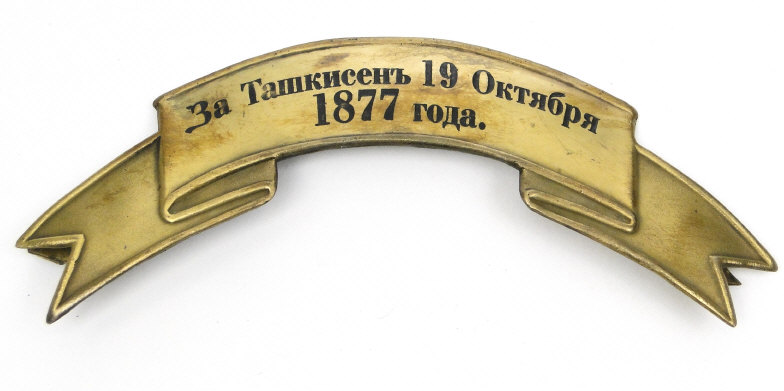Military Russian Imperial Russo-Turkish War 1877 helmet decoration honour scroll engraved 'For Tashkisen 1877 19 October'