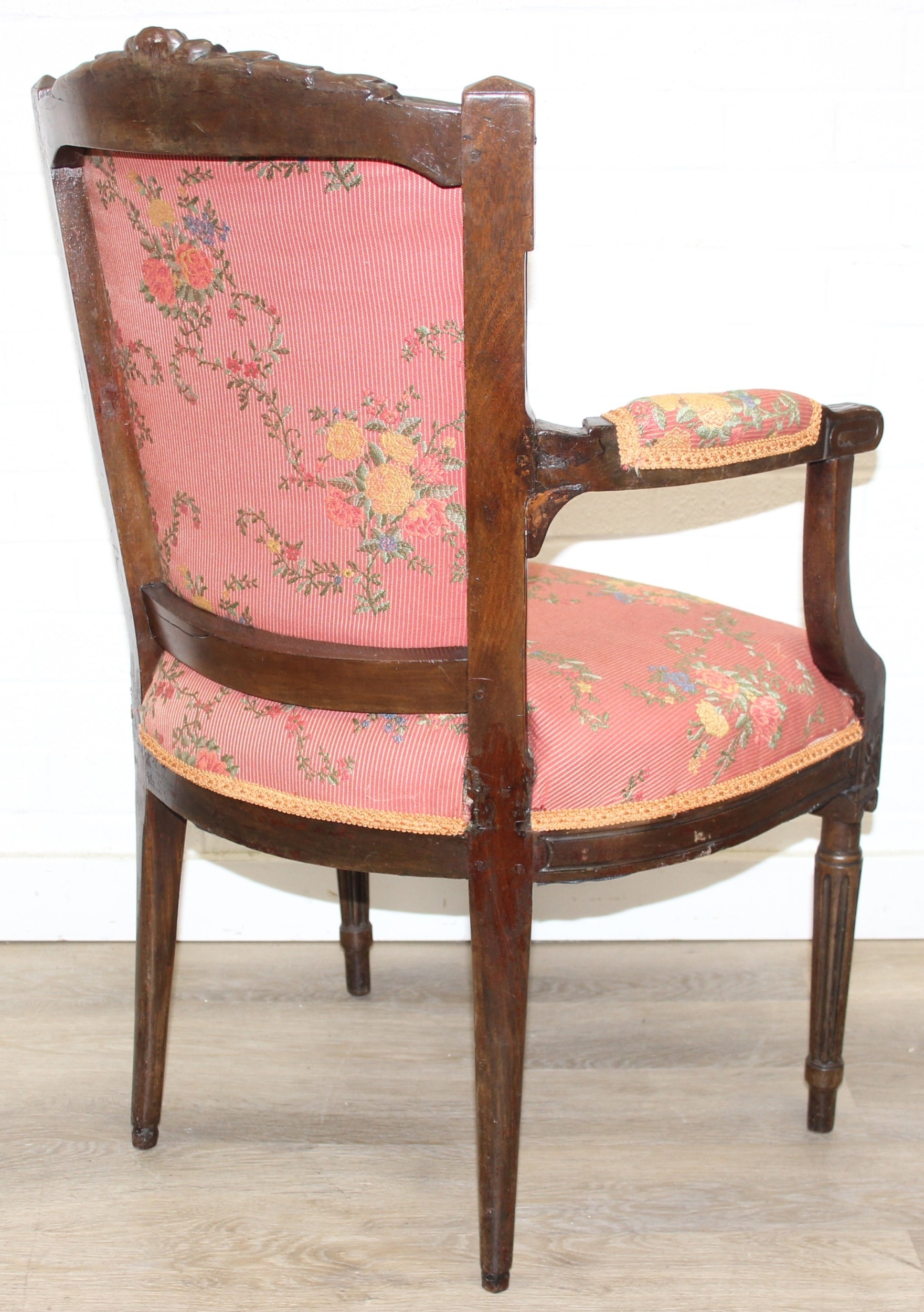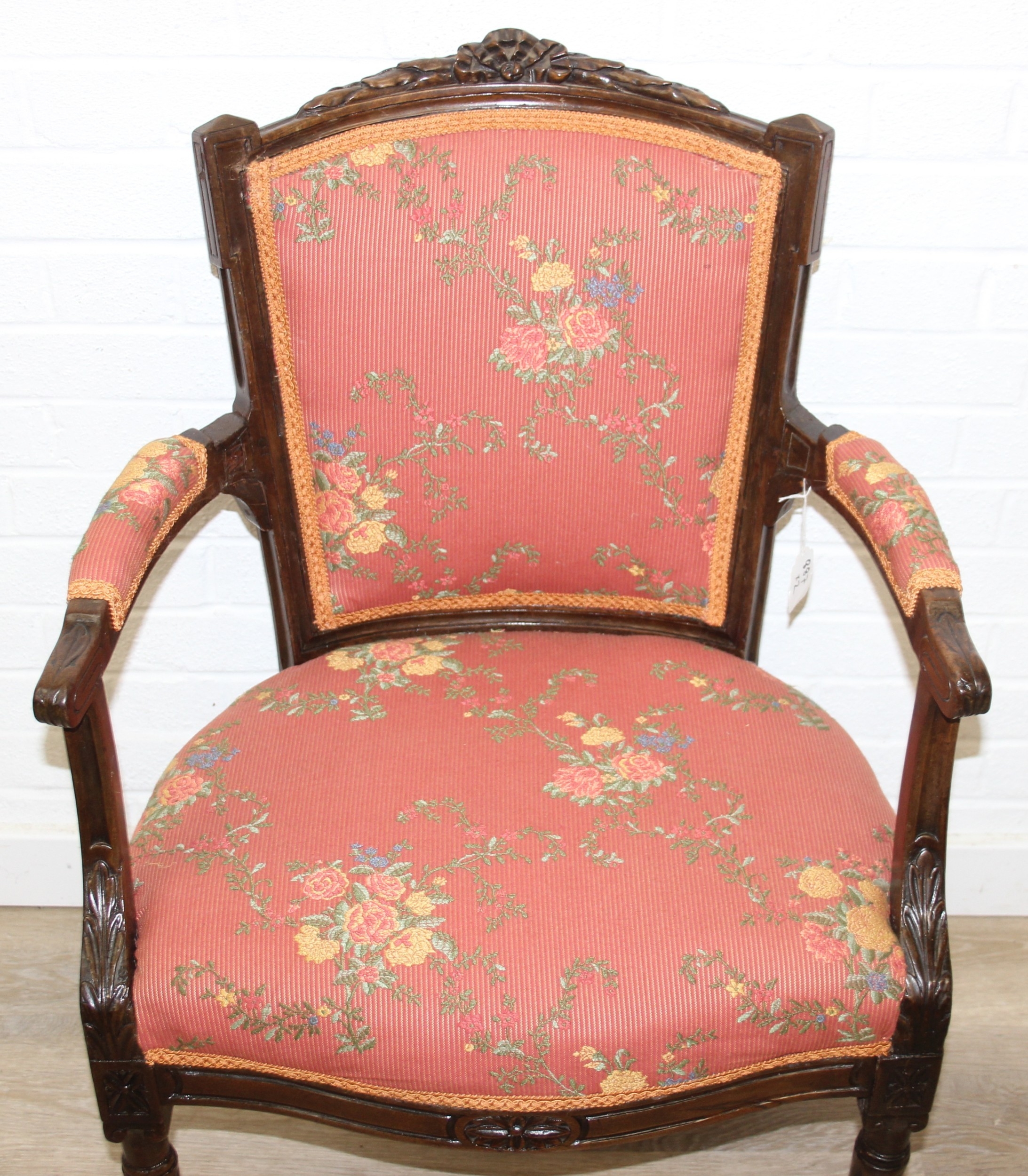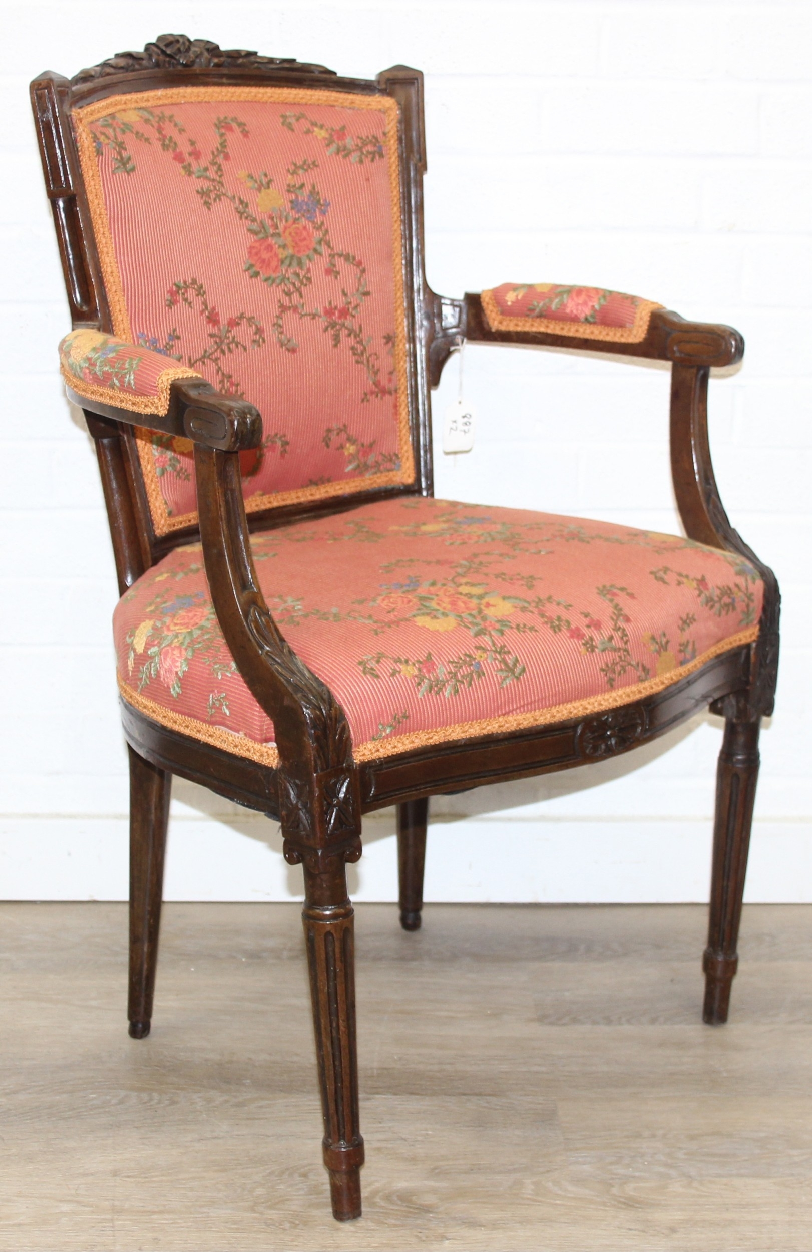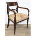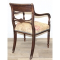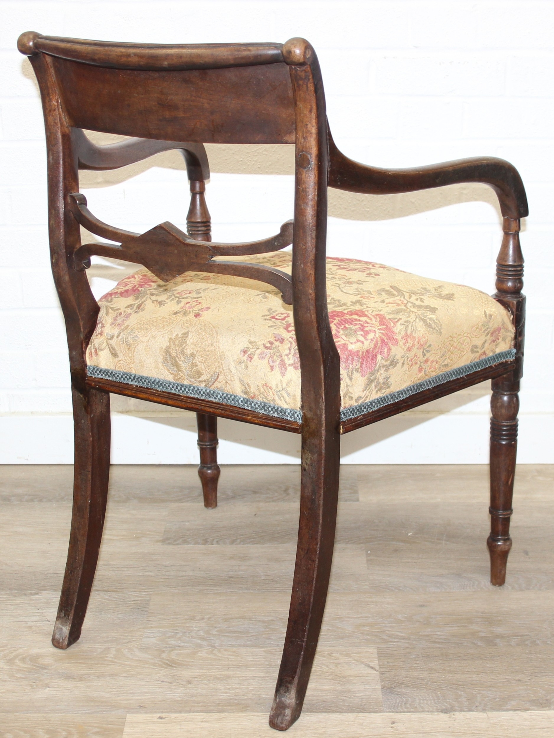 A Regency style open armchair with later floral upholstery, 94cm tall & a Georgian mahogany carver armchair with rail back and later floral upholstery, 82cm tall [2]