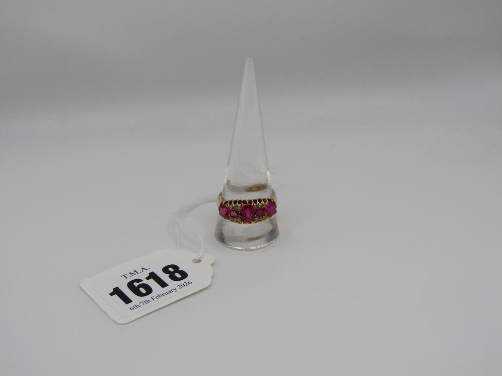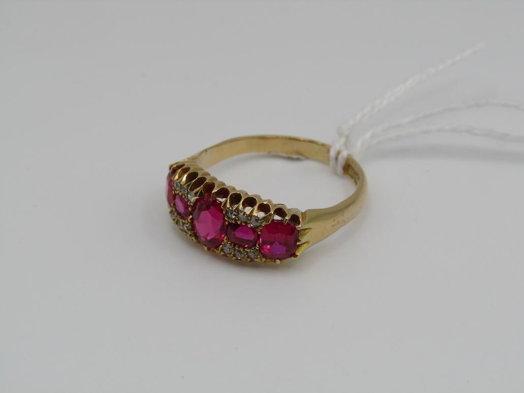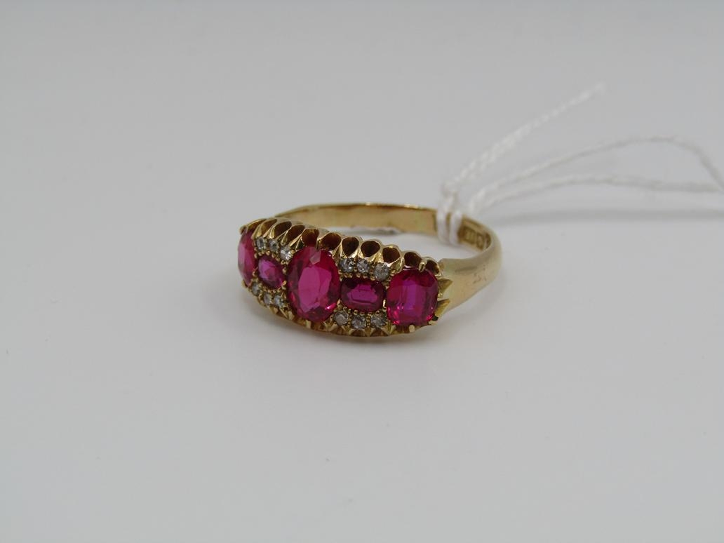 18CT VICTORIAN RUBY (SYNTHETIC) DIAMOND RING FULL HALLMARK
