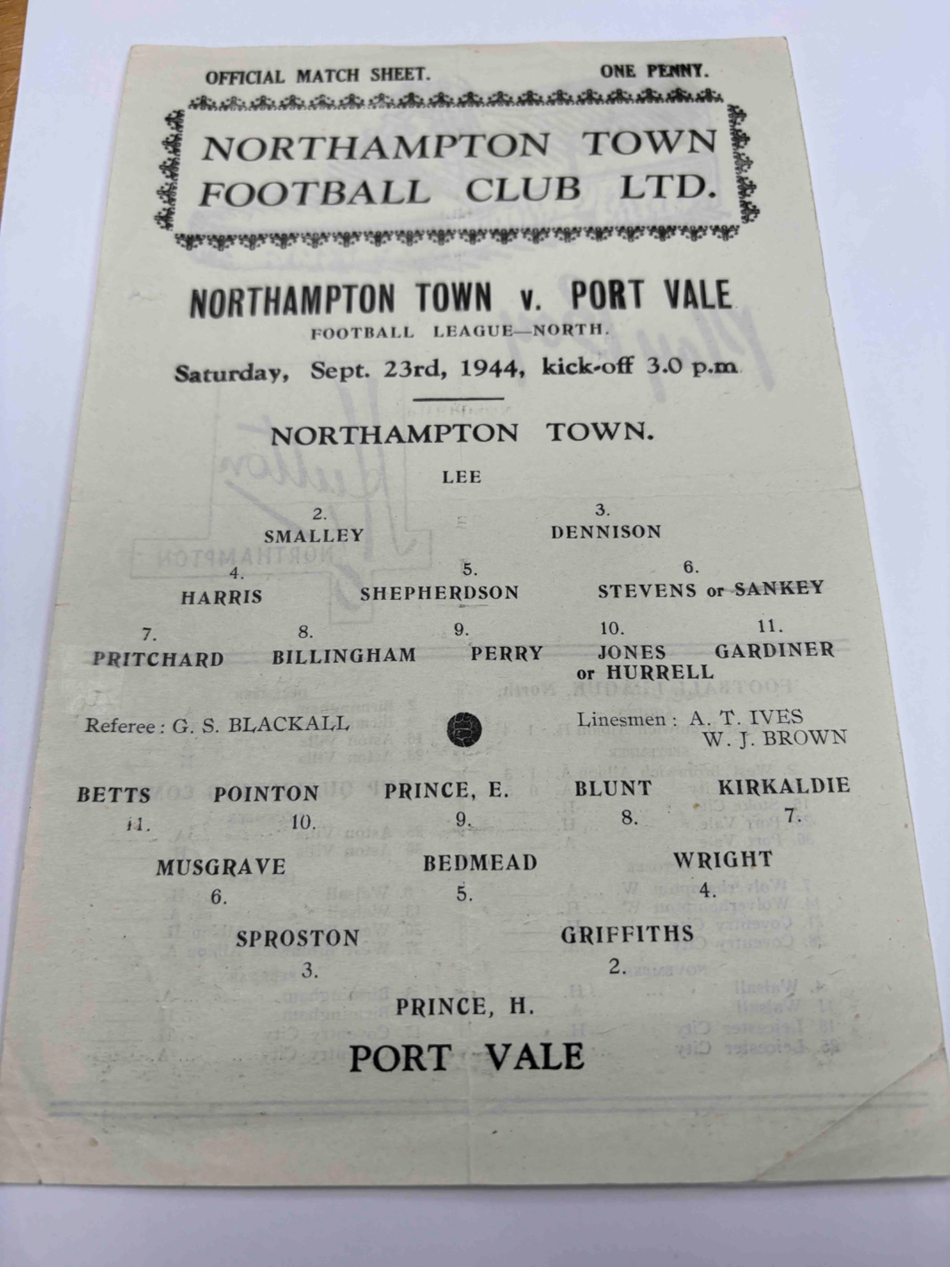 1944/45 Northampton Town v Port Vale, FL North. S/S VG