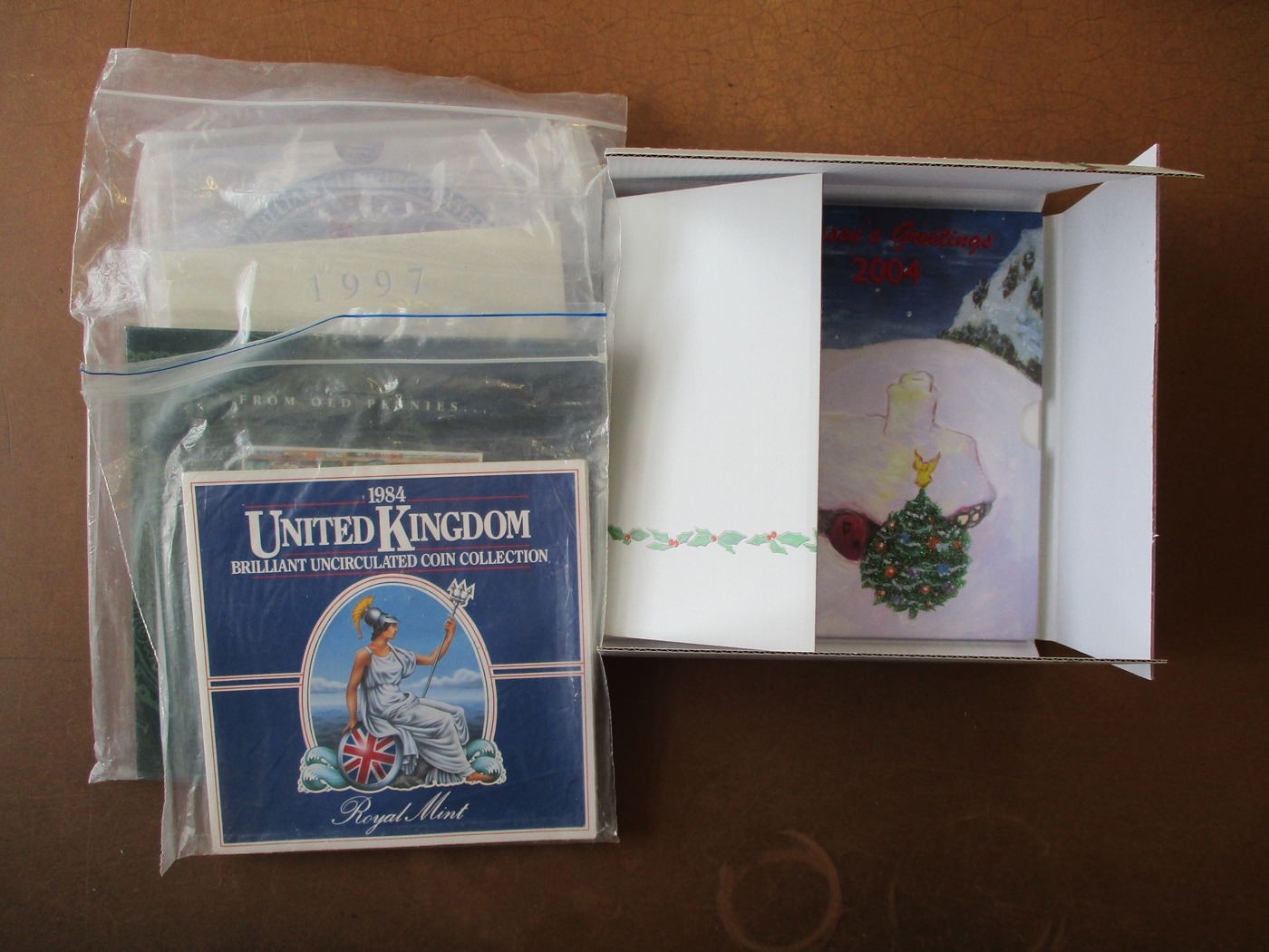 Modern collection with crowns 1935 and 1937 extremely fine, proof cased sets FDC 1980, 2000 and 2008, Royal Mint uncirculated year sets 1984, 1996 from old pennies, 97 Wedding, 2004 Christmas, 2007, uncirculated packs £5 1996, 97, 2000 Queen Mother, 2006, uncirculated cards 1990 (2) etc. (B)