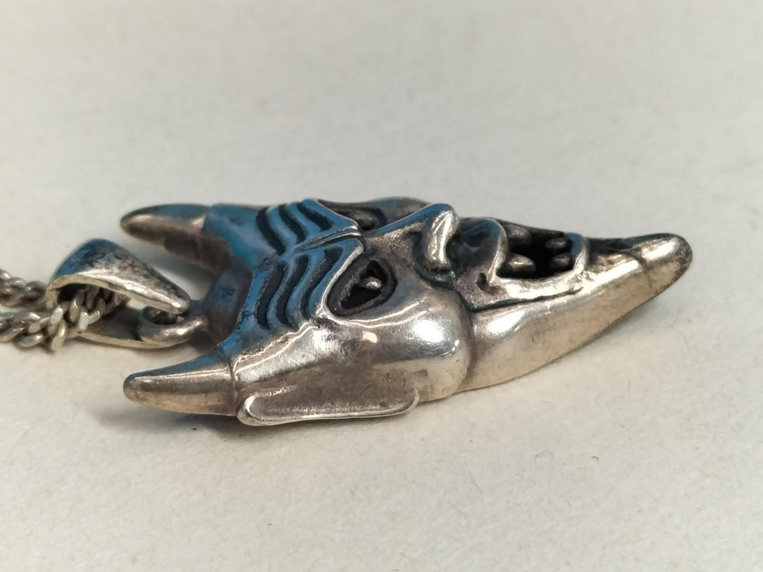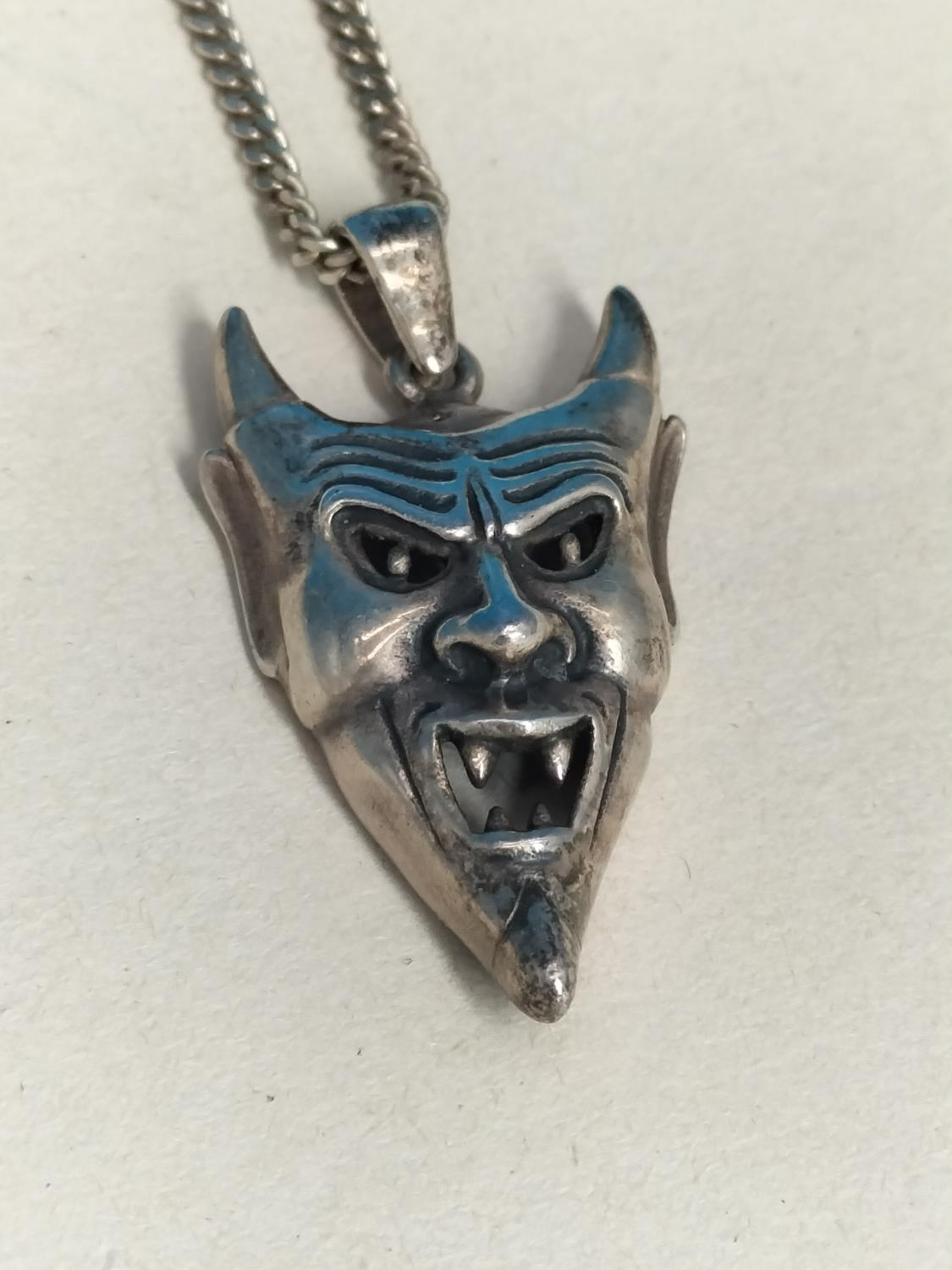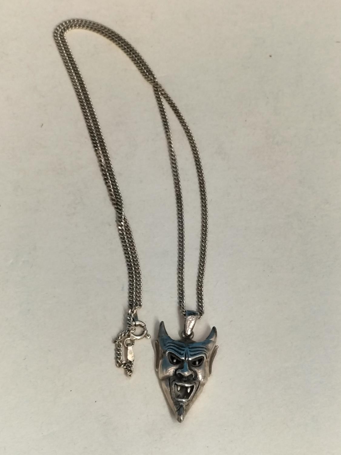 Silver 925 Devil Face Pendant on 925 Silver 18" Chain.