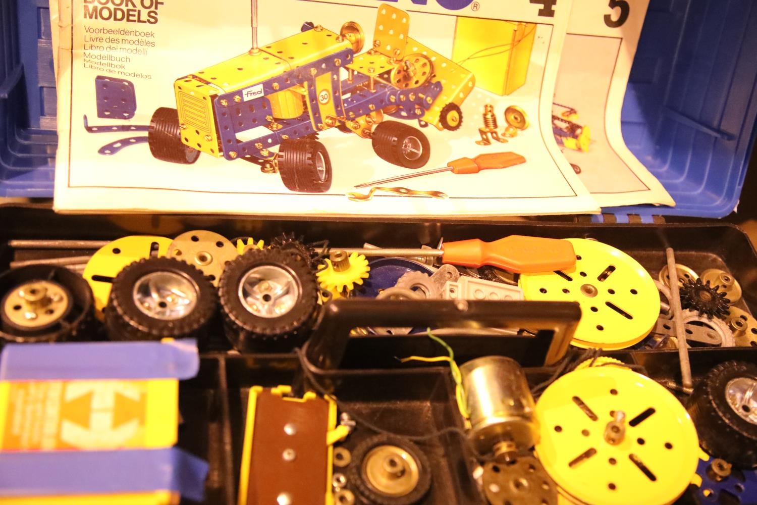 Plastic tool box of various bits of Meccano and modeling books 1, 4 and 5. Not available for in-house P&P