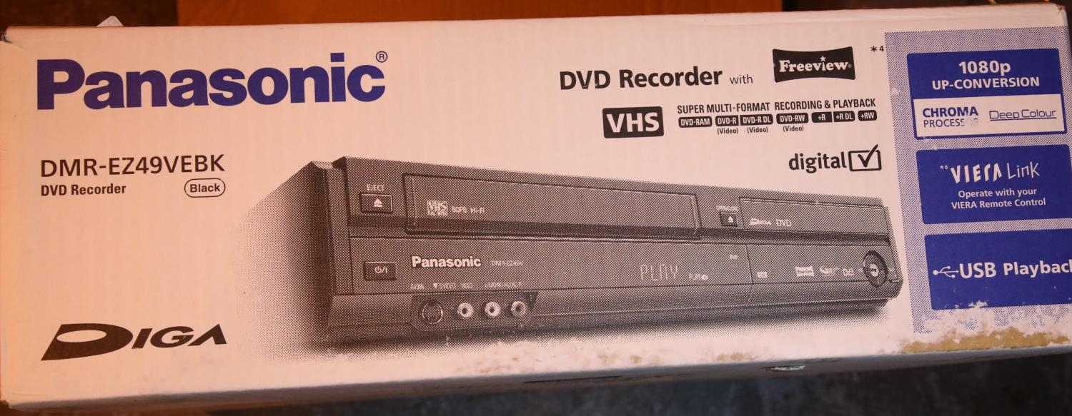 Boxed Panasonic DMR-E249VEBK DVD recorder. Not available for in-house P&P, contact Paul O'Hea at Mailboxes on 01925 659133