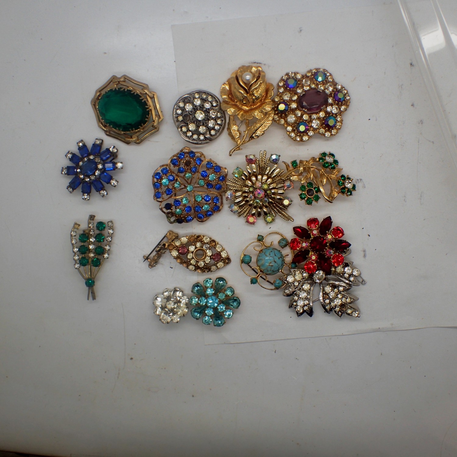 Fourteen Mixed costume jewellery brooches. UK P&P Group 1 (£18+VAT for the first lot and £2+VAT for subsequent lots)