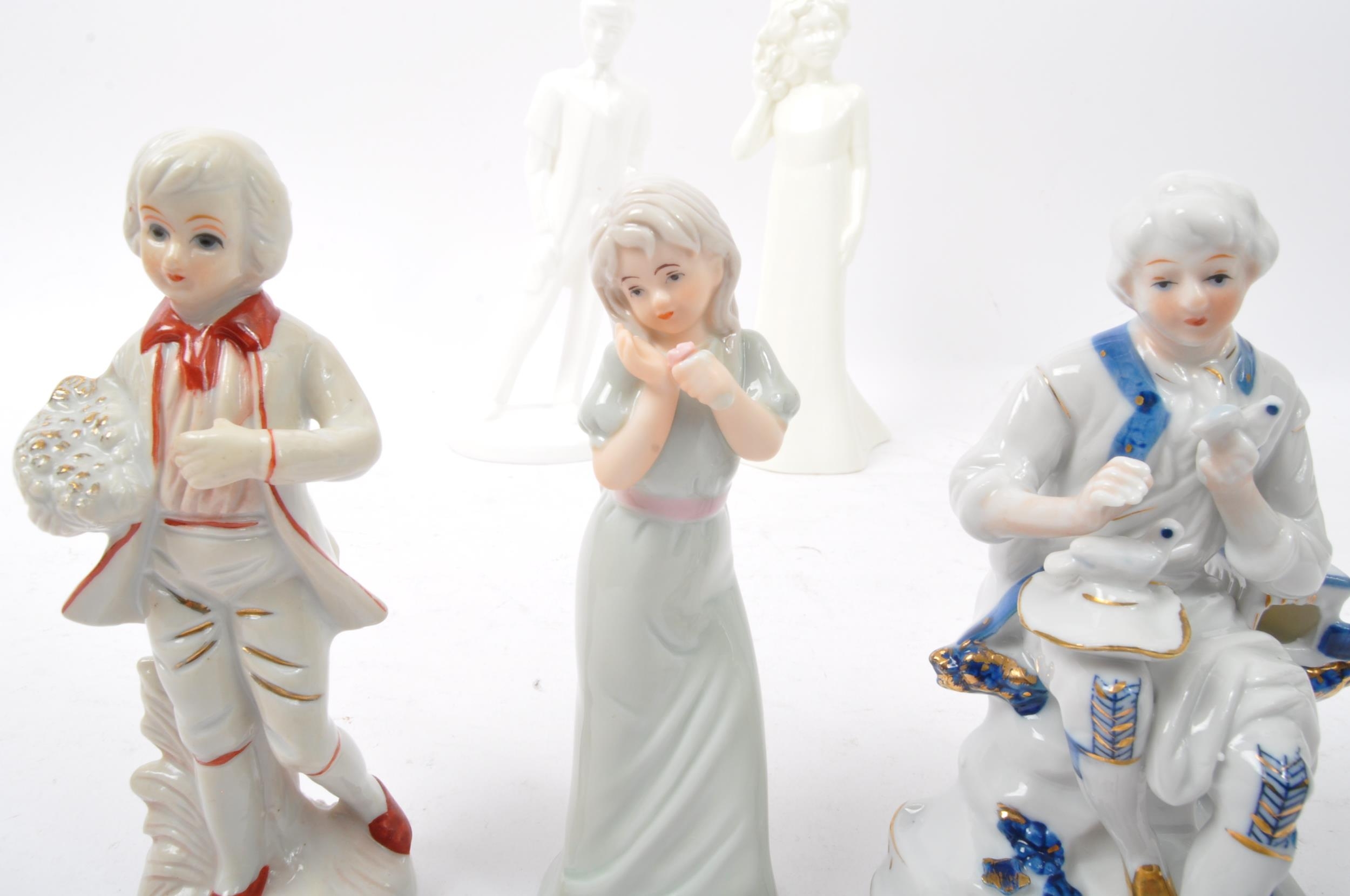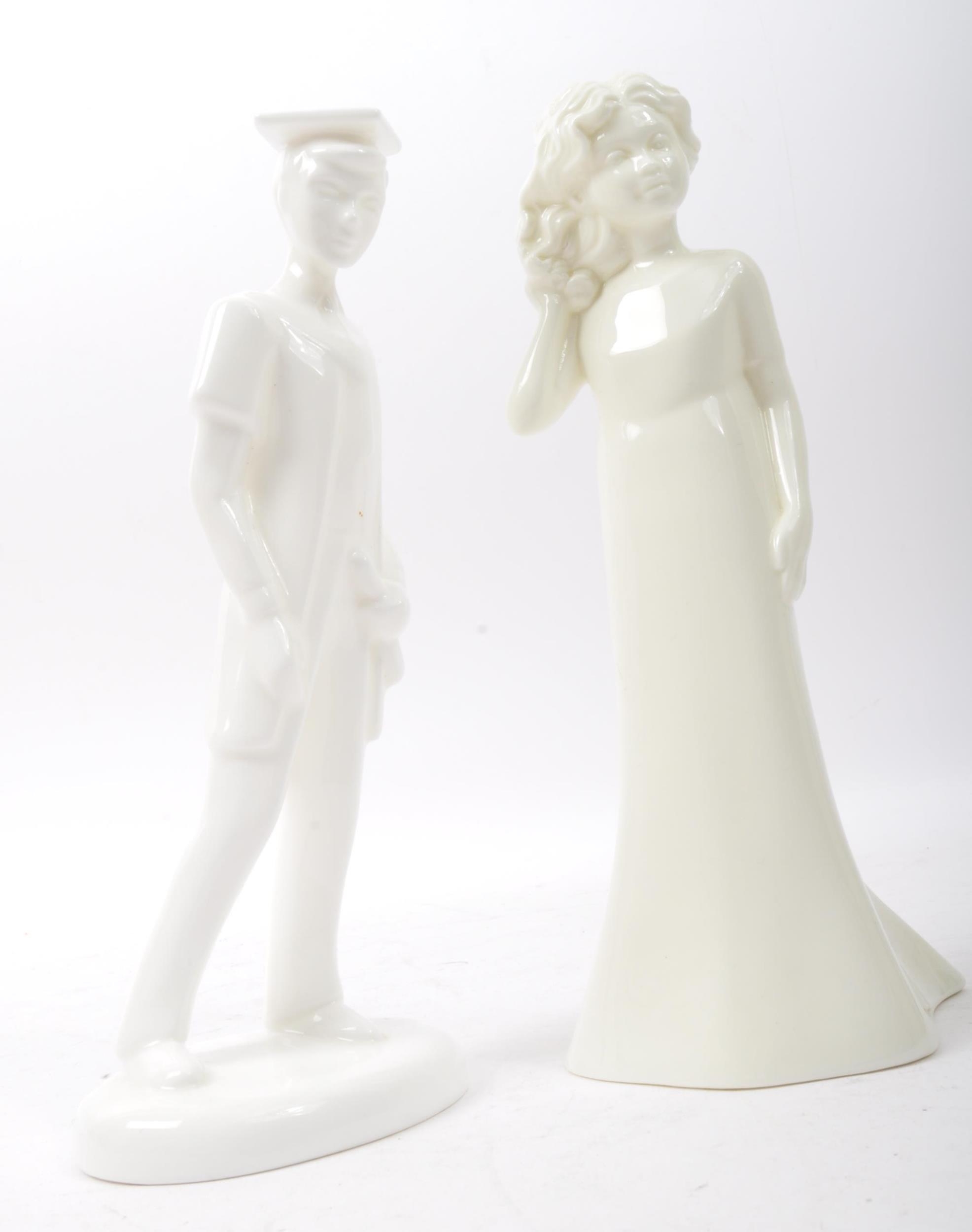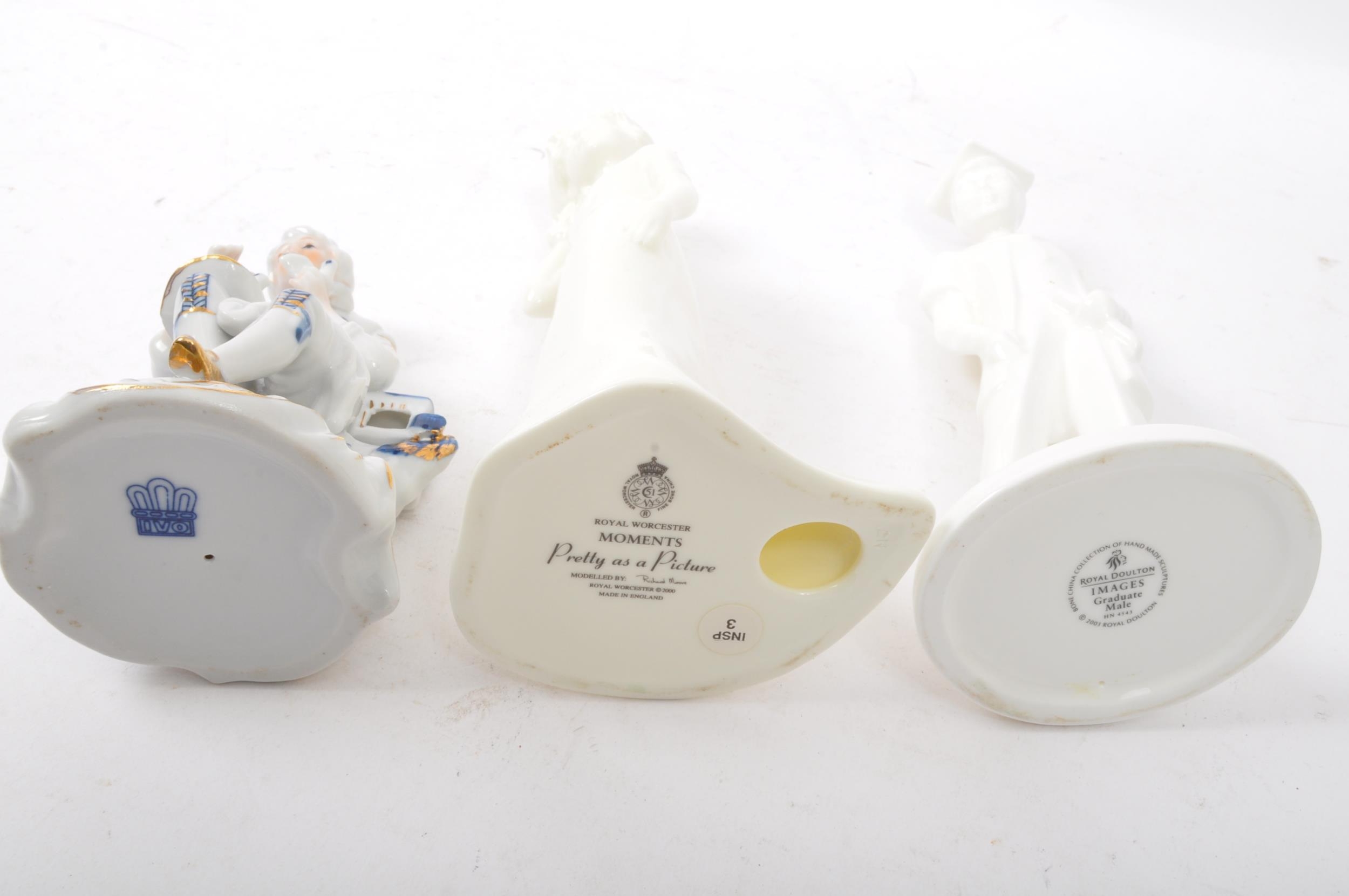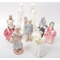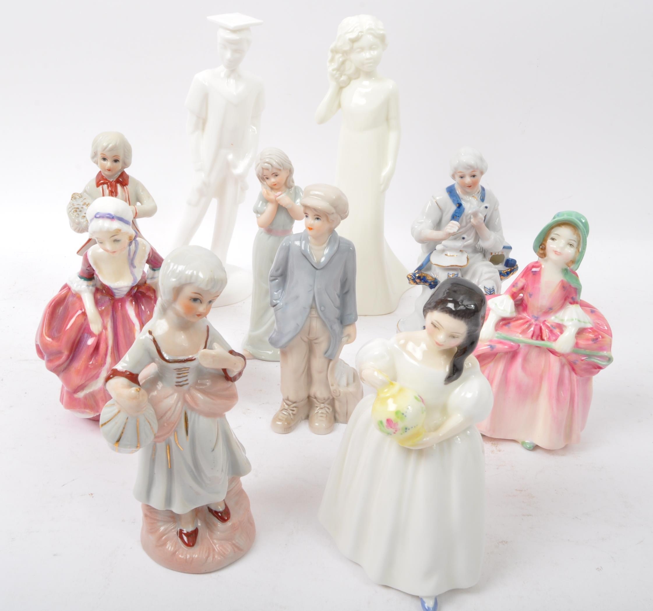 A collection of 20th century bone china figurines to include Royal Doulton Moments collection Graduate Male HN4543 and Pretty as a Picture, Mandy HN2476, Bo Peep HN1811, Goody Two Shoes HN2037 and a series of porcelain figures.