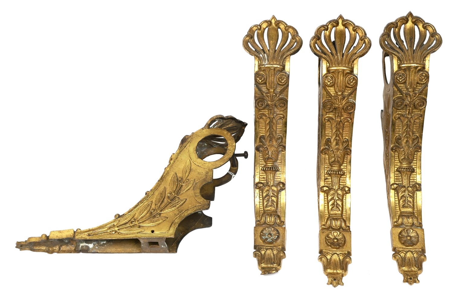 A set of four late Victorian giltmetal curtain pole brackets, 30 x 21cm