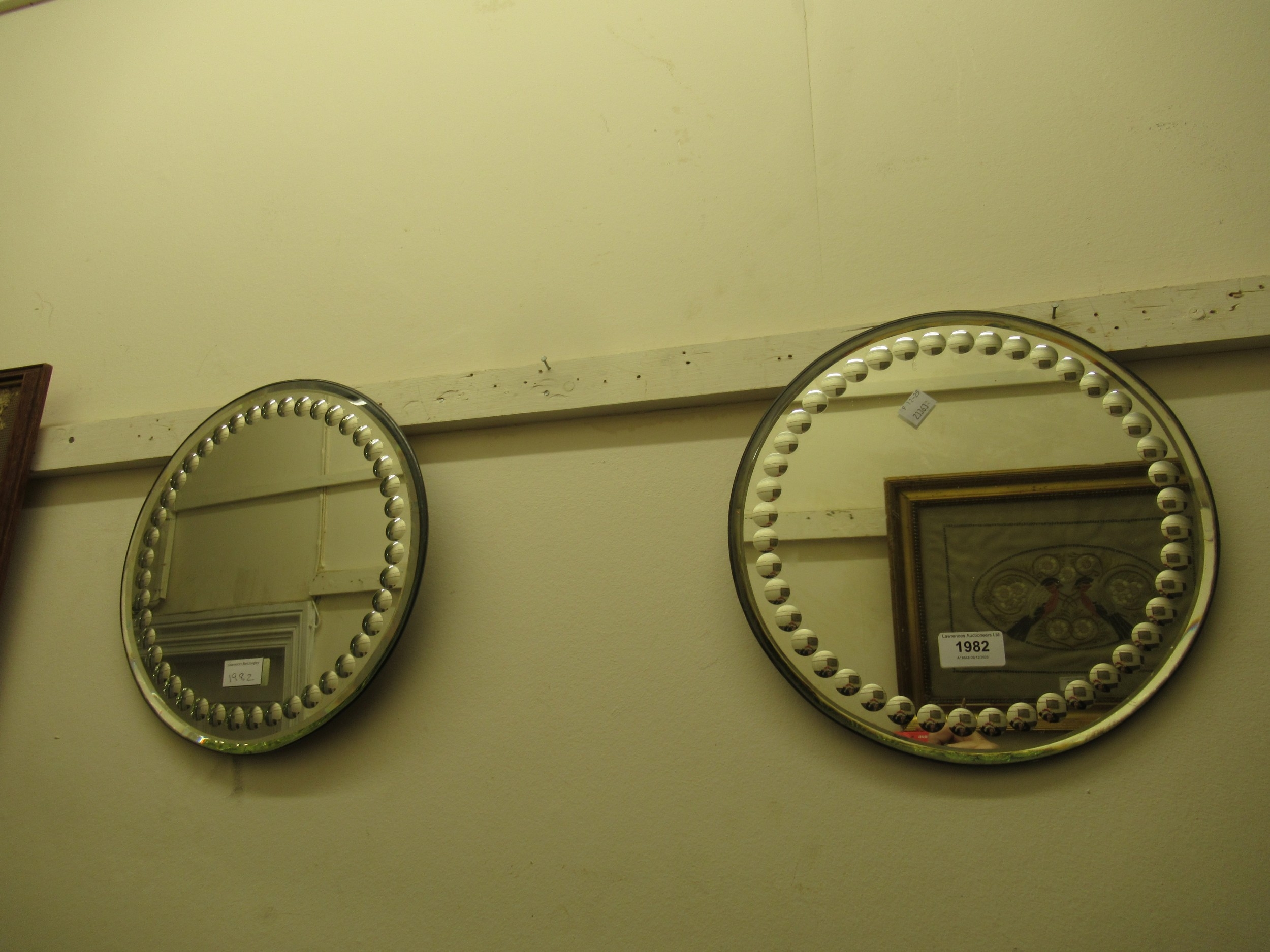 Two circular mirrored table centres, 30cm diameter, 30cm and 31cm diameter