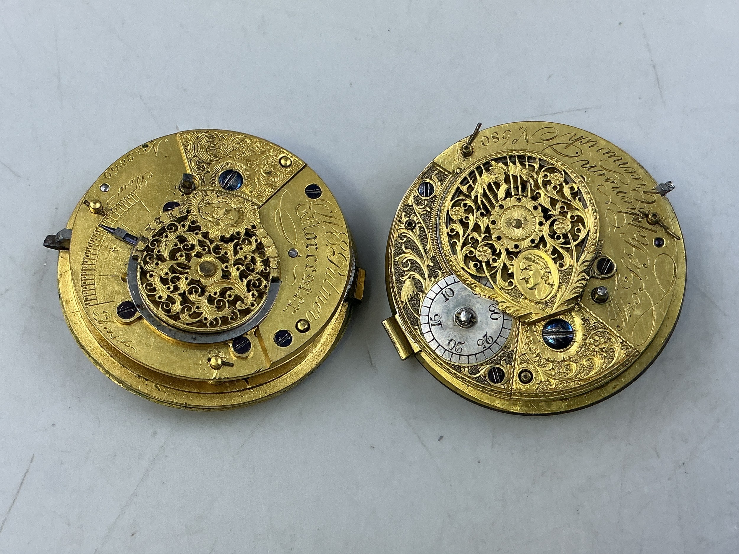 Two 18th Century Pocket Watch Heads with Verge Escapement Movement