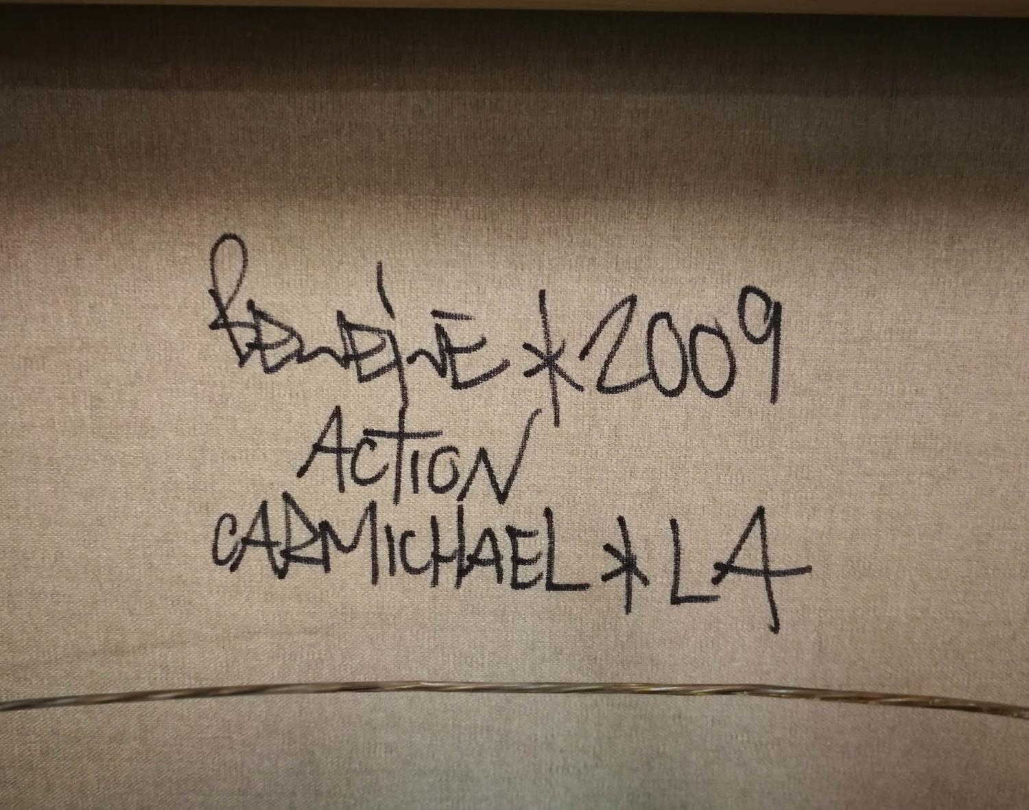 BEN EINE (British b. 1970) 'Action', 2009, original screenprint on canvas, signed, titled and dated verso, 60cm x 60cm, framed. (Subject to ARR - see Buyers Conditions)