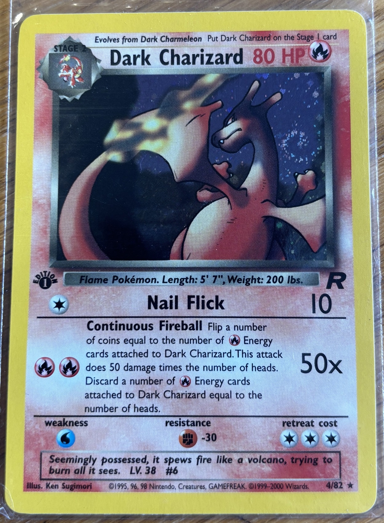 Pokemon. Dark Charizard. Team Rocket set holographic rare (4/82), 1st edition, light played. (Y)