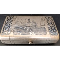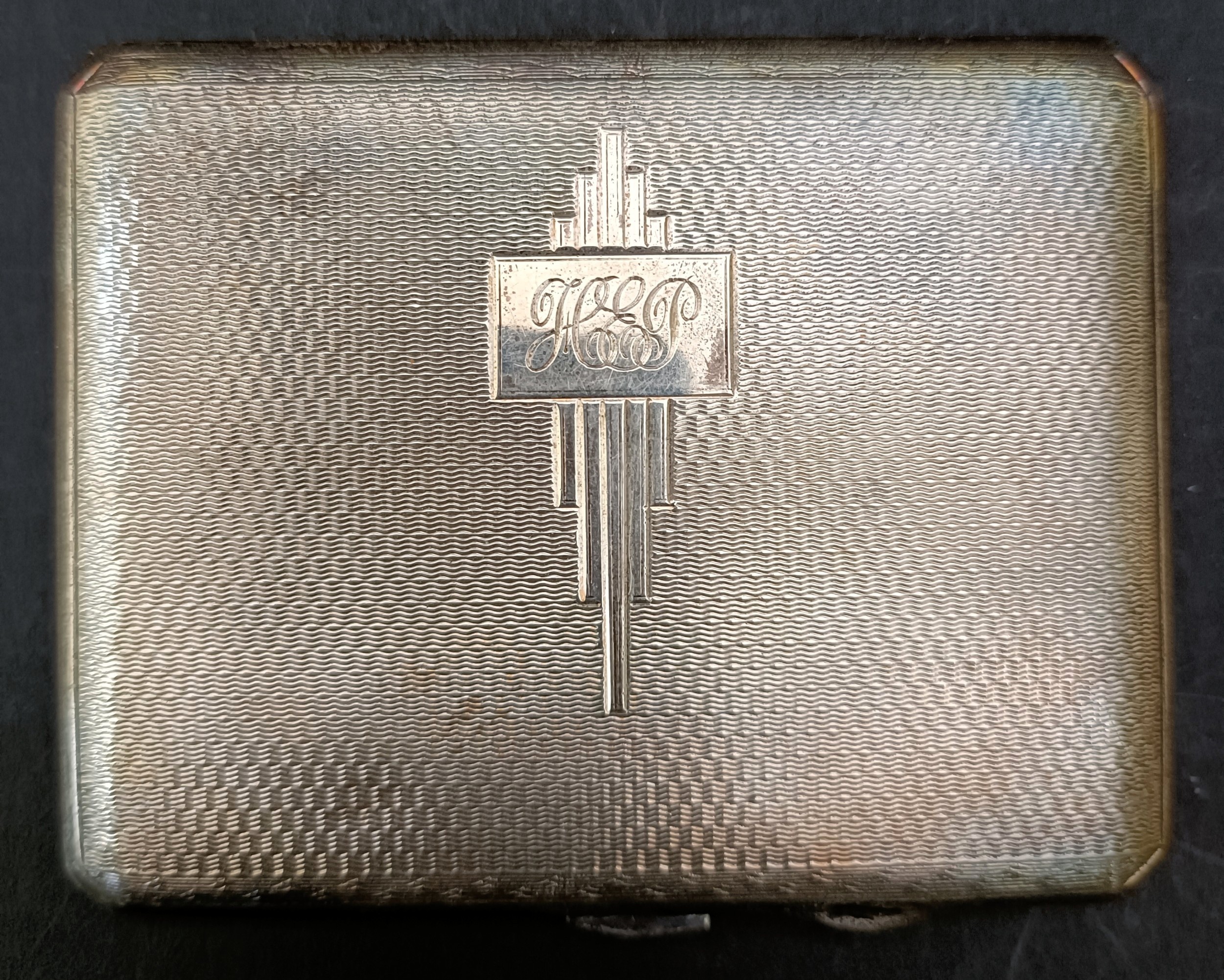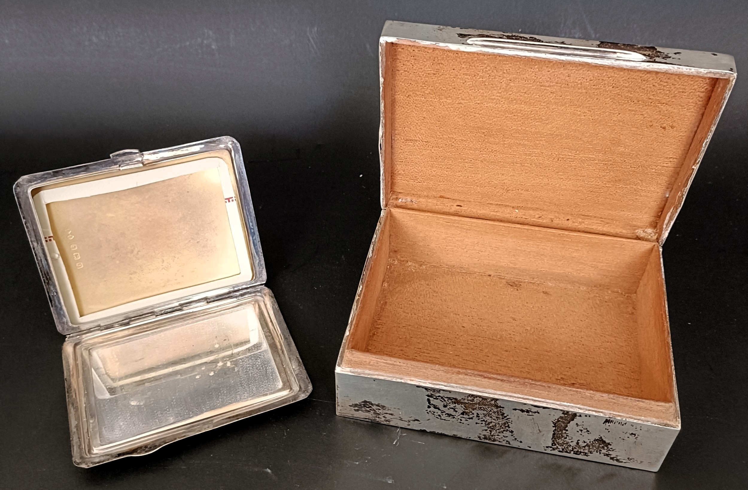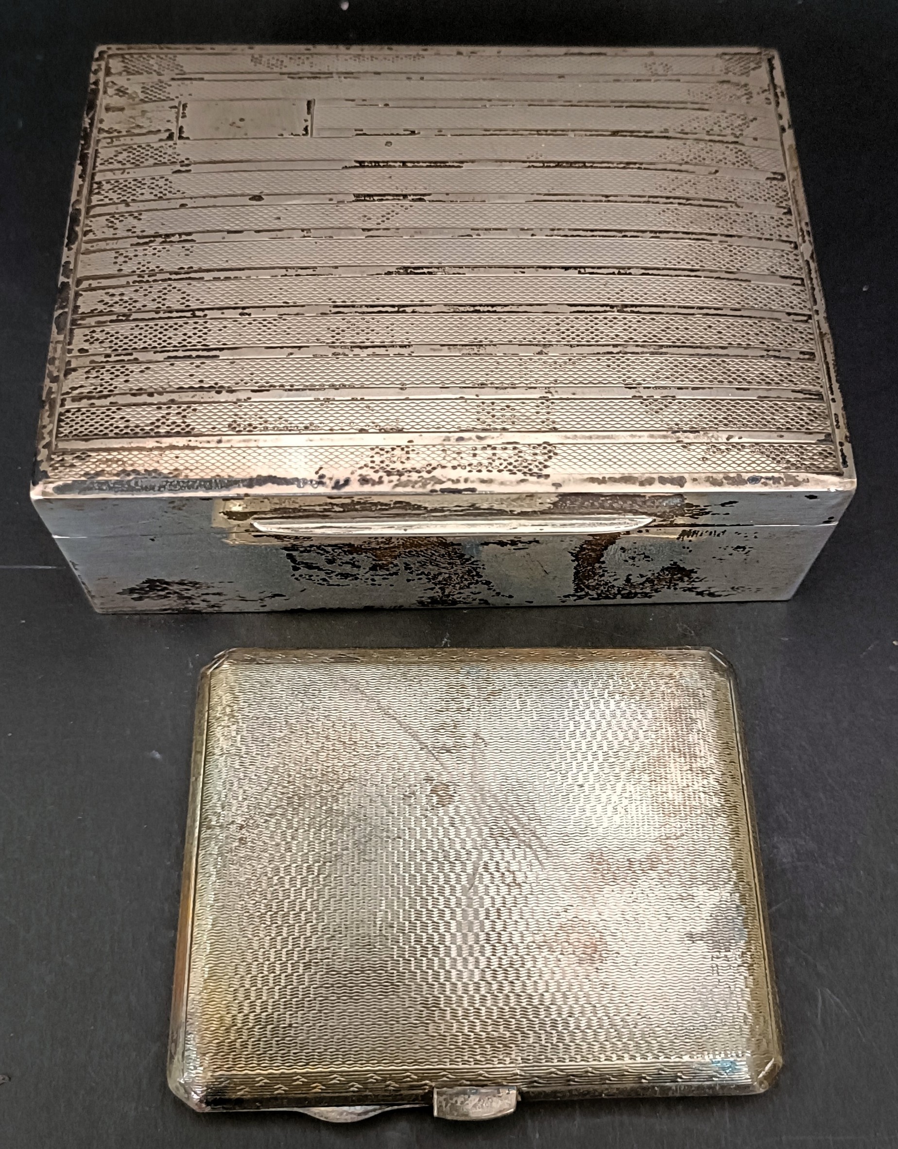 A George V silver cased compact, 10 cm wide, and a silver cigarette box, 12 cm wide (2)