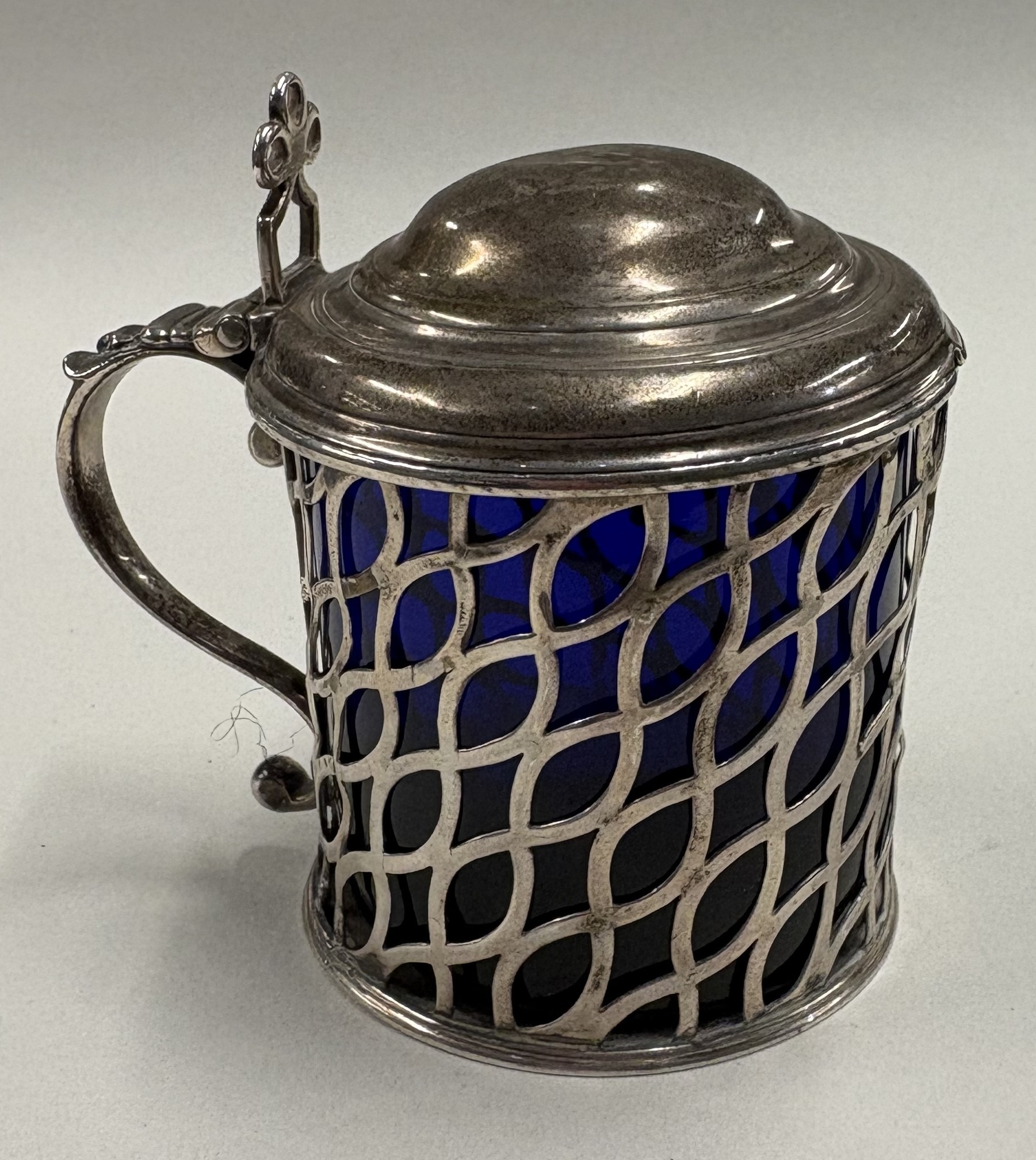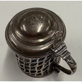 An 18th Century silver mustard pot with pierced decoration, fully marked to base. London 1770. Approx. 77 grams. Est. £300 - £400.