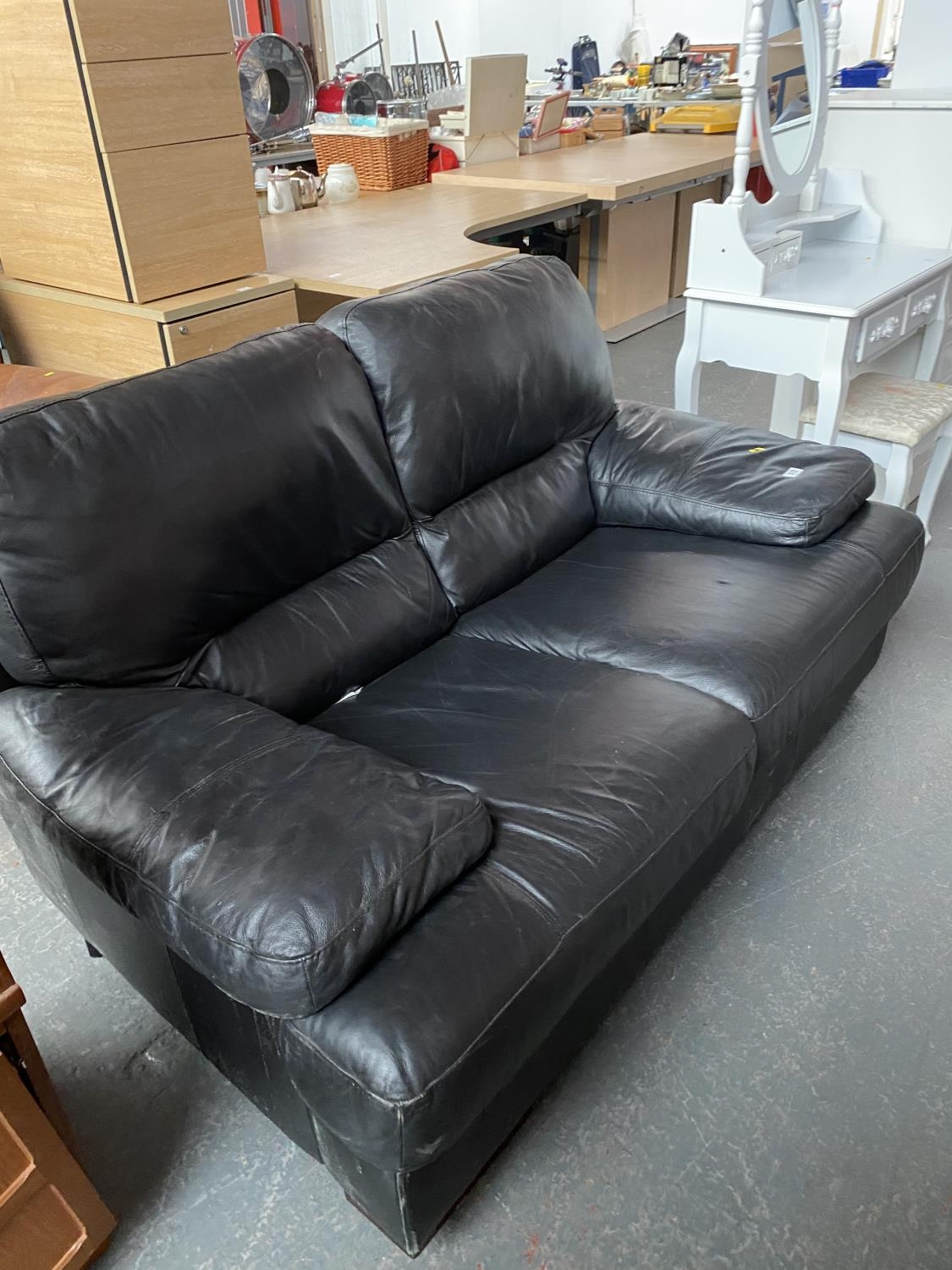 A black leather two seater sofa