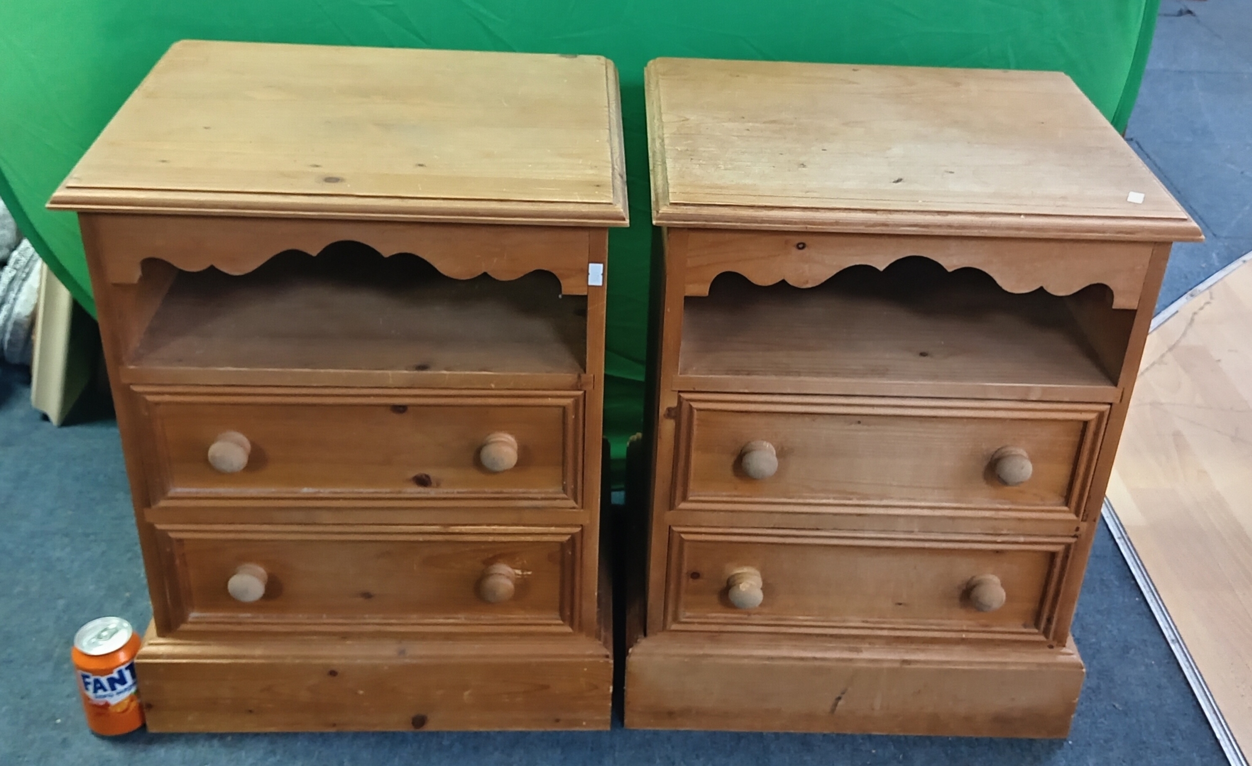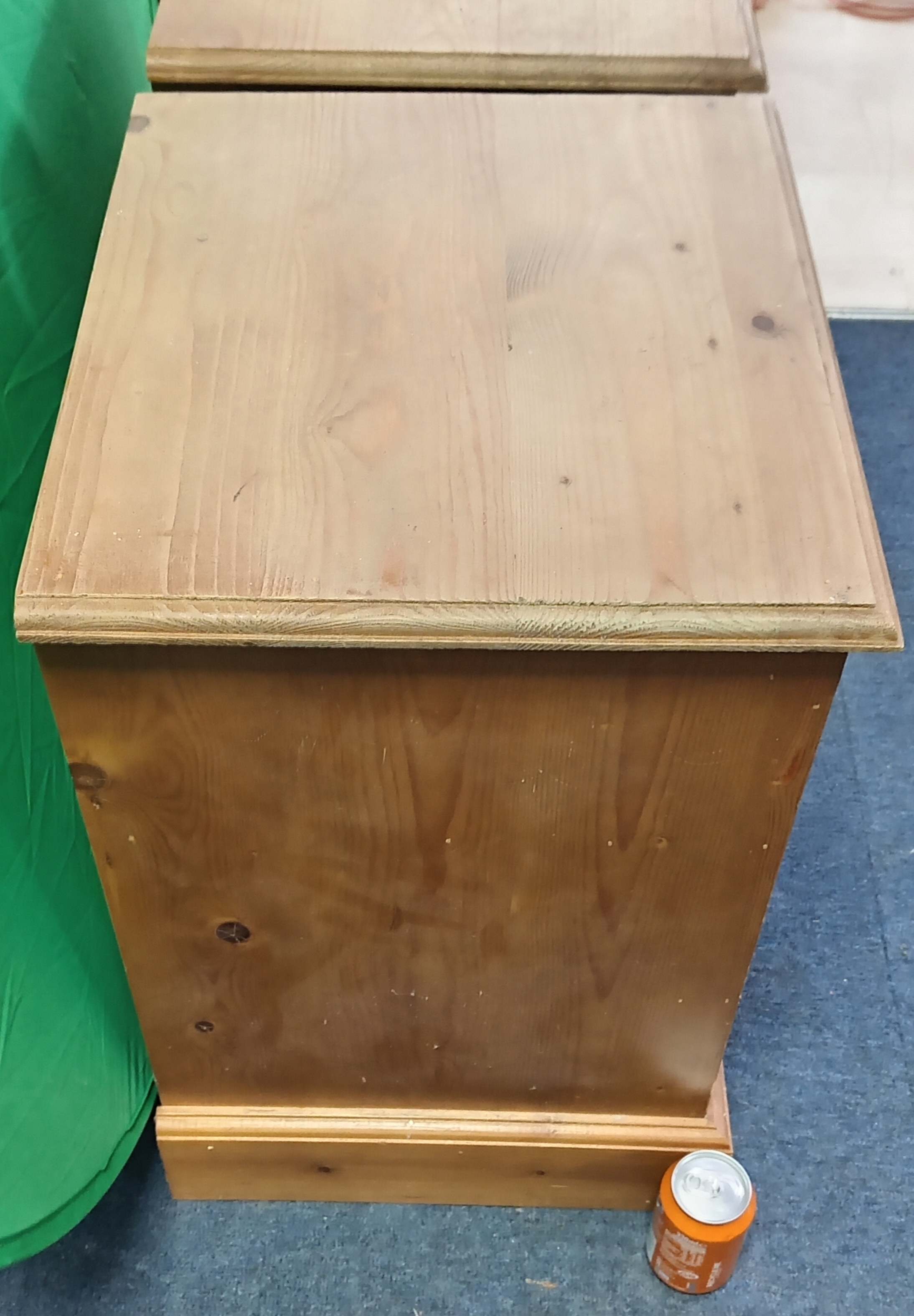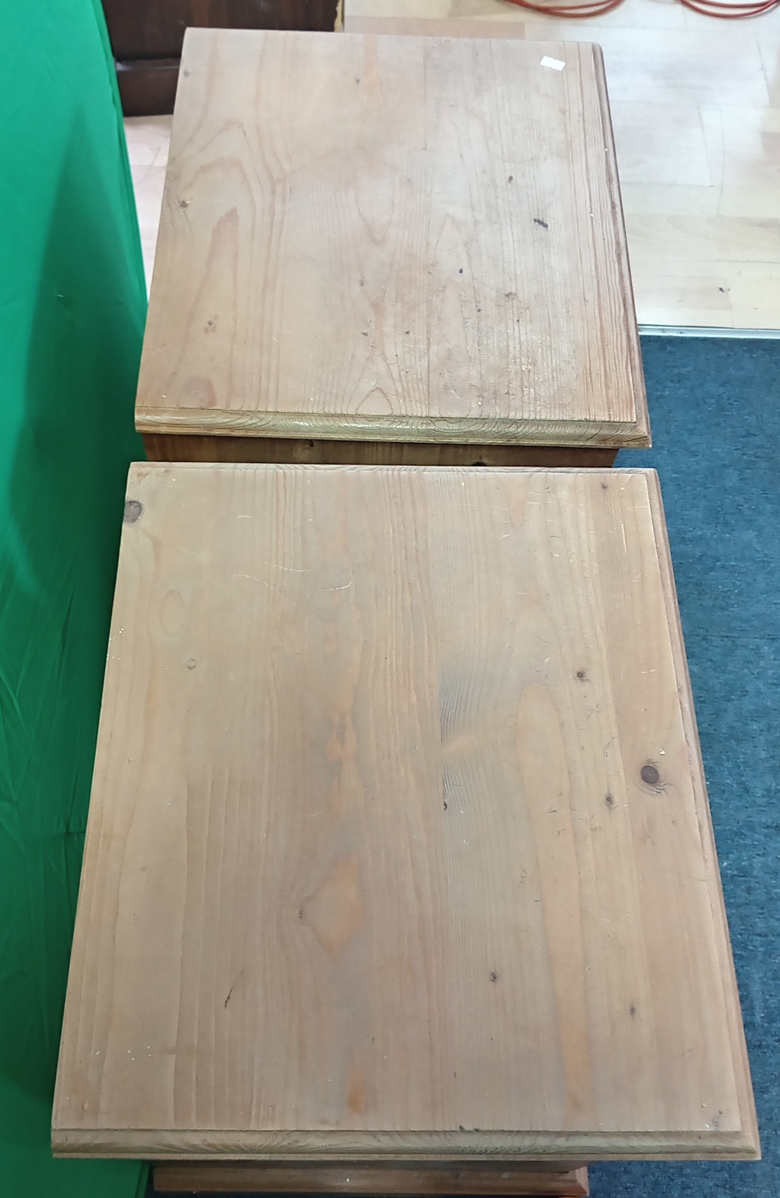 A pair of vintage pine bedside tables. 61cm x 49cm x 41cm.