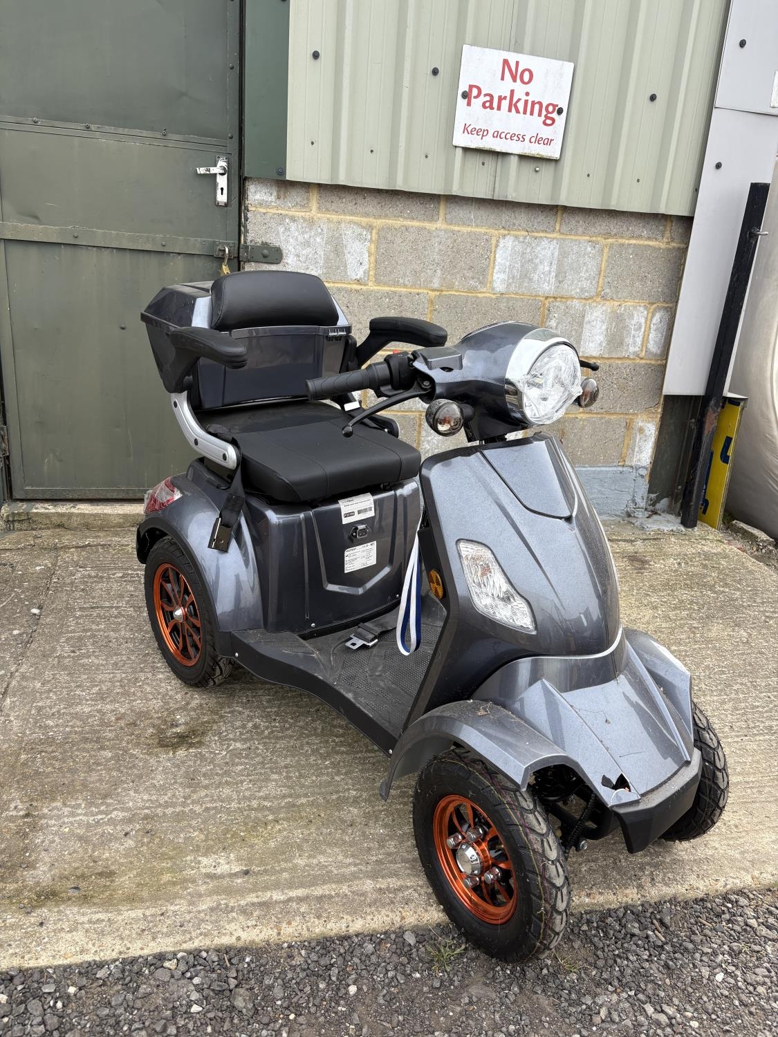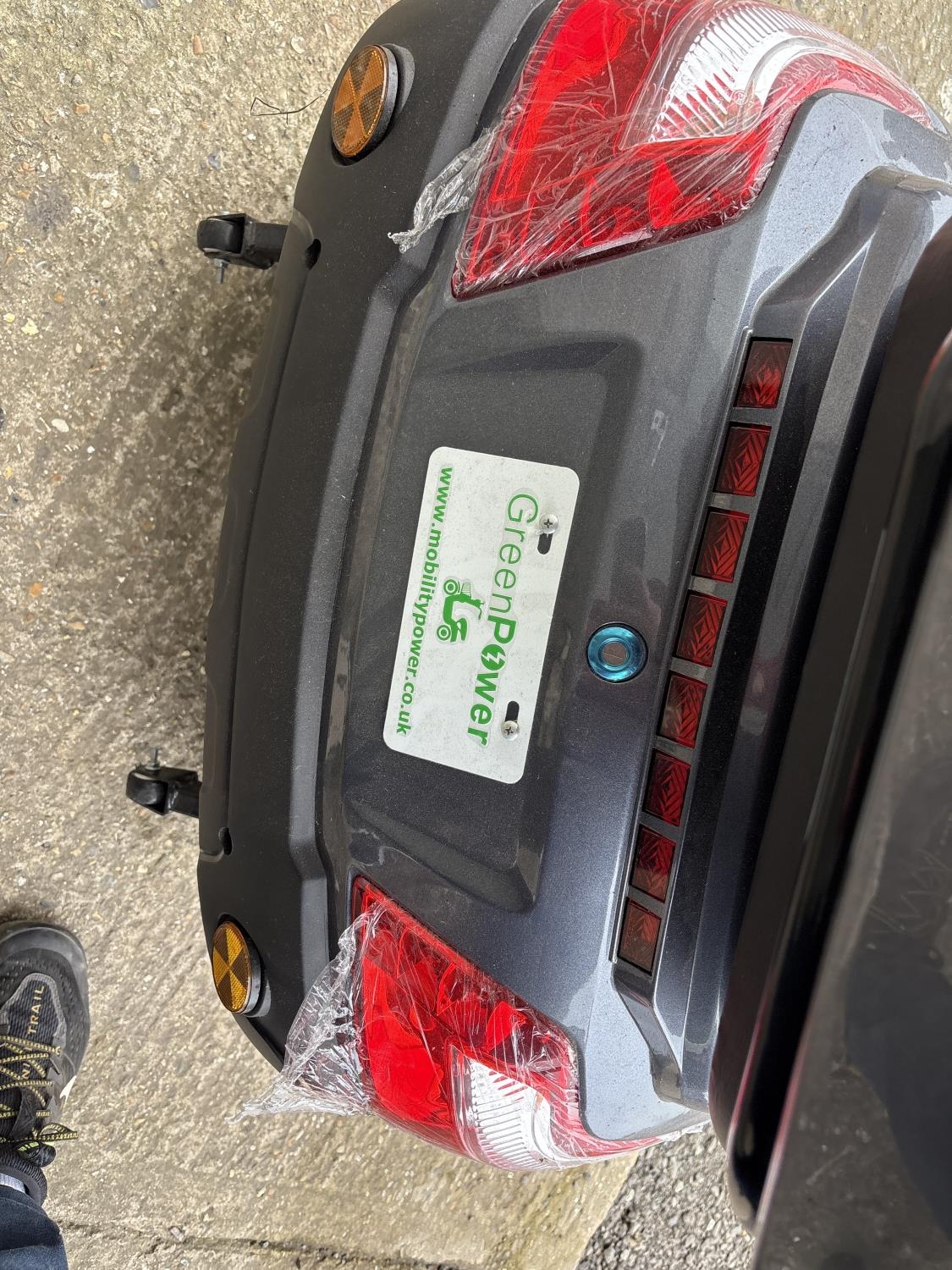 A GREEN POWER mobility scooter in good working order with key and charger in good working order (see damage to bodywork)