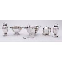 A mixed group of silver including; a silver dressing table set by Davis, Moss & Co, Birmingham 1928, a pair of Sheffield pepperettes, a capstan inkwell, a Dutch silver photograph frame with London import marks 1889, stamped .930, a belt buckle, napkin ring, thimble and four spoons, 149gms., (4.8ozs.), gross
