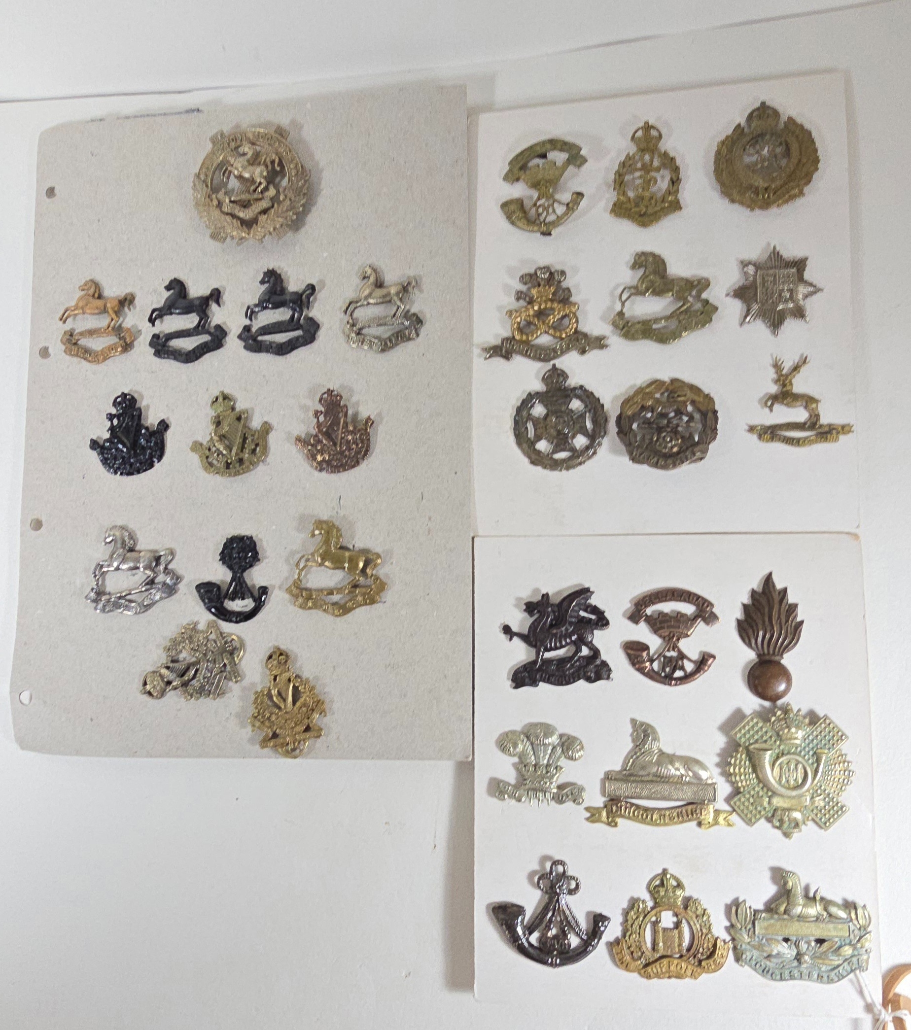 Thirty-one mostly restrike cap badges, including a set of King's Liverpool Regt. Territorial Bns., other Territorial Infantry Bns. etc, and three officer's bronze. GC, ex manufacturer's stock.