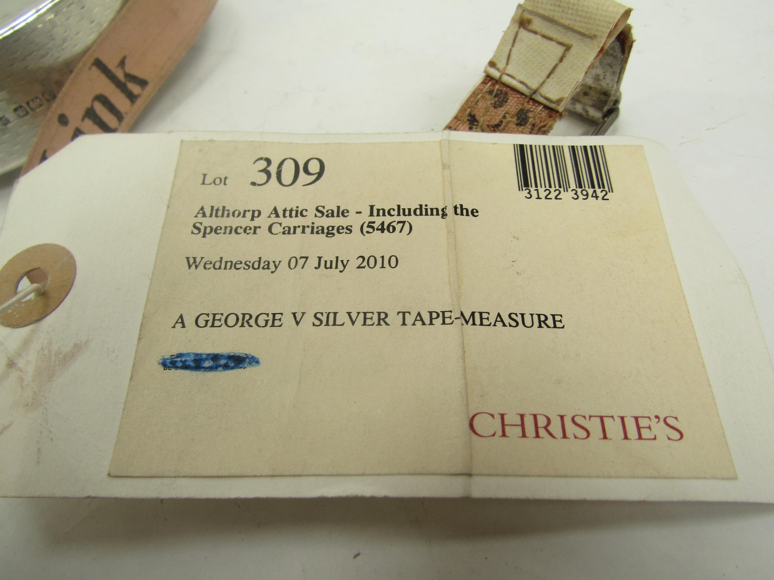 A George V James Chesterman and Co silver tape measure, Sheffield 1910 with Christie's label Althorp Attic Sale
