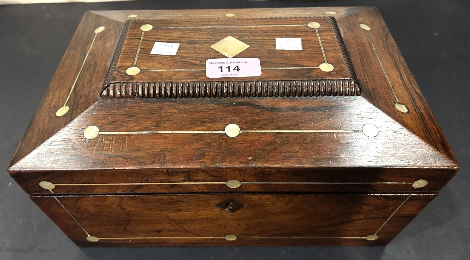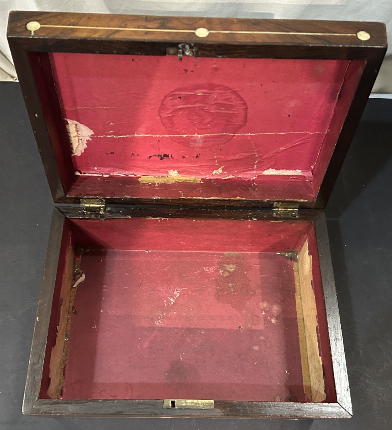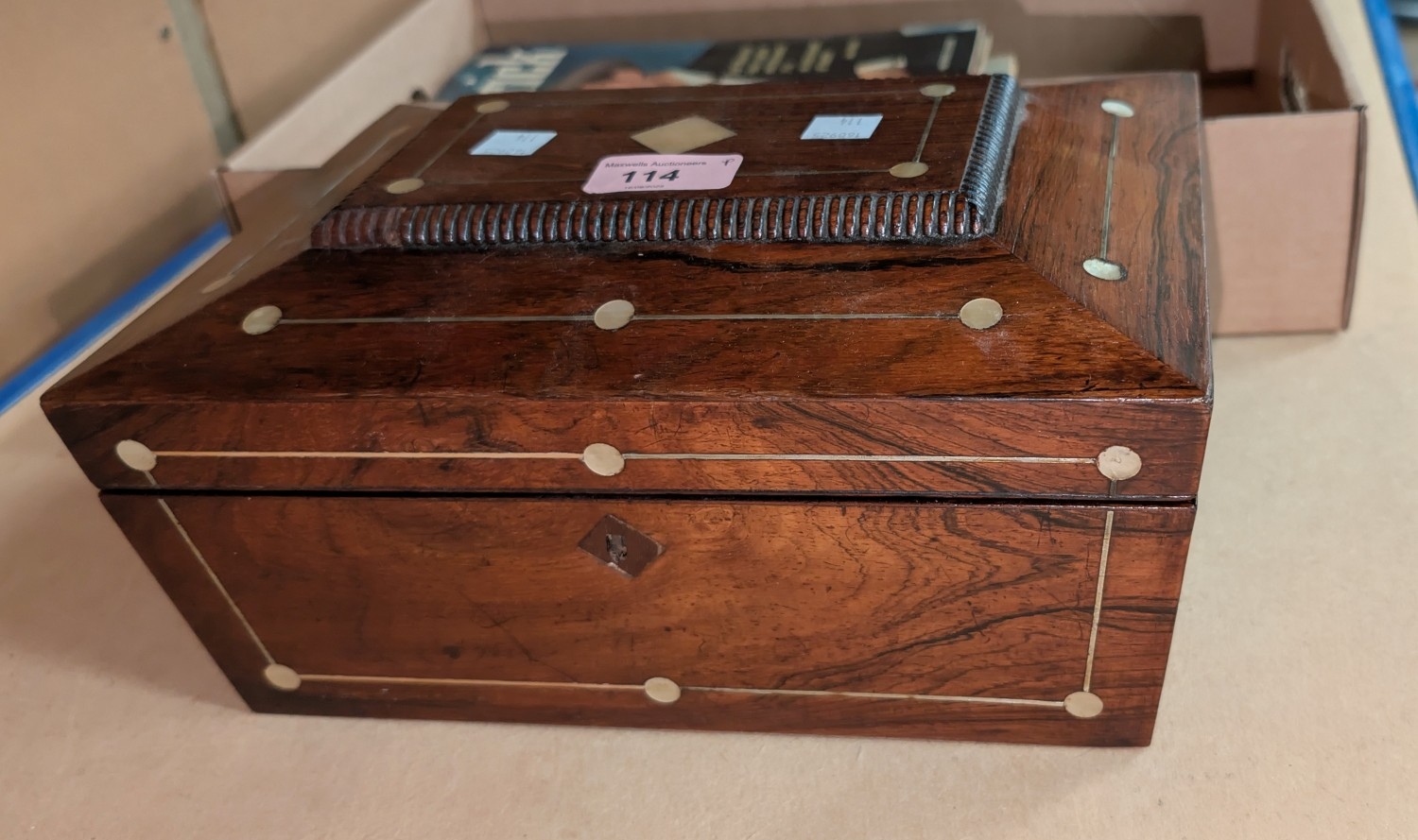 Victorian rosewood Sewing Box with mother of pearl decoration.