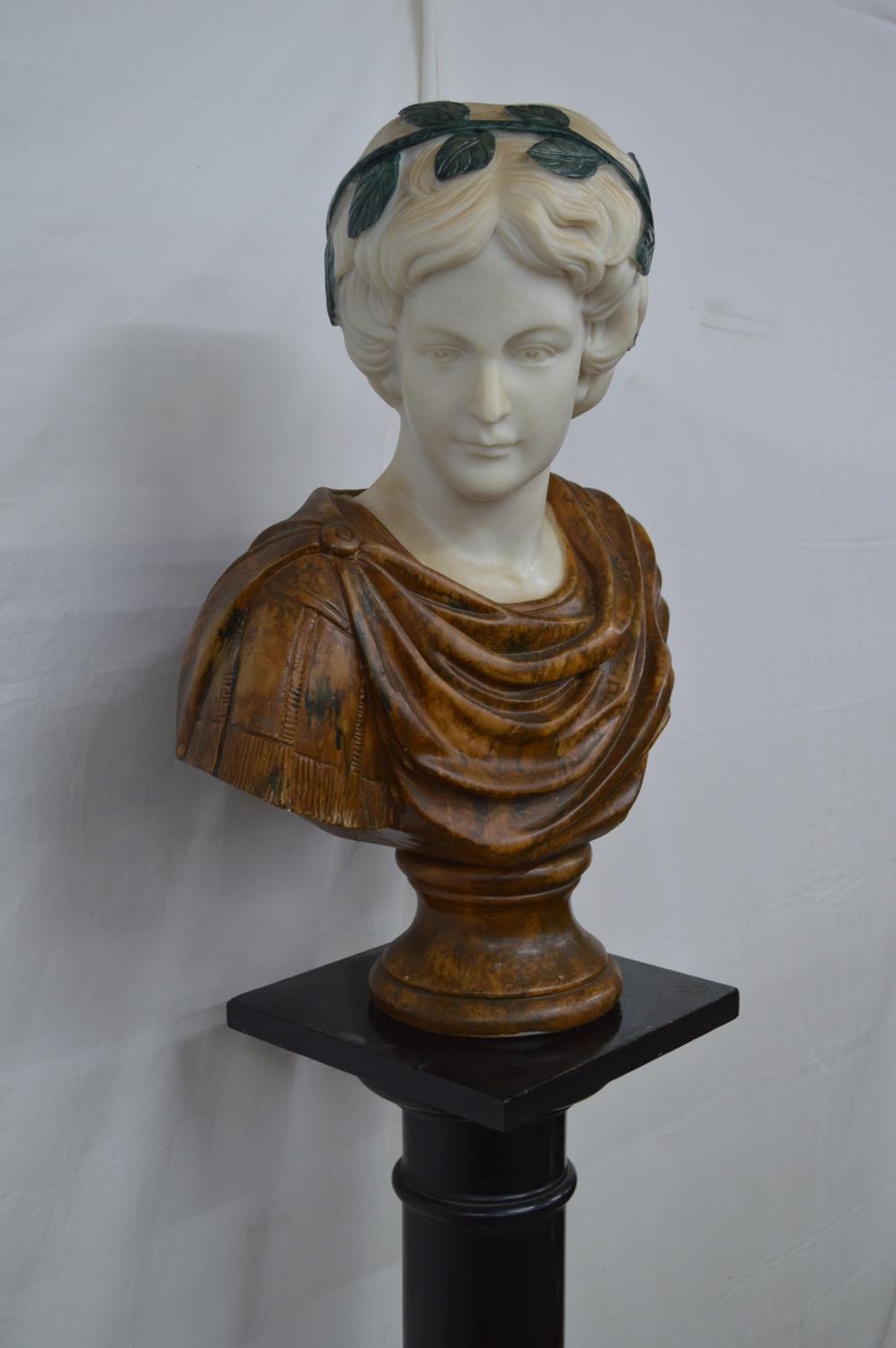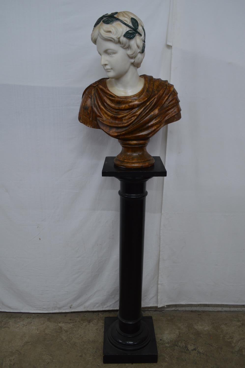 Late 20th century resin bust of a young Roman lady - 24.5" tall together with a painted wooden column stand - 42.25" tall