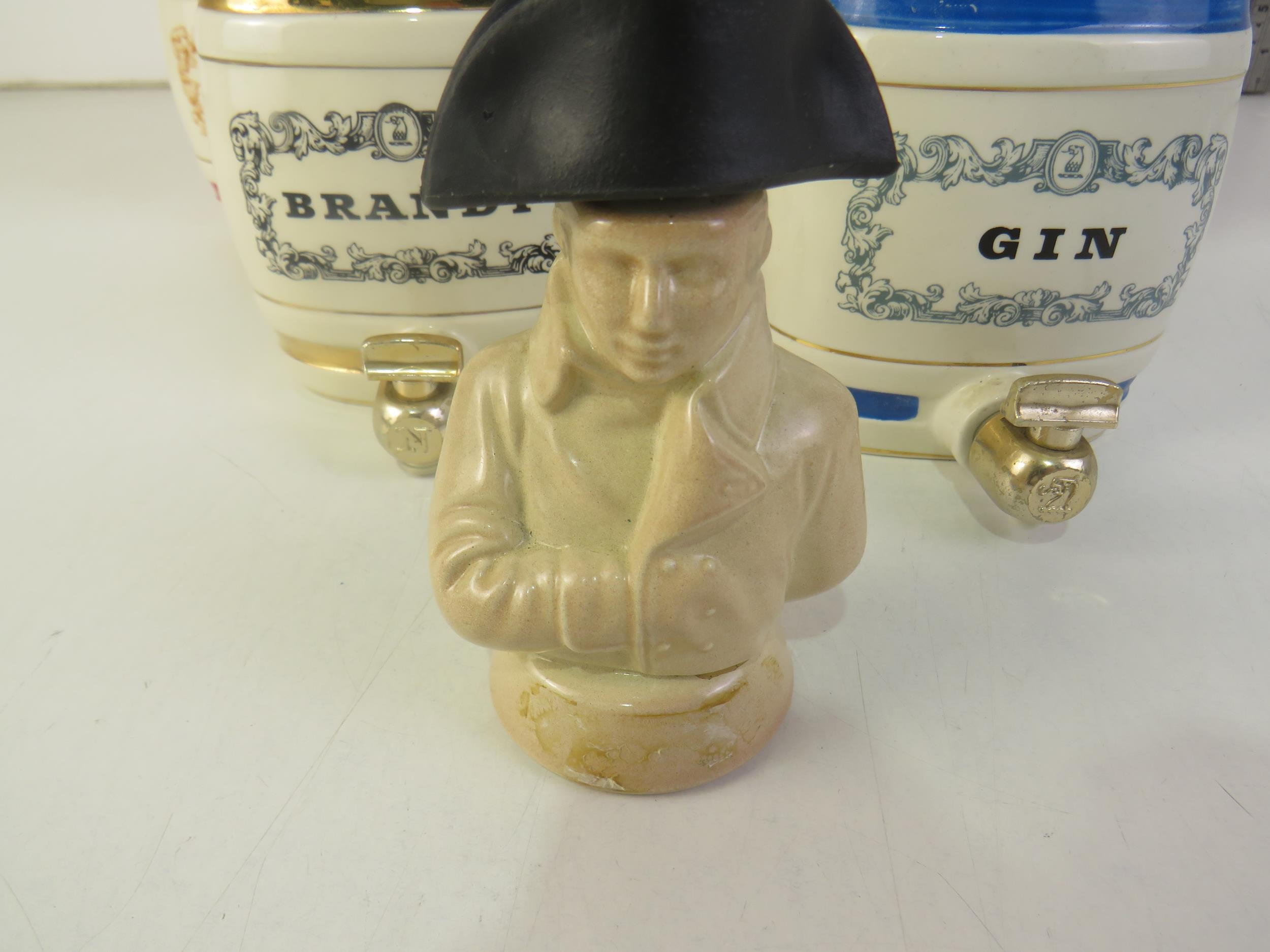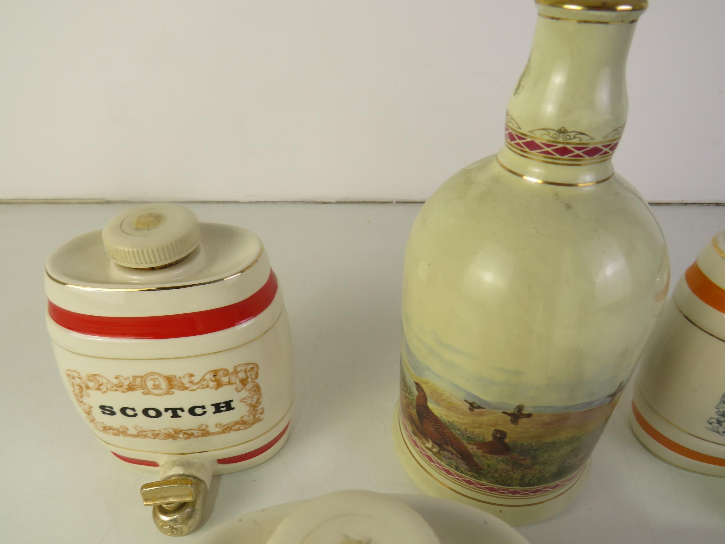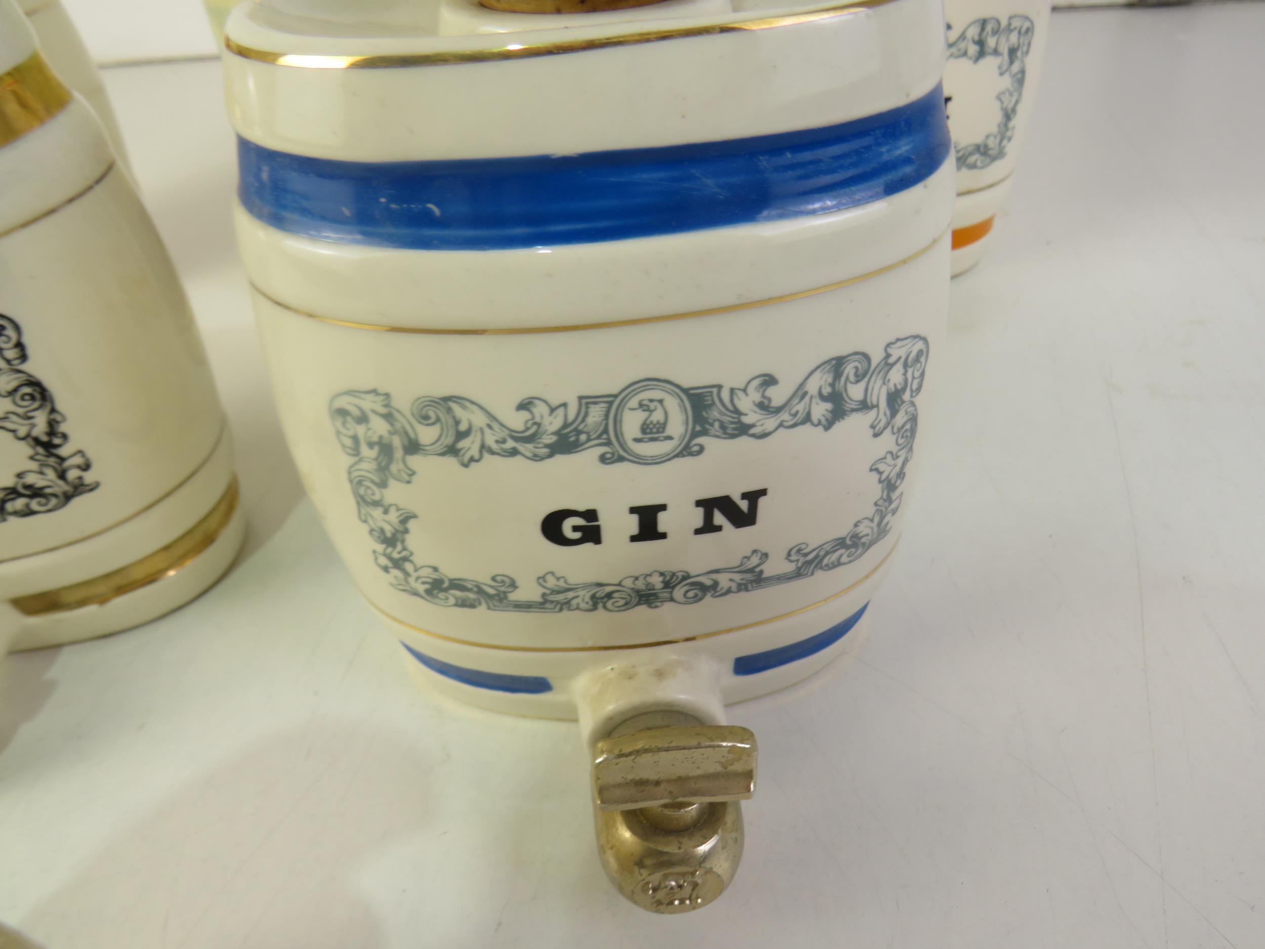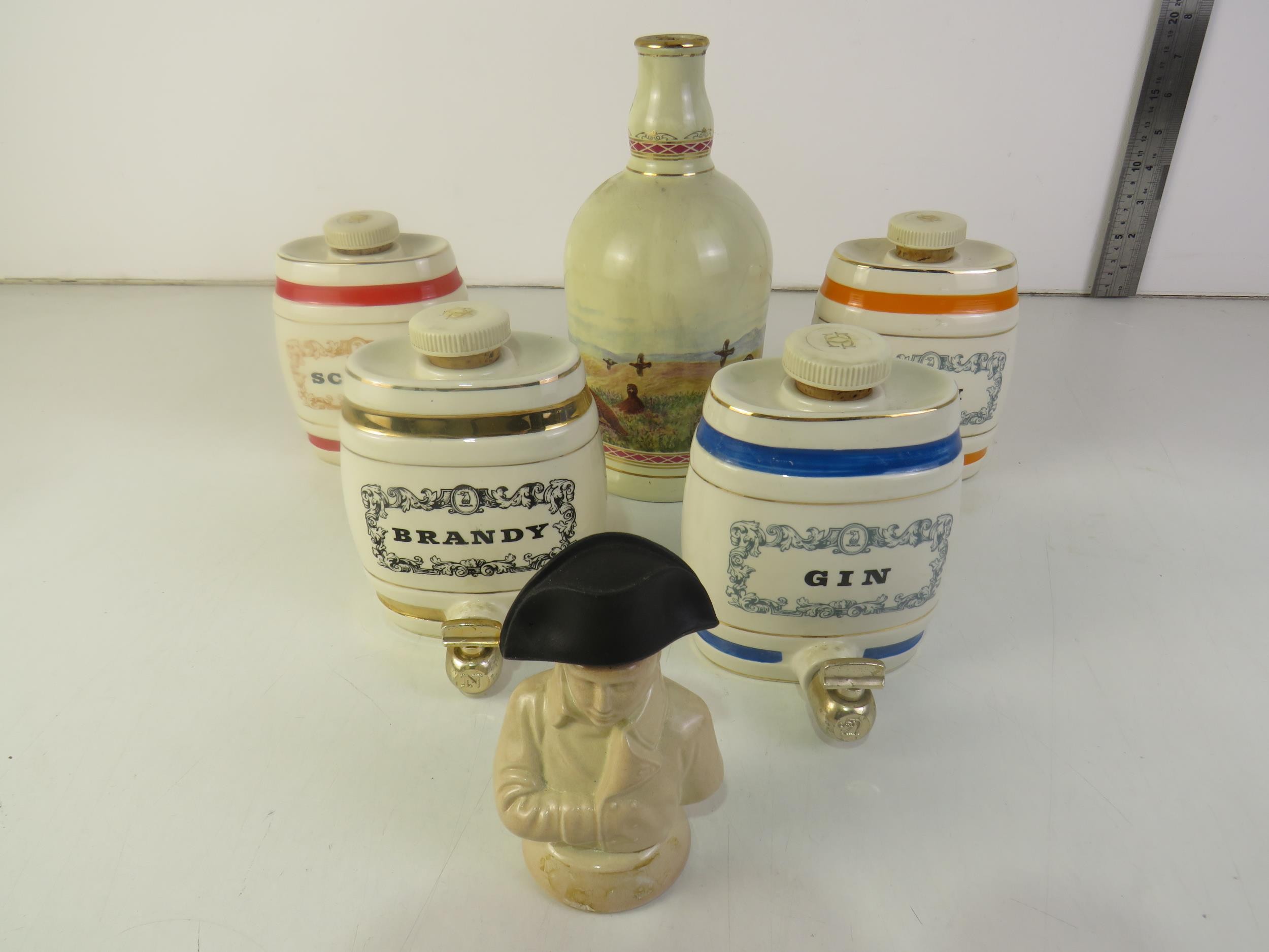 Jug and decanters including Gin, Port, and Sherry.