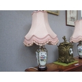 A pair of modern Oriental vase form table lamps with frilled...