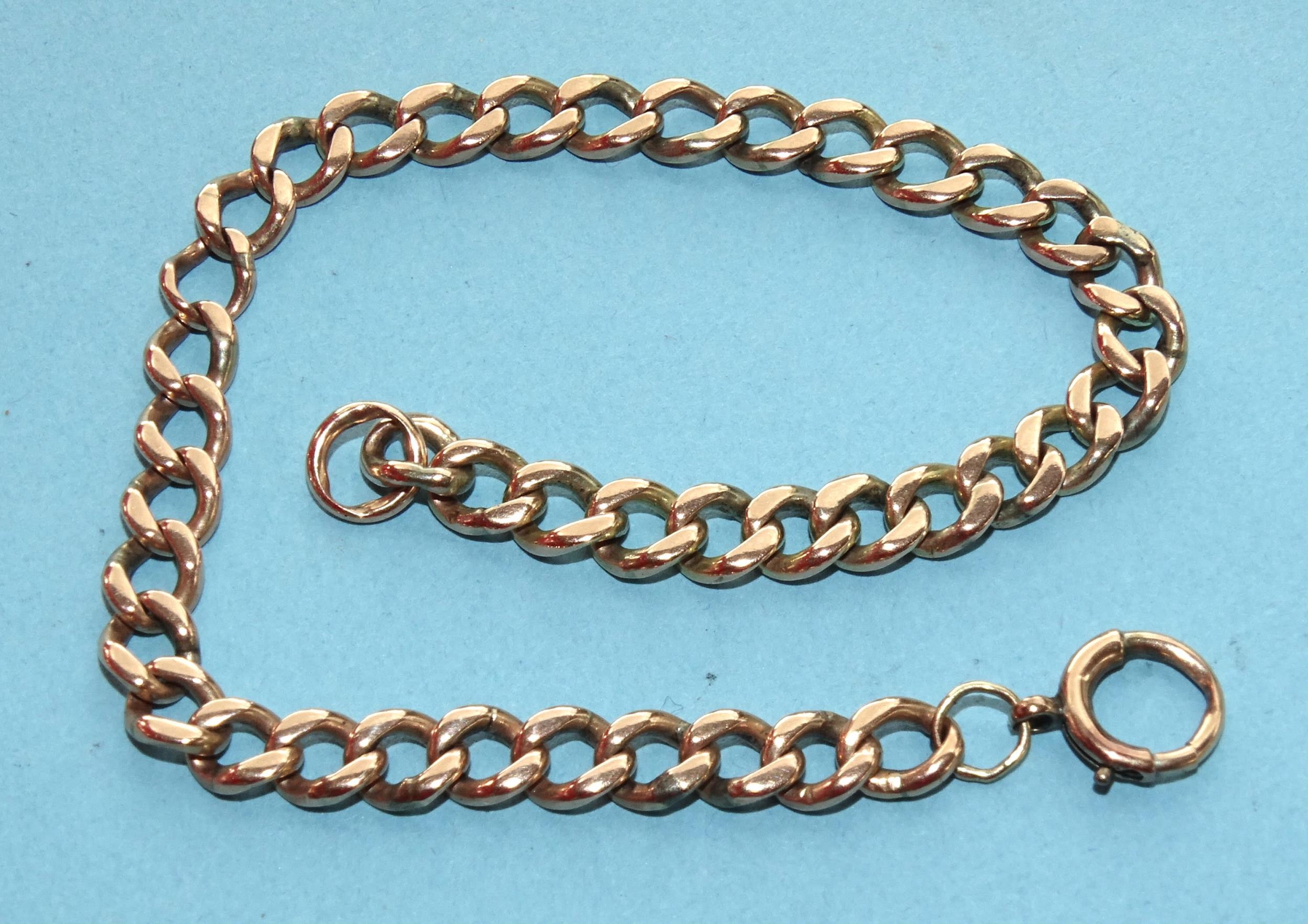 A rose gold curb-link bracelet, tests as approximately 9ct gold, 19cm, 9g.