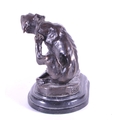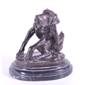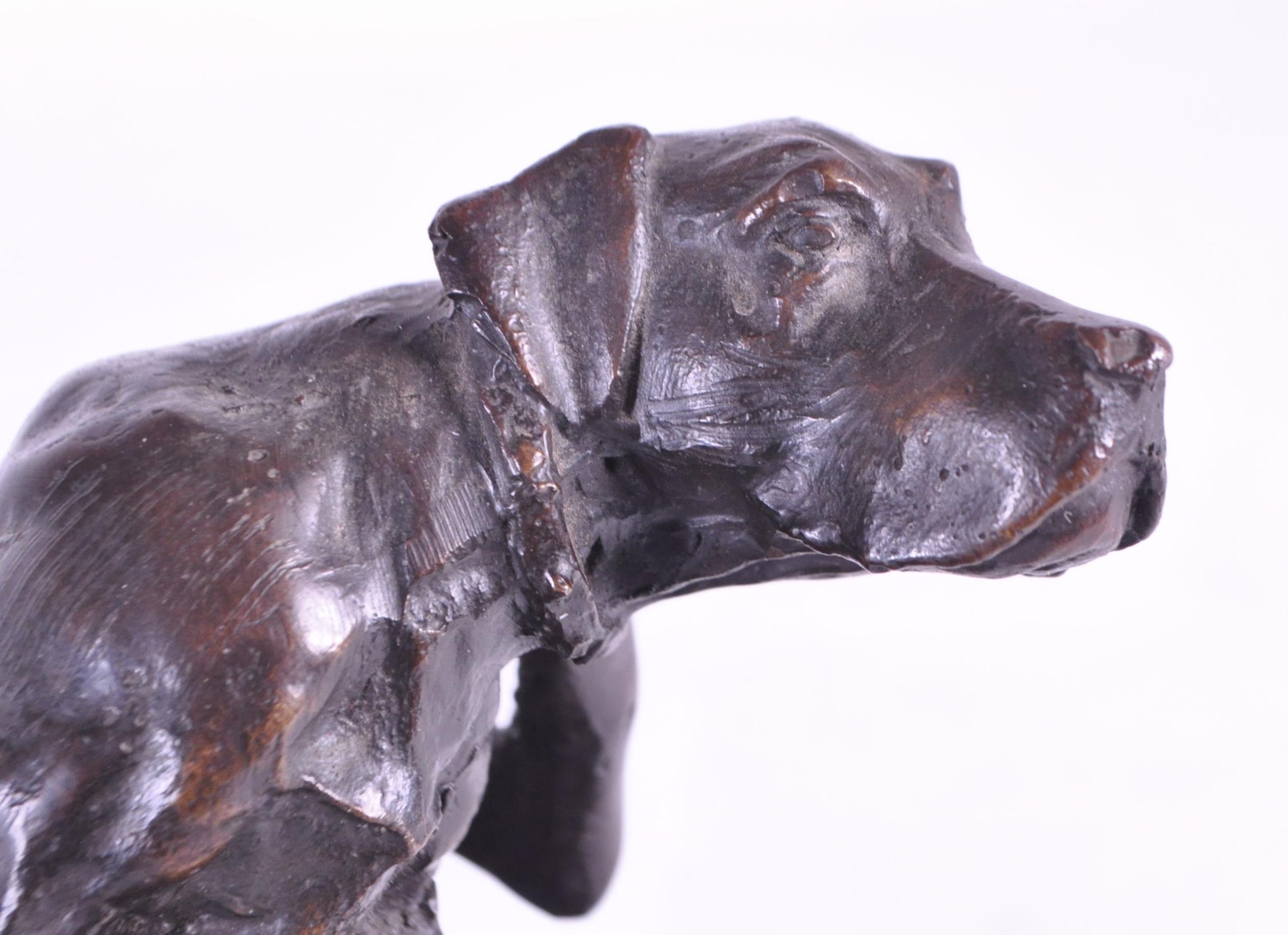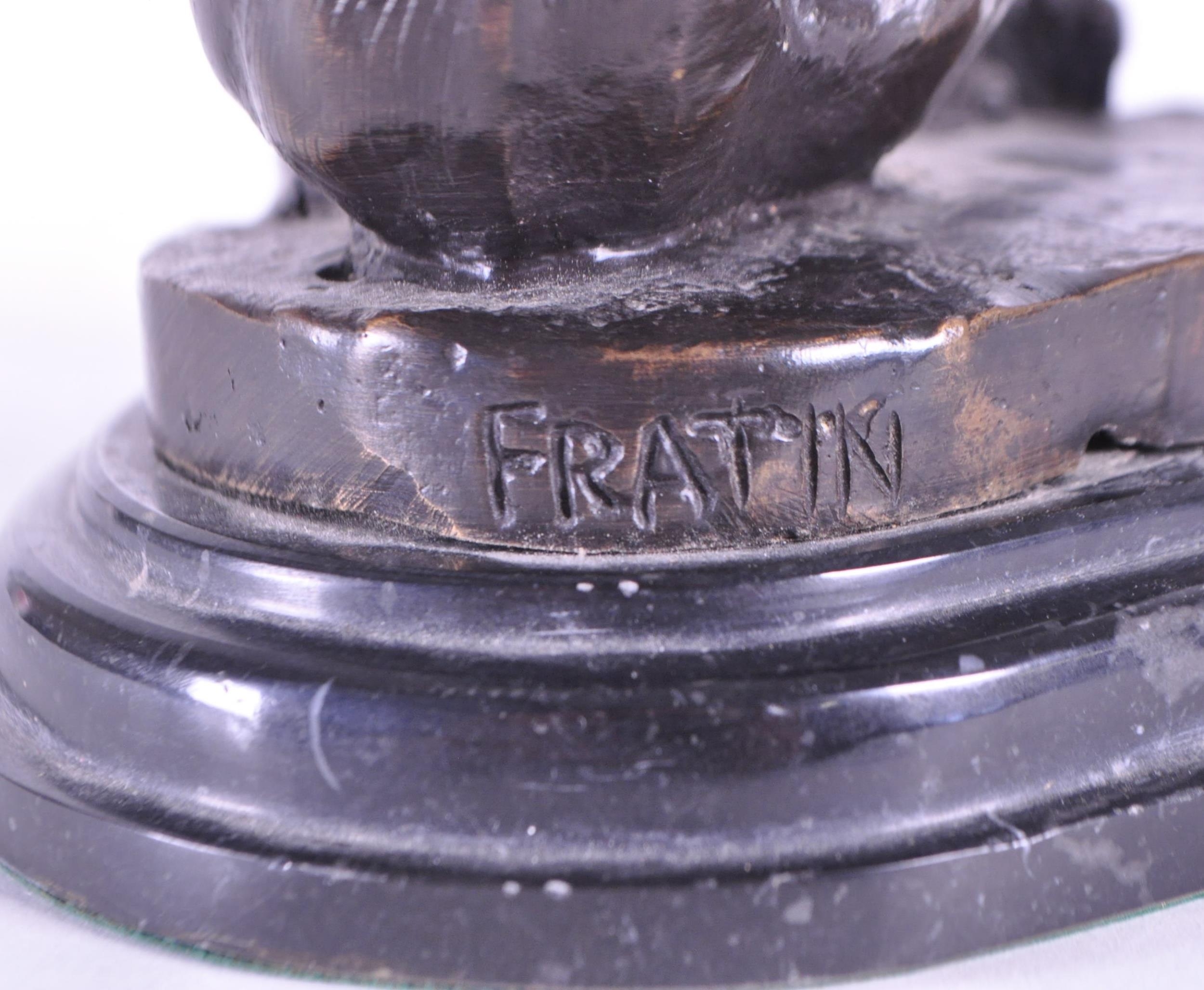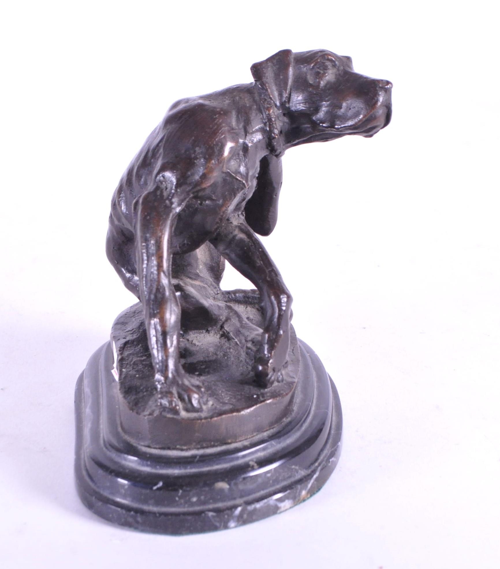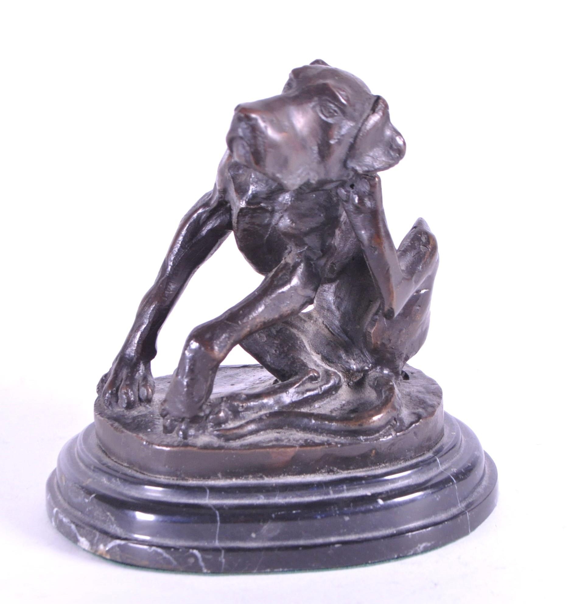 After Christopher Fratin - A 20th century cast bronze hound figure. The dog sat scratching upon a naturalistic base, over stepped marble plinth. Marked Fratin.