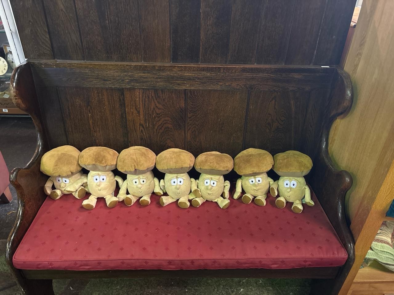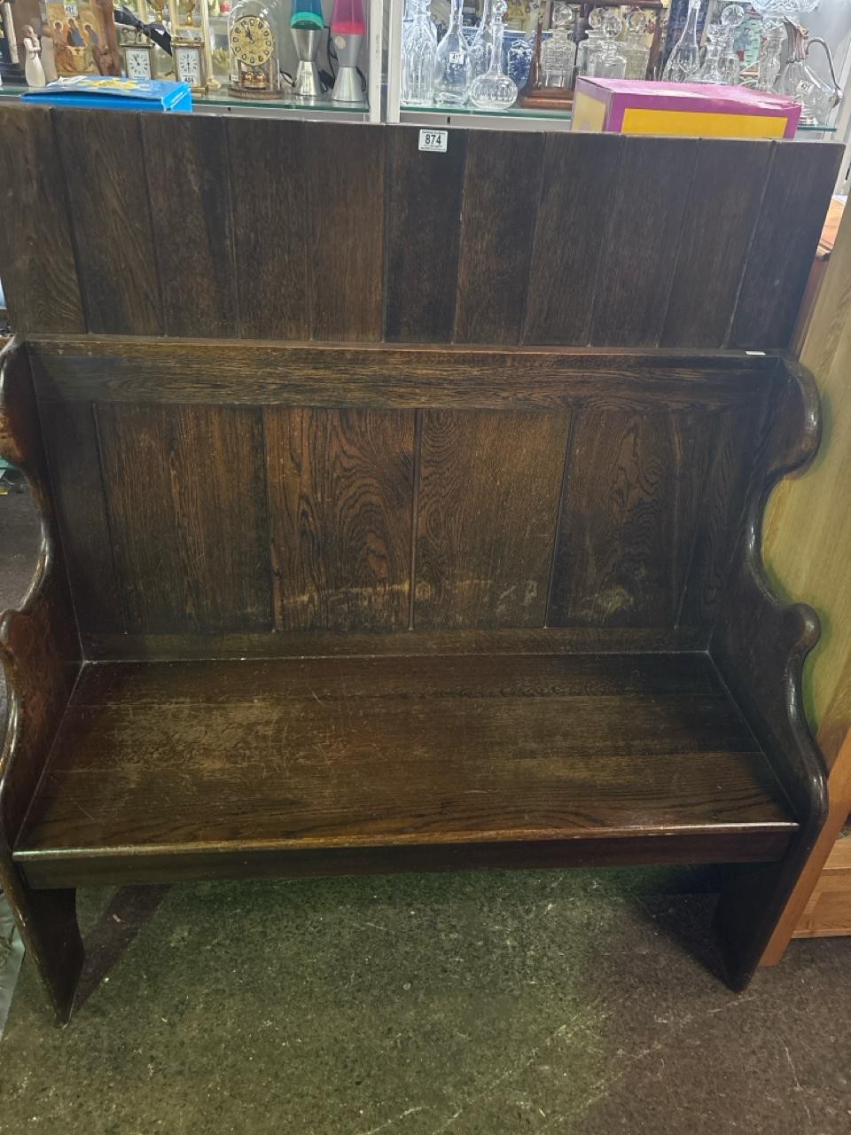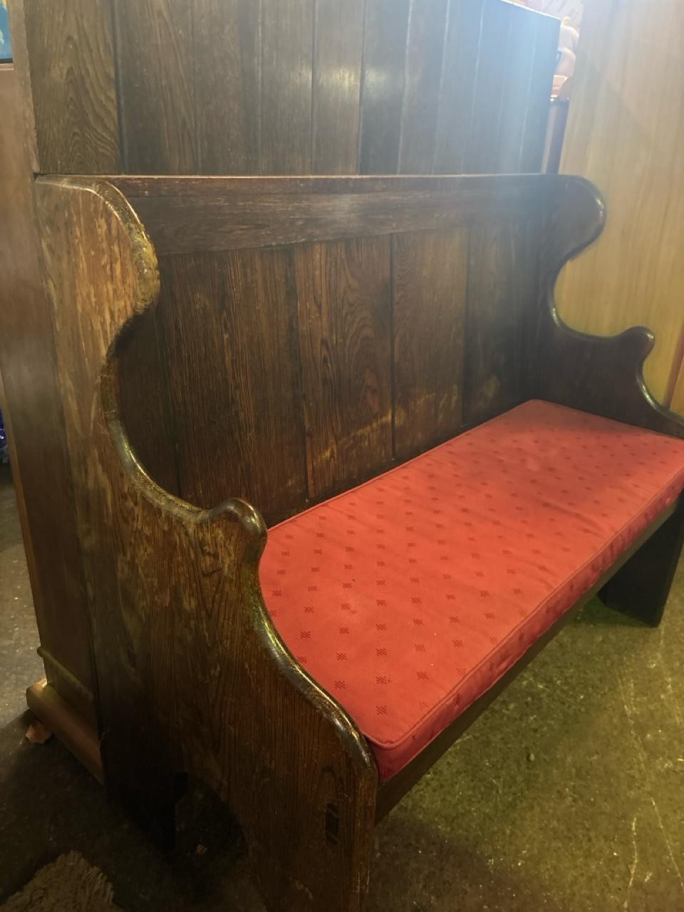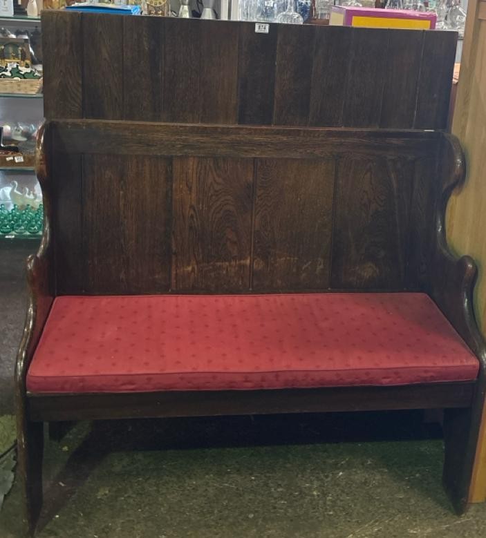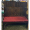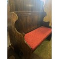 Hardwood rustic settle, with padded cushion (approx H130 x W120 x D55cm)