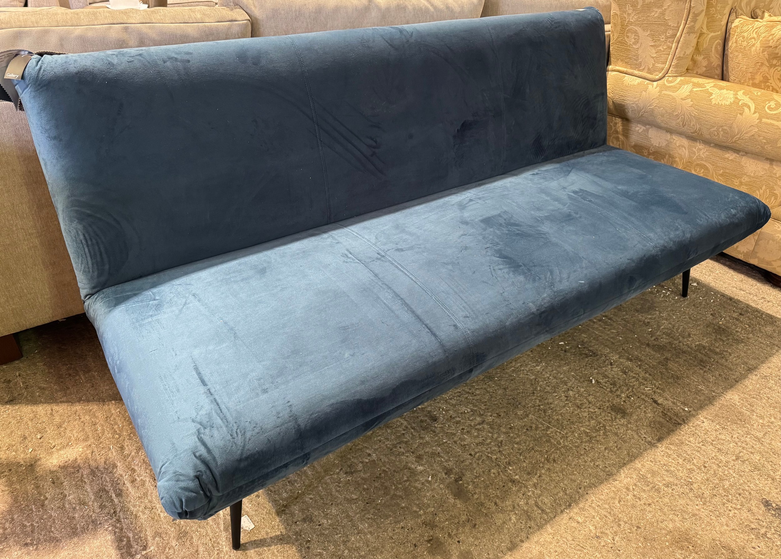 A Dunton cyan velvet 'clik clak' sofa bed